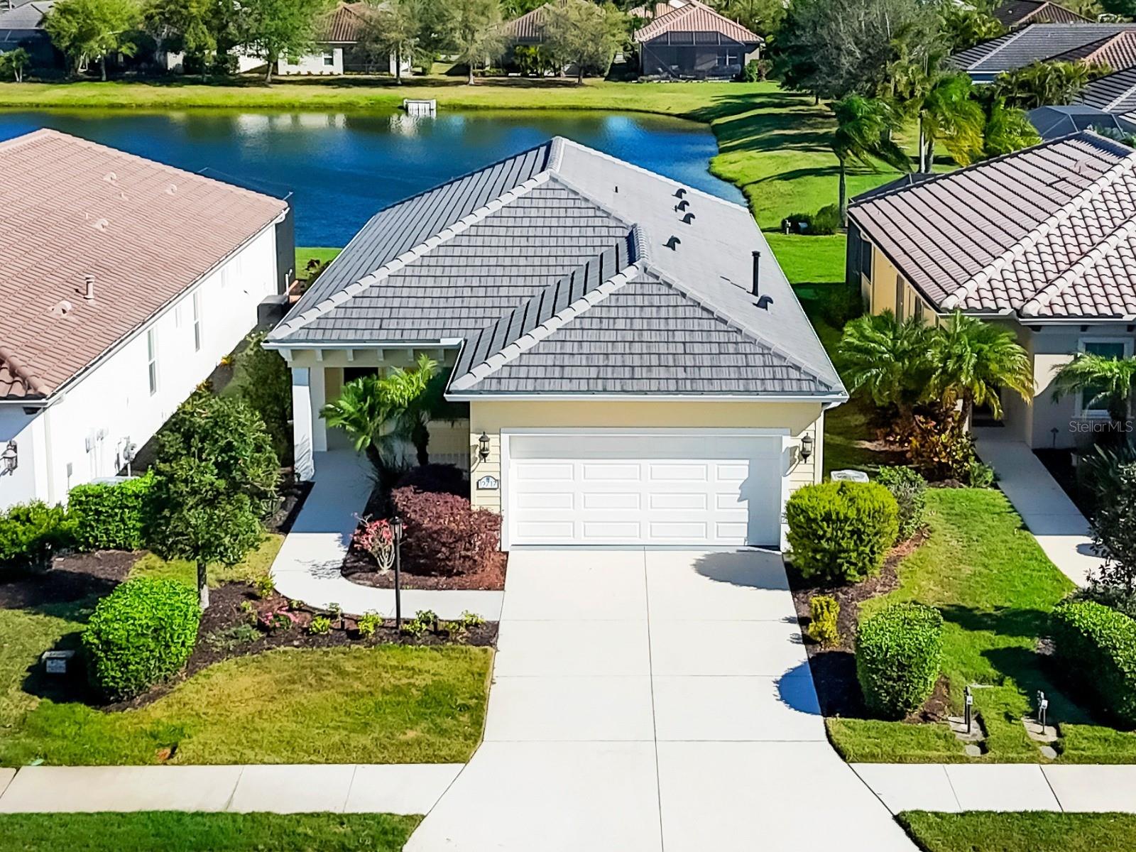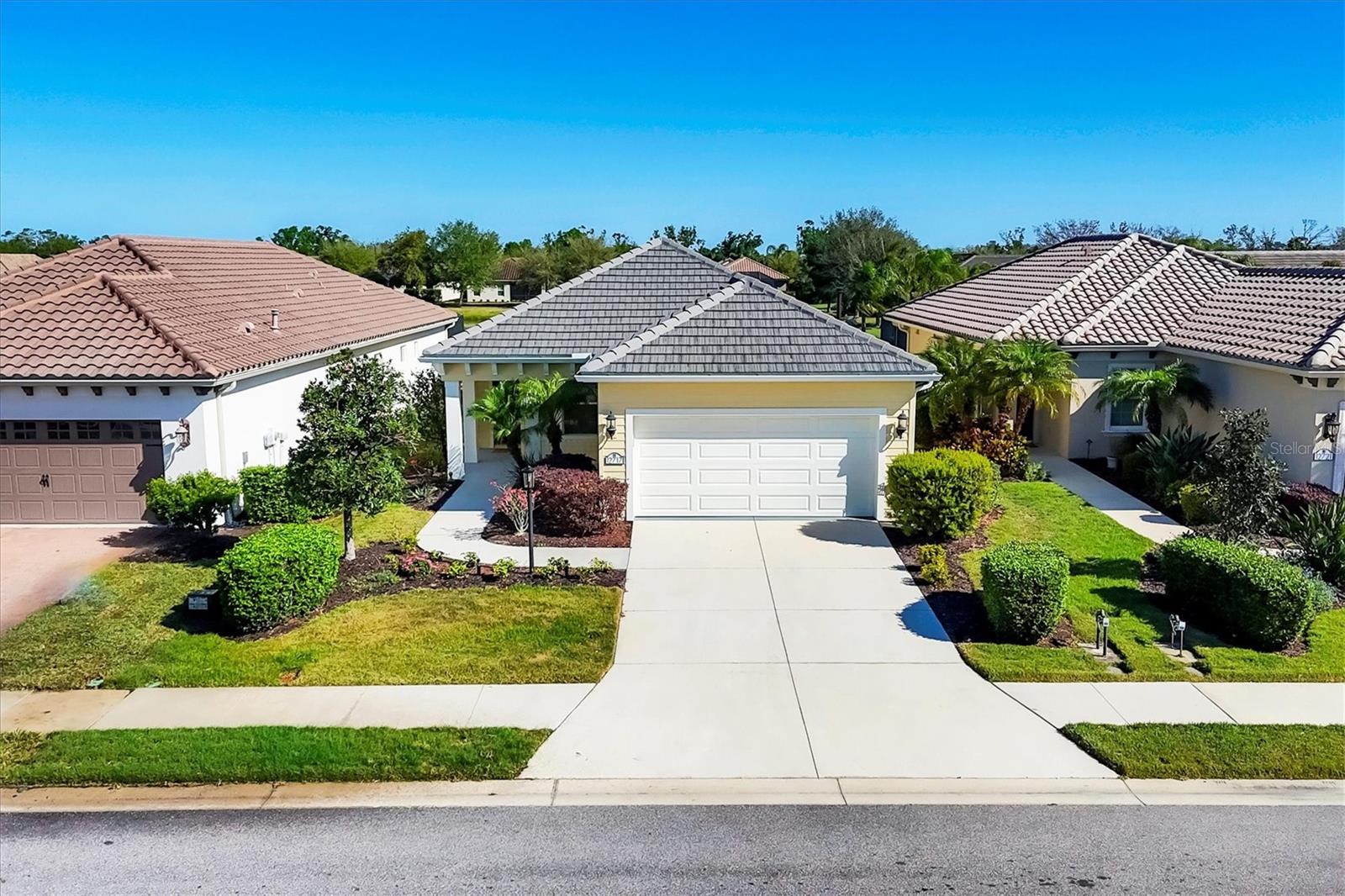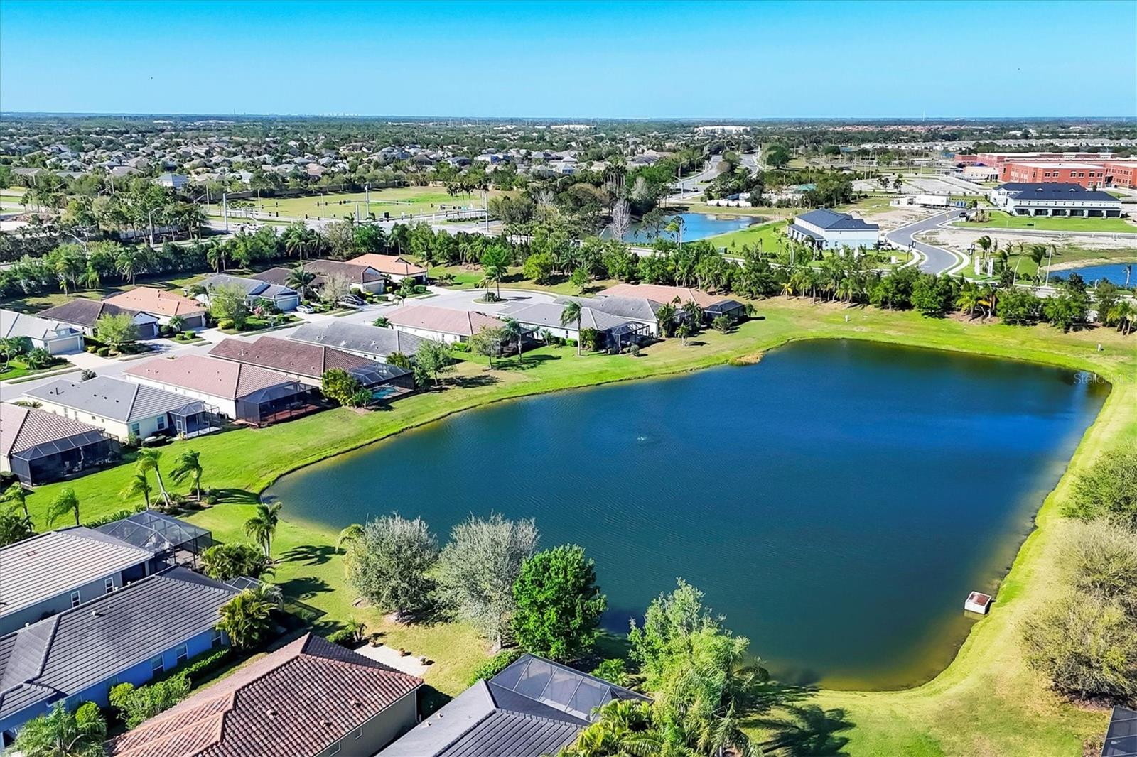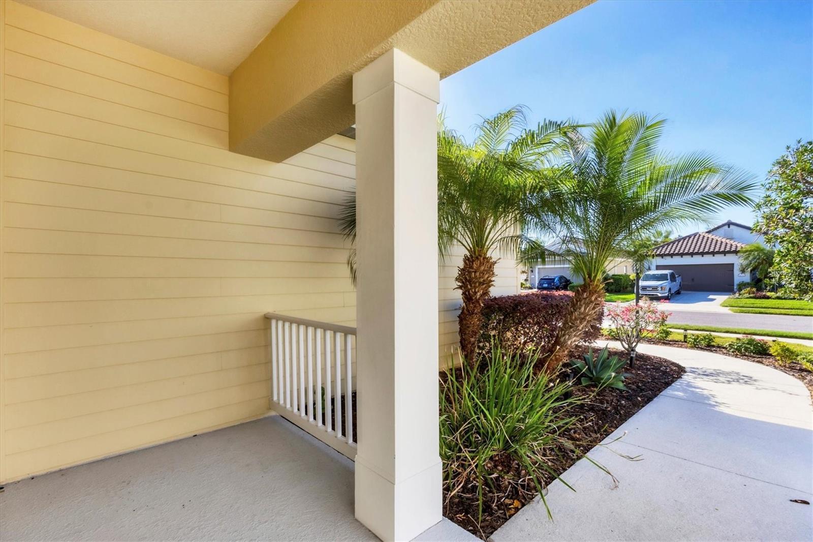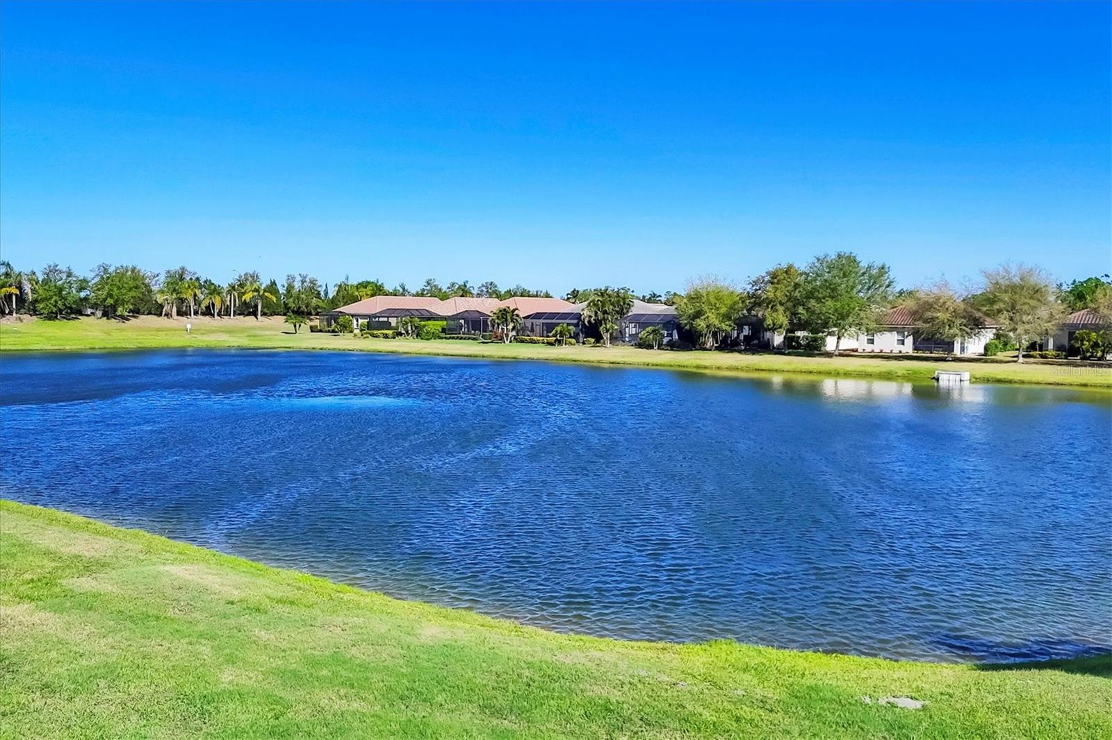 One or more photo(s) has been virtually staged. Set on a tranquil water lot in the premier Indigo community of Lakewood Ranch, 12717 Deep Blue Place is a home that impresses at every turn. With no CDD fees, high-end finishes throughout, and a layout designed for modern living, this residence offers a rare opportunity to enjoy effortless elegance in one of the area’s most coveted locations. This beautifully maintained 3-bedroom, 2-bathroom residence with a versatile den offers 1,509 square feet of refined living space on a premium water lot—delivering peaceful views and an exceptional lifestyle with no CDD fees, a rare and valuable benefit in this neighborhood. From the moment you arrive, you’ll appreciate the home’s inviting front porch, manicured landscaping, and welcoming curb appeal. Inside, the neutral color palette and thoughtful design create a bright, open atmosphere that feels instantly like home. Designed for flexibility and everyday comfort, the layout includes a spacious den behind French doors that can easily serve as a home office, cozy sitting area, or even a formal dining space. The kitchen is both functional and stylish, offering warm wood cabinetry, granite countertops with bar-height seating, stainless steel GE appliances including a gas range, a spacious pantry, and room for a breakfast table—perfect for everything from morning coffee to entertaining guests. The open-concept living and dining areas flow effortlessly from the kitchen, creating a natural space to gather and relax. Just beyond, an extended covered lanai invites you to unwind and take in the tranquil water views. With plenty of room for both dining and lounging, this outdoor living area is a true extension of the home. The roll-down hurricane shutters provide both convenience and peace of mind, and the charming front porch offers an additional spot to enjoy Florida’s sunshine and fresh air. The functional layout offers privacy and comfort for all. The primary suite is spacious and serene, featuring a large walk-in closet and an en-suite bath with double vanity and a walk-in shower. The two additional bedrooms and full bath are tucked away on the opposite side of the home, making them ideal for guests or family. Throughout the home, high-quality finishes add both style and substance. The bedrooms feature new Pergo luxury vinyl flooring, while the windows are dressed in custom plantation shutters from Shutter Shop, adding a touch of elegance and functionality. Additional upgrades include a whole-house generator, whole-house water softener, new gutters around the entire home—an upgrade many homes in Indigo lack—energy-efficient windows, enhanced irrigation, and updated designer lighting and ceiling fans. Indigo offers a vibrant, resort-style lifestyle with amenities such as a heated pool and spa, state-of-the-art fitness center, pickleball and bocce courts, and a full-time lifestyle director who coordinates community events and activities. The quarterly HOA fee includes lawn maintenance and irrigation, allowing for low-maintenance living. Set in the heart of Lakewood Ranch, this home provides convenient access to top-rated schools, scenic parks, miles of trails, shopping, dining, and world-renowned Gulf Coast beaches. With its desirable water view, flexible layout, numerous upgrades, and rare absence of CDD fees, 12717 Deep Blue Place is more than a house—it’s an opportunity to enjoy the very best of Florida living.
