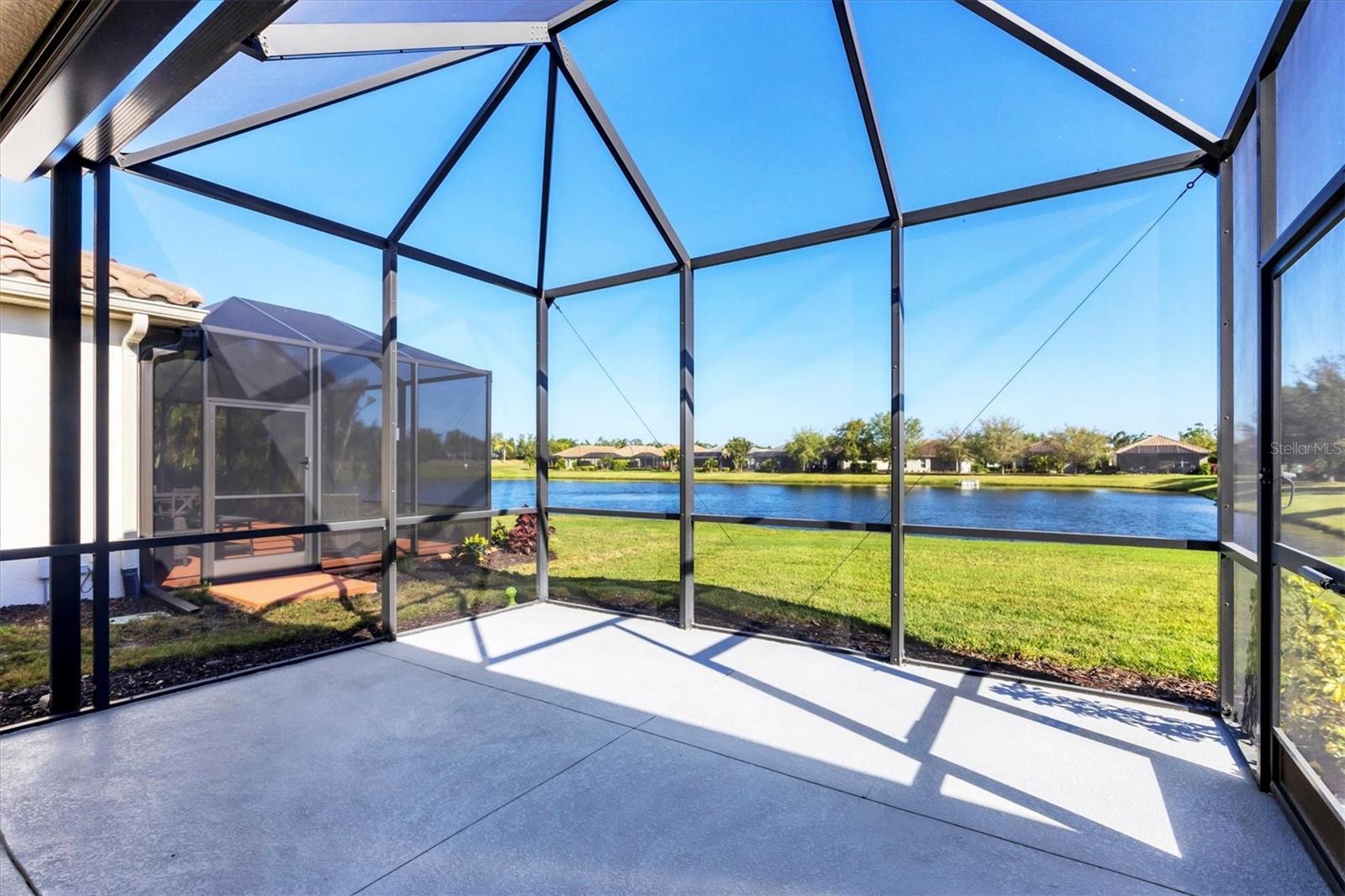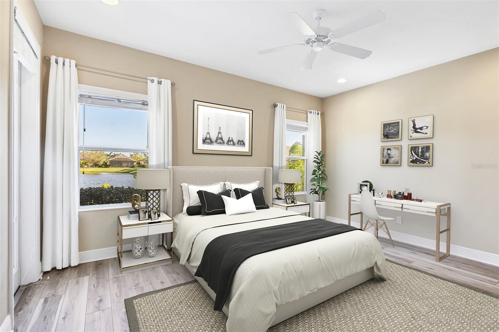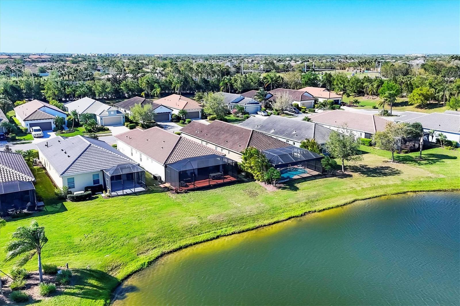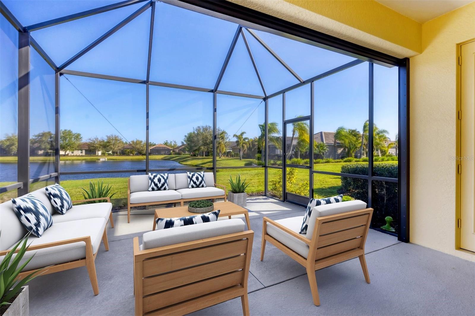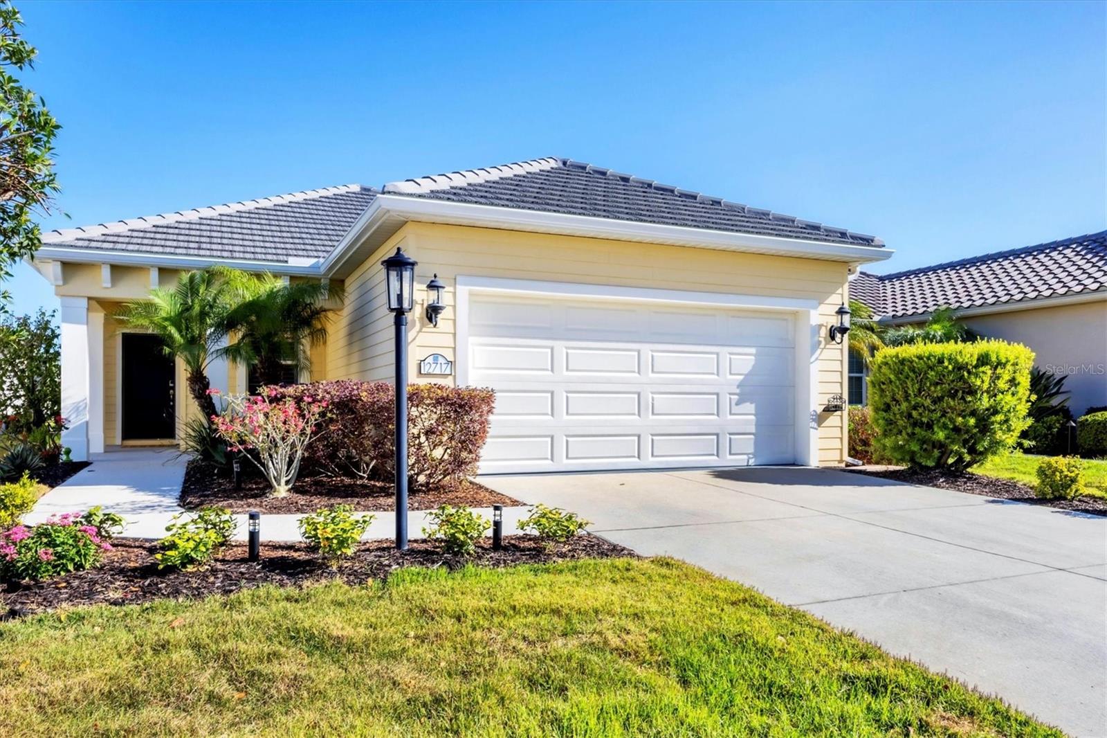 One or more photo(s) has been virtually staged. Set on a tranquil water lot in the premier Indigo community of Lakewood Ranch, 12717 Deep Blue Place is a home that impresses at every turn. With no CDD fees, high-end finishes throughout, and a layout designed for modern living, this residence offers a rare opportunity to enjoy effortless elegance in one of the area’s most coveted locations. This beautifully maintained 3-bedroom, 2-bathroom residence with a versatile den offers 1,509 square feet of refined living space on a premium water lot—delivering peaceful views and an exceptional lifestyle with no CDD fees, a rare and valuable benefit in this neighborhood. From the moment you arrive, you’ll appreciate the home’s inviting front porch, manicured landscaping, and welcoming curb appeal. Inside, the neutral color palette and thoughtful design create a bright, open atmosphere that feels instantly like home. Designed for flexibility and everyday comfort, the layout includes a spacious den behind French doors that can easily serve as a home office, cozy sitting area, or even a formal dining space. The kitchen is both functional and stylish, offering warm wood cabinetry, granite countertops with bar-height seating, stainless steel GE appliances including a gas range, a spacious pantry, and room for a breakfast table—perfect for everything from morning coffee to entertaining guests. The open-concept living and dining areas flow effortlessly from the kitchen, creating a natural space to gather and relax. Just beyond, an extended covered lanai invites you to unwind and take in the tranquil water views. With plenty of room for both dining and lounging, this outdoor living area is a true extension of the home. The roll-down hurricane shutters provide both convenience and peace of mind, and the charming front porch offers an additional spot to enjoy Florida’s sunshine and fresh air. The functional layout offers privacy and comfort for all. The primary suite is spacious and serene, featuring a large walk-in closet and an en-suite bath with double vanity and a walk-in shower. The two additional bedrooms and full bath are tucked away on the opposite side of the home, making them ideal for guests or family. Throughout the home, high-quality finishes add both style and substance. The bedrooms feature new Pergo luxury vinyl flooring, while the windows are dressed in custom plantation shutters from Shutter Shop, adding a touch of elegance and functionality. Additional upgrades include a whole-house generator, whole-house water softener, new gutters around the entire home—an upgrade many homes in Indigo lack—energy-efficient windows, enhanced irrigation, and updated designer lighting and ceiling fans. Indigo offers a vibrant, resort-style lifestyle with amenities such as a heated pool and spa, state-of-the-art fitness center, pickleball and bocce courts, and a full-time lifestyle director who coordinates community events and activities. The quarterly HOA fee includes lawn maintenance and irrigation, allowing for low-maintenance living. Set in the heart of Lakewood Ranch, this home provides convenient access to top-rated schools, scenic parks, miles of trails, shopping, dining, and world-renowned Gulf Coast beaches. With its desirable water view, flexible layout, numerous upgrades, and rare absence of CDD fees, 12717 Deep Blue Place is more than a house—it’s an opportunity to enjoy the very best of Florida living.