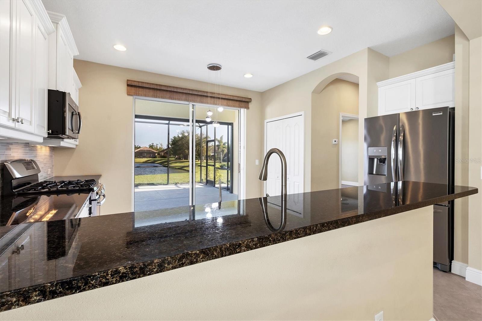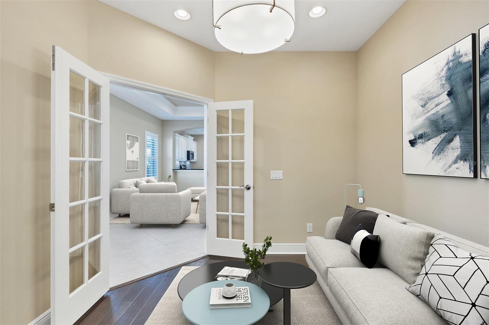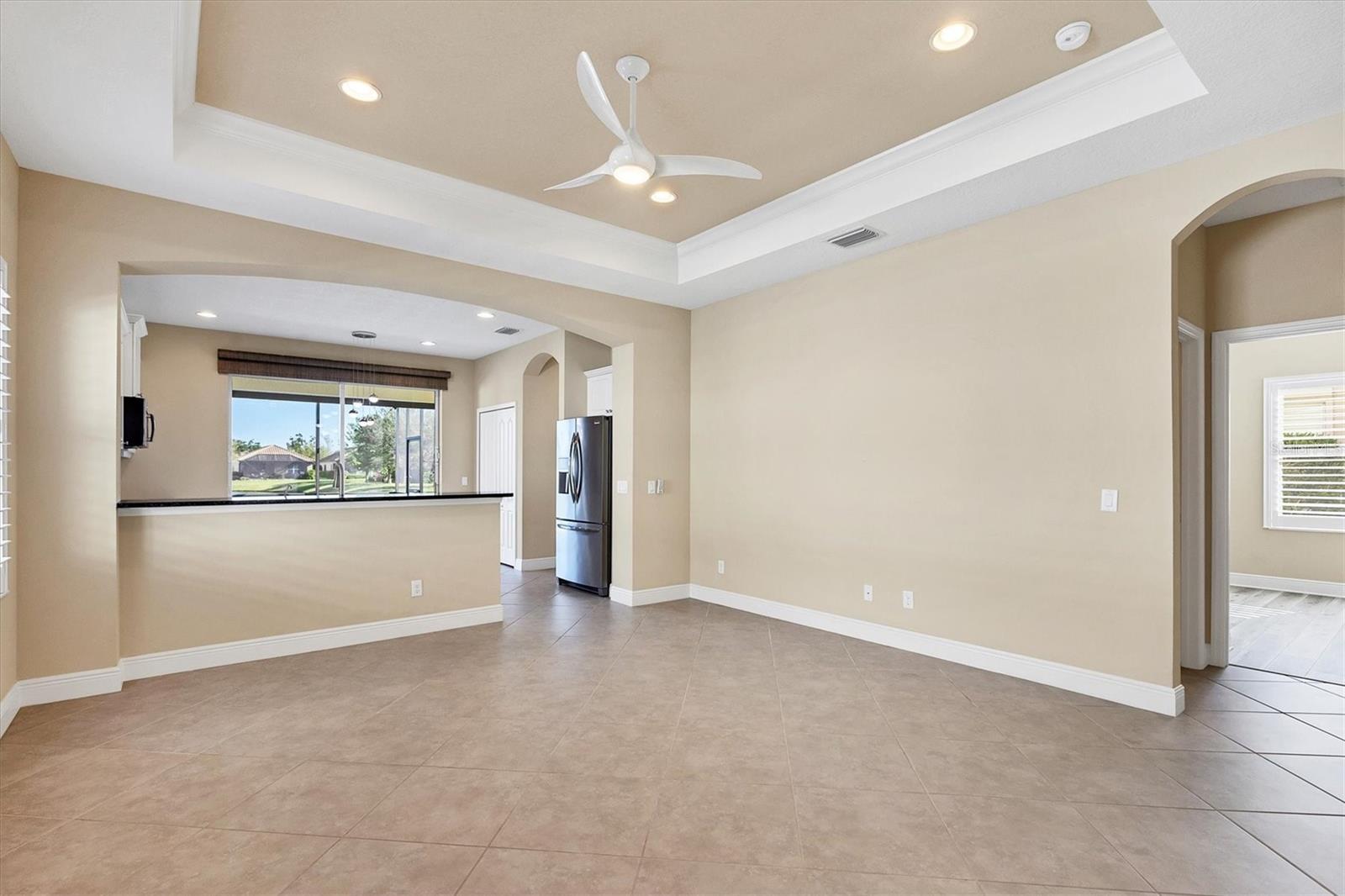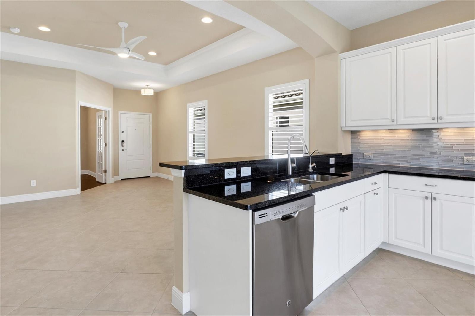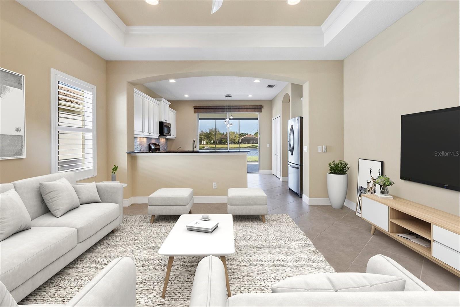 One or more photo(s) has been virtually staged. Set on a tranquil water lot in the premier Indigo community of Lakewood Ranch, 12717 Deep Blue Place is a home that impresses at every turn. With no CDD fees, high-end finishes throughout, and a layout designed for modern living, this residence offers a rare opportunity to enjoy effortless elegance in one of the area’s most coveted locations. This beautifully maintained 3-bedroom, 2-bathroom residence with a versatile den offers 1,509 square feet of refined living space on a premium water lot—delivering peaceful views and an exceptional lifestyle with no CDD fees, a rare and valuable benefit in this neighborhood. From the moment you arrive, you’ll appreciate the home’s inviting front porch, manicured landscaping, and welcoming curb appeal. Inside, the neutral color palette and thoughtful design create a bright, open atmosphere that feels instantly like home. Designed for flexibility and everyday comfort, the layout includes a spacious den behind French doors that can easily serve as a home office, cozy sitting area, or even a formal dining space. The kitchen is both functional and stylish, offering warm wood cabinetry, granite countertops with bar-height seating, stainless steel GE appliances including a gas range, a spacious pantry, and room for a breakfast table—perfect for everything from morning coffee to entertaining guests. The open-concept living and dining areas flow effortlessly from the kitchen, creating a natural space to gather and relax. Just beyond, an extended covered lanai invites you to unwind and take in the tranquil water views. With plenty of room for both dining and lounging, this outdoor living area is a true extension of the home. The roll-down hurricane shutters provide both convenience and peace of mind, and the charming front porch offers an additional spot to enjoy Florida’s sunshine and fresh air. The functional layout offers privacy and comfort for all. The primary suite is spacious and serene, featuring a large walk-in closet and an en-suite bath with double vanity and a walk-in shower. The two additional bedrooms and full bath are tucked away on the opposite side of the home, making them ideal for guests or family. Throughout the home, high-quality finishes add both style and substance. The bedrooms feature new Pergo luxury vinyl flooring, while the windows are dressed in custom plantation shutters from Shutter Shop, adding a touch of elegance and functionality. Additional upgrades include a whole-house generator, whole-house water softener, new gutters around the entire home—an upgrade many homes in Indigo lack—energy-efficient windows, enhanced irrigation, and updated designer lighting and ceiling fans. Indigo offers a vibrant, resort-style lifestyle with amenities such as a heated pool and spa, state-of-the-art fitness center, pickleball and bocce courts, and a full-time lifestyle director who coordinates community events and activities. The quarterly HOA fee includes lawn maintenance and irrigation, allowing for low-maintenance living. Set in the heart of Lakewood Ranch, this home provides convenient access to top-rated schools, scenic parks, miles of trails, shopping, dining, and world-renowned Gulf Coast beaches. With its desirable water view, flexible layout, numerous upgrades, and rare absence of CDD fees, 12717 Deep Blue Place is more than a house—it’s an opportunity to enjoy the very best of Florida living.