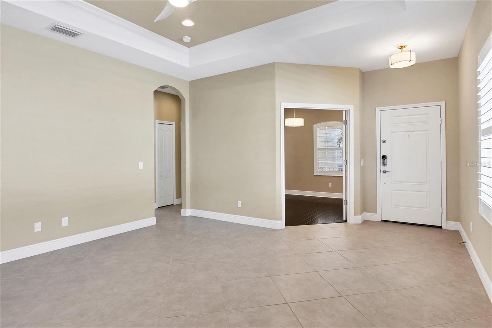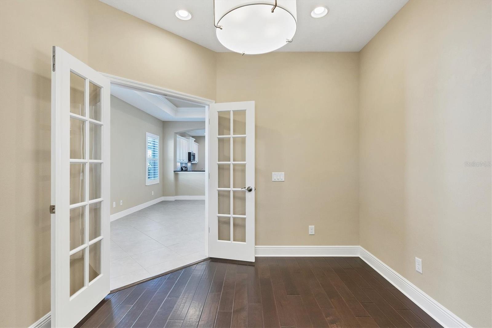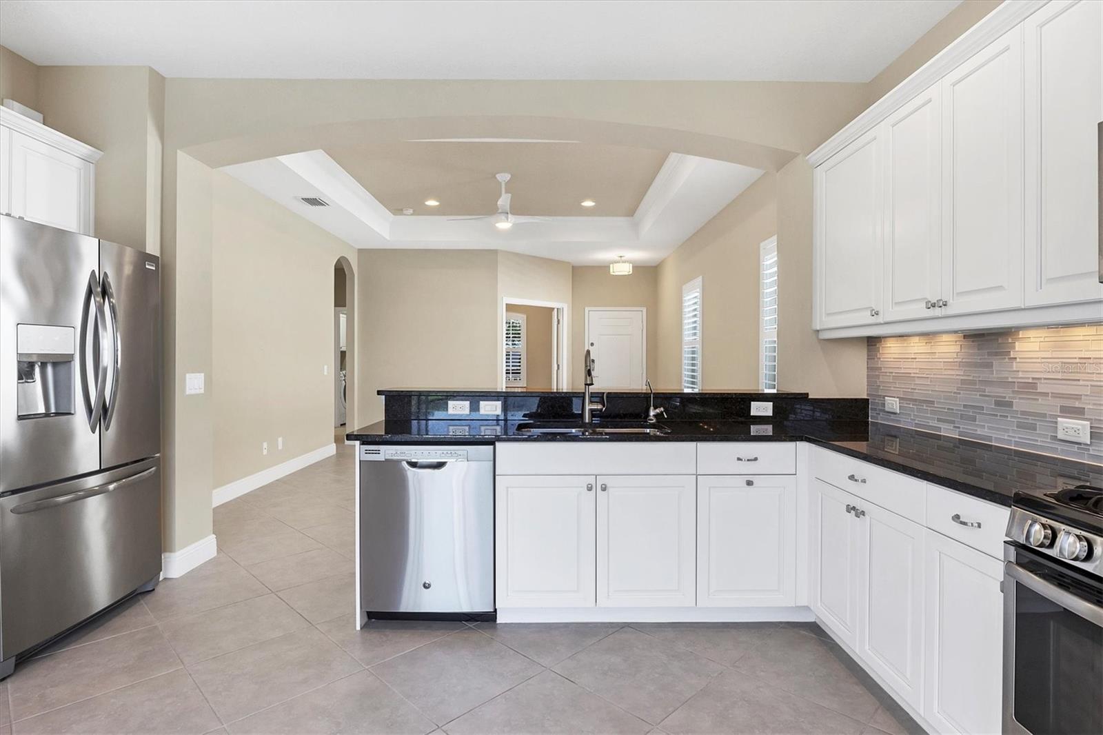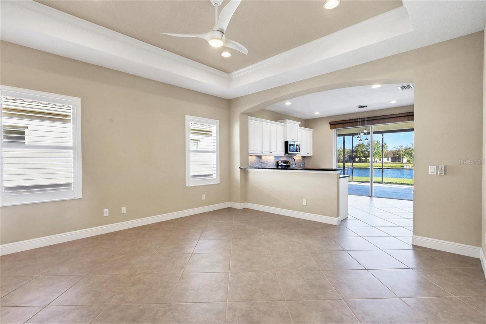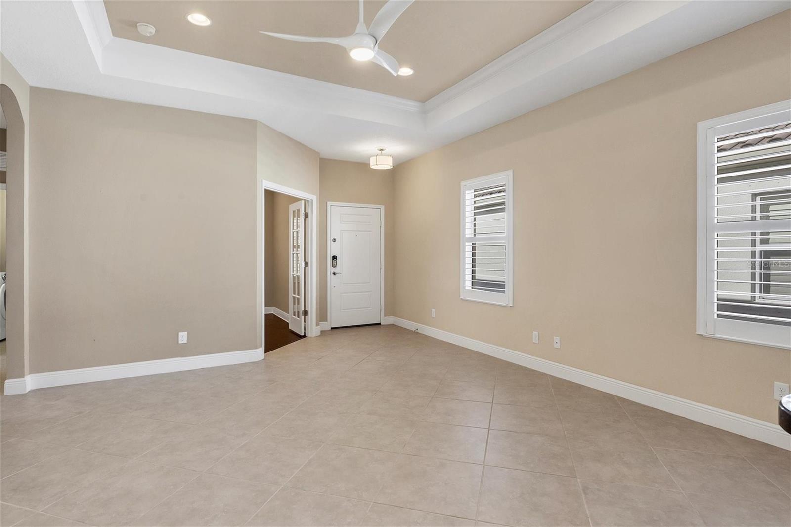 One or more photo(s) has been virtually staged. Set on a tranquil water lot in the premier Indigo community of Lakewood Ranch, 12717 Deep Blue Place is a home that impresses at every turn. With no CDD fees, high-end finishes throughout, and a layout designed for modern living, this residence offers a rare opportunity to enjoy effortless elegance in one of the area’s most coveted locations. This beautifully maintained 3-bedroom, 2-bathroom residence with a versatile den offers 1,509 square feet of refined living space on a premium water lot—delivering peaceful views and an exceptional lifestyle with no CDD fees, a rare and valuable benefit in this neighborhood. From the moment you arrive, you’ll appreciate the home’s inviting front porch, manicured landscaping, and welcoming curb appeal. Inside, the neutral color palette and thoughtful design create a bright, open atmosphere that feels instantly like home. Designed for flexibility and everyday comfort, the layout includes a spacious den behind French doors that can easily serve as a home office, cozy sitting area, or even a formal dining space. The kitchen is both functional and stylish, offering warm wood cabinetry, granite countertops with bar-height seating, stainless steel GE appliances including a gas range, a spacious pantry, and room for a breakfast table—perfect for everything from morning coffee to entertaining guests. The open-concept living and dining areas flow effortlessly from the kitchen, creating a natural space to gather and relax. Just beyond, an extended covered lanai invites you to unwind and take in the tranquil water views. With plenty of room for both dining and lounging, this outdoor living area is a true extension of the home. The roll-down hurricane shutters provide both convenience and peace of mind, and the charming front porch offers an additional spot to enjoy Florida’s sunshine and fresh air. The functional layout offers privacy and comfort for all. The primary suite is spacious and serene, featuring a large walk-in closet and an en-suite bath with double vanity and a walk-in shower. The two additional bedrooms and full bath are tucked away on the opposite side of the home, making them ideal for guests or family. Throughout the home, high-quality finishes add both style and substance. The bedrooms feature new Pergo luxury vinyl flooring, while the windows are dressed in custom plantation shutters from Shutter Shop, adding a touch of elegance and functionality. Additional upgrades include a whole-house generator, whole-house water softener, new gutters around the entire home—an upgrade many homes in Indigo lack—energy-efficient windows, enhanced irrigation, and updated designer lighting and ceiling fans. Indigo offers a vibrant, resort-style lifestyle with amenities such as a heated pool and spa, state-of-the-art fitness center, pickleball and bocce courts, and a full-time lifestyle director who coordinates community events and activities. The quarterly HOA fee includes lawn maintenance and irrigation, allowing for low-maintenance living. Set in the heart of Lakewood Ranch, this home provides convenient access to top-rated schools, scenic parks, miles of trails, shopping, dining, and world-renowned Gulf Coast beaches. With its desirable water view, flexible layout, numerous upgrades, and rare absence of CDD fees, 12717 Deep Blue Place is more than a house—it’s an opportunity to enjoy the very best of Florida living.