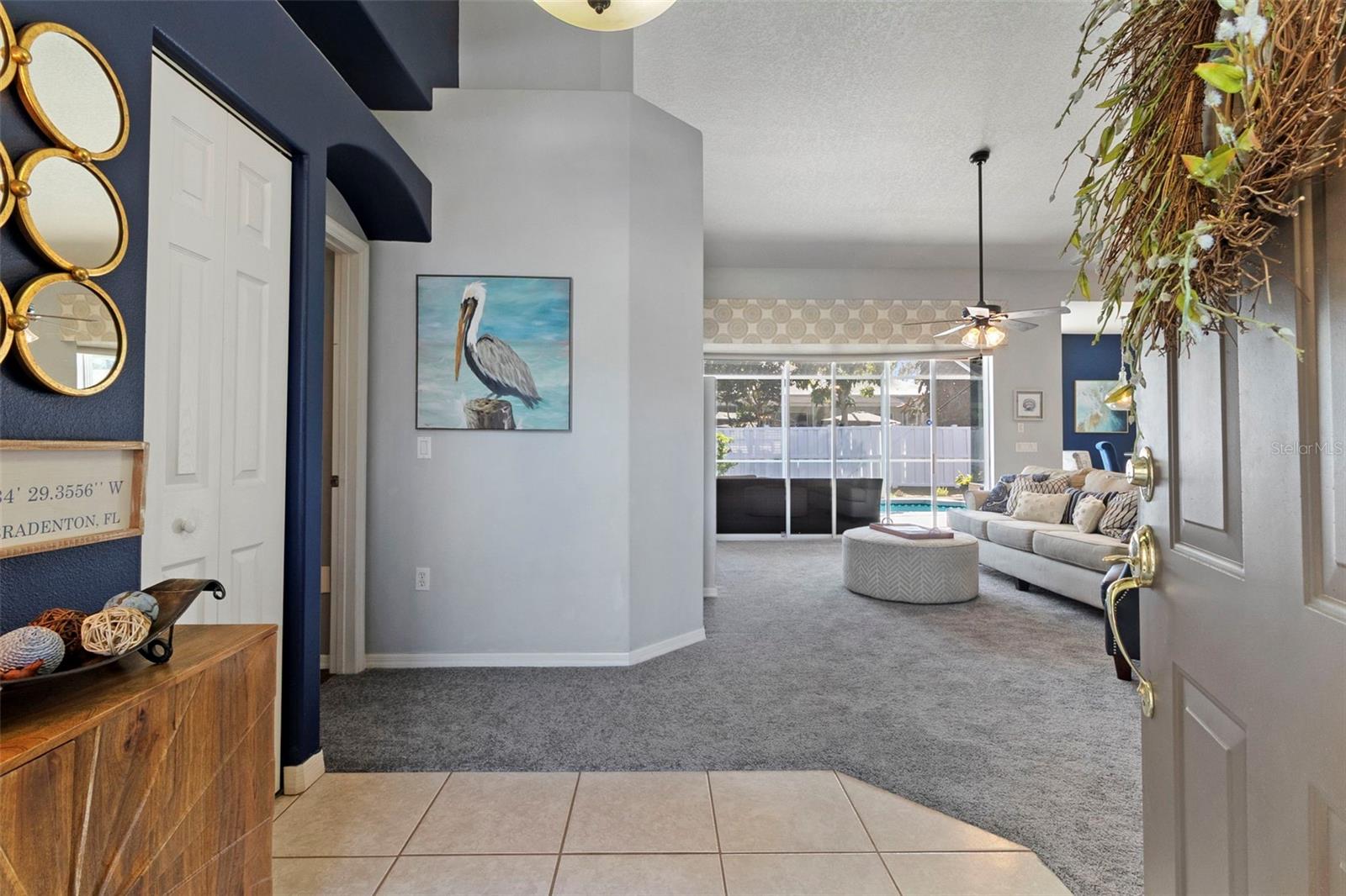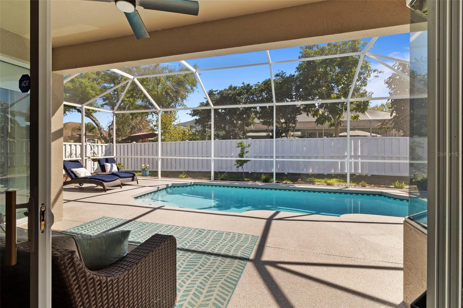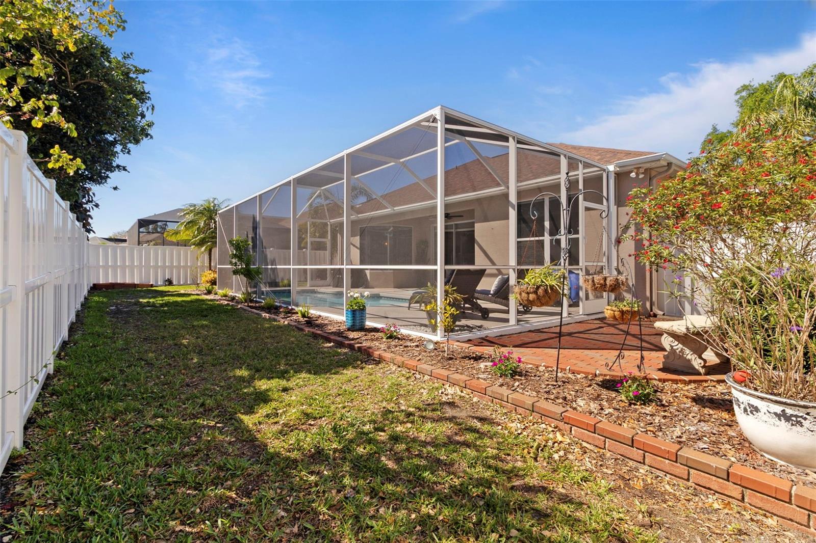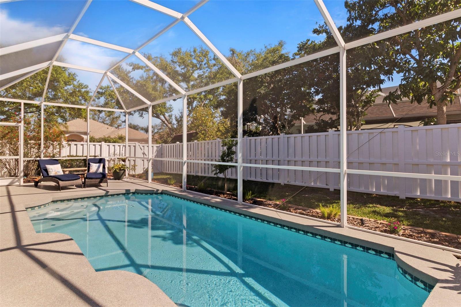 Welcome to this BEAUTIFUL home that immediately catches your eye with its open design. Upon entering, you're greeted by an expansive layout which seamlessly leads to a covered lanai and a SPARKLING POOL beyond. The thoughtfully designed SPLIT FLOOR PLAN situates provides privacy for the owner. The master en-suite has dual sinks, a large soaking tub and a Roman shower. The Master bedroom has two closets, one of which is a large walk-in with CUSTOM BUILT-INS. At the heart of the home lies a centrally located GORGEOUS KITCHEN with stunning SPARKLING STONE COUNTERTOPS and beautiful backsplash tiles, equipped with a new natural gas range, a center island with breakfast bar counter-height seating for 3-4, lovely WHITE CABINETS, a pantry, and an influx of NATURAL LIGHT from strategically placed windows. The spacious formal dining room, great room, and bright dinette with AQUARIUM WINDOWS overlooking the pool make this home perfect for entertaining. For outdoor gatherings, the adjoining lanai offers a PRIVATE BACKYARD OASIS with a SPARKLING POOL, comfortable seating areas, lush vegetation, and low-maintenance PVC fencing so your pets can have fun in the backyard. SIGNIFICANT UPGRADES over the past three years include a NEW ROOF, NEW HVAC system, NEW POOL HEATER and pool/lanai resurfacing, new deep sink in laundry, new bathroom toilets/fixtures/lighting, and new flooring in the living/dining rooms. The new BLACKSTONE GAS GRIDDLE is staying with the house as a bonus! The furniture is available on a separate contract. Located in a friendly community surrounded by the highly rated LINKS AT GREENFIELD PLANTATION GOLF COURSE, which is a pay-as-you-play GOLF COURSE so residents enjoy the benefits of golf community living without mandatory memberships. The community's proximity to elementary and middle schools, accessible via sidewalks without leaving the neighborhood, adds to its appeal. Additionally, its close proximity to LAKEWOOD RANCH offers the advantages of nearby amenities without the associated high fees. With a LOW HOA fee of only $500 per year and NO CDD FEE, this home is conveniently located just two miles east of I-75, providing easy access to all the area has to offer which includes the brand new development underway which includes Costco, Target, multiple restaurants and shops.