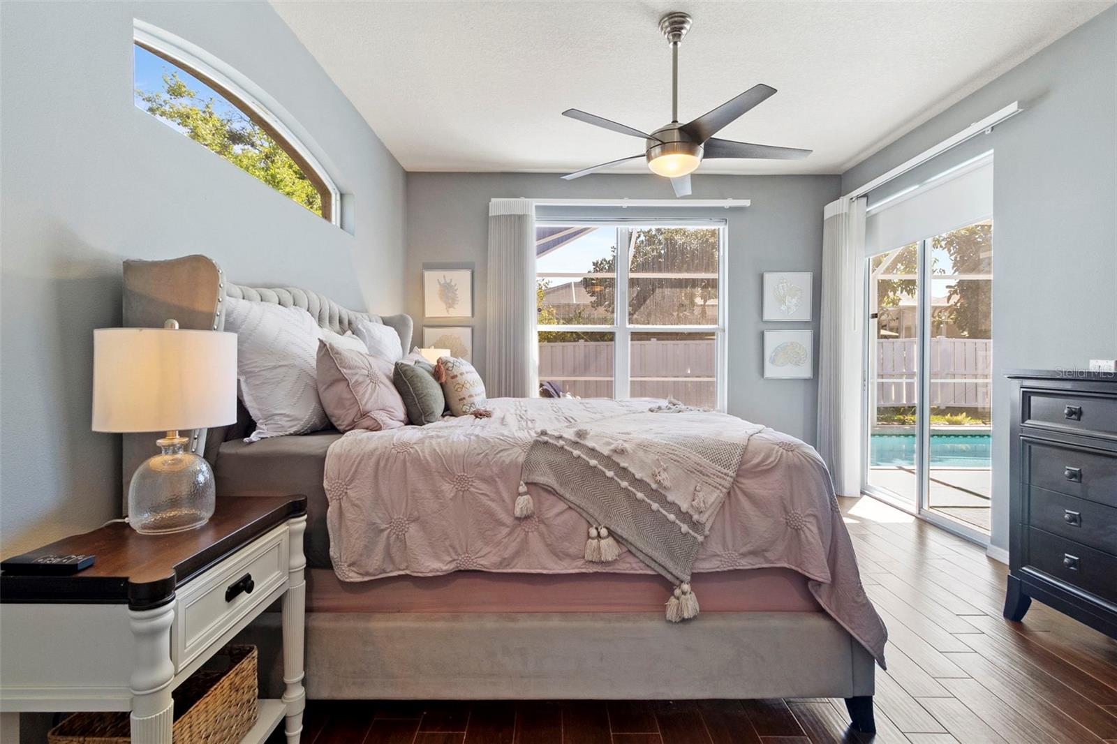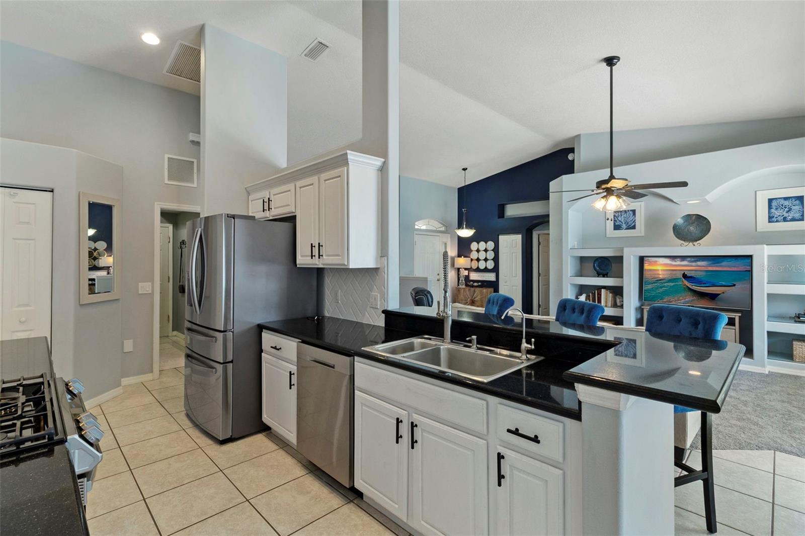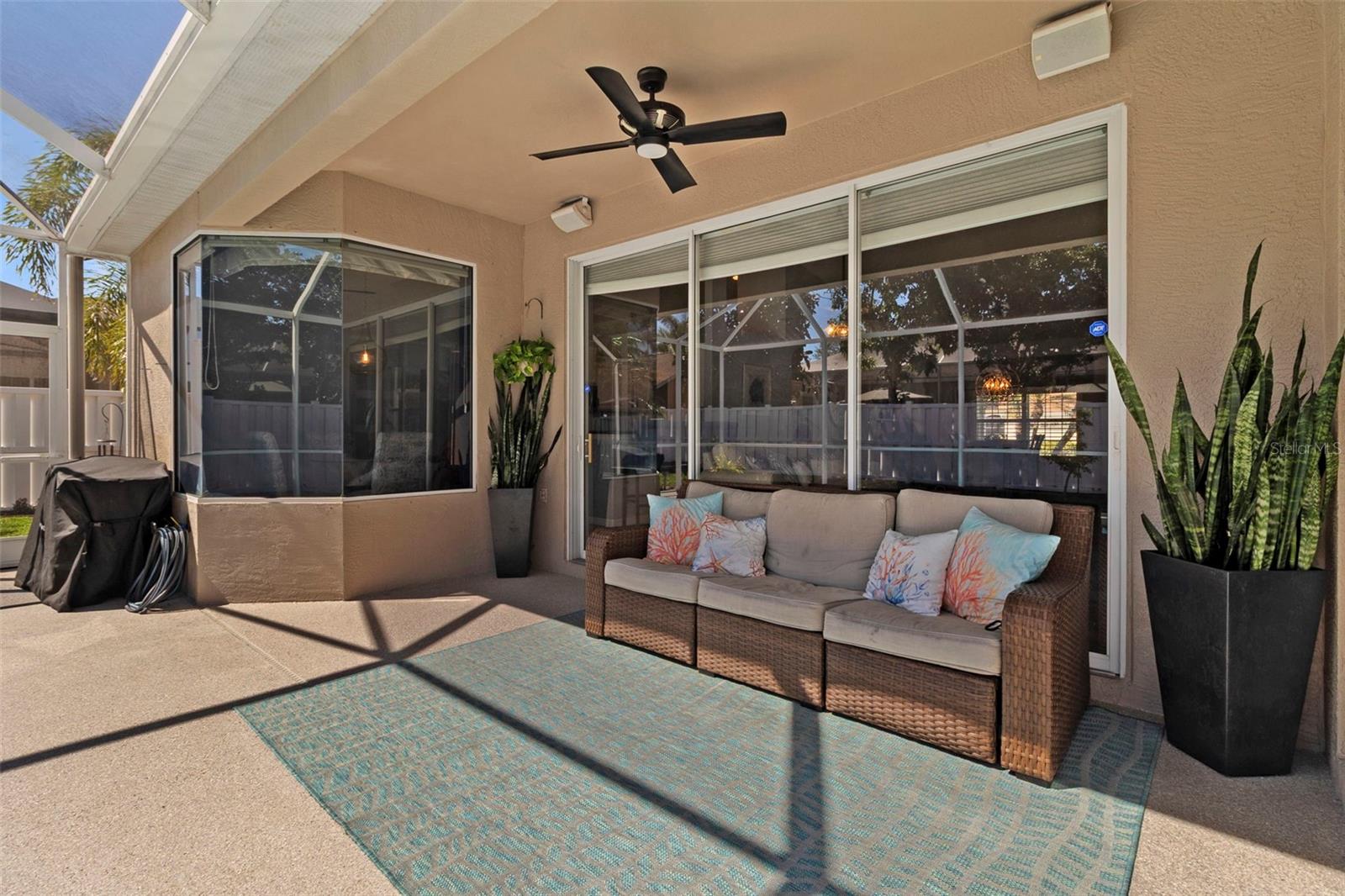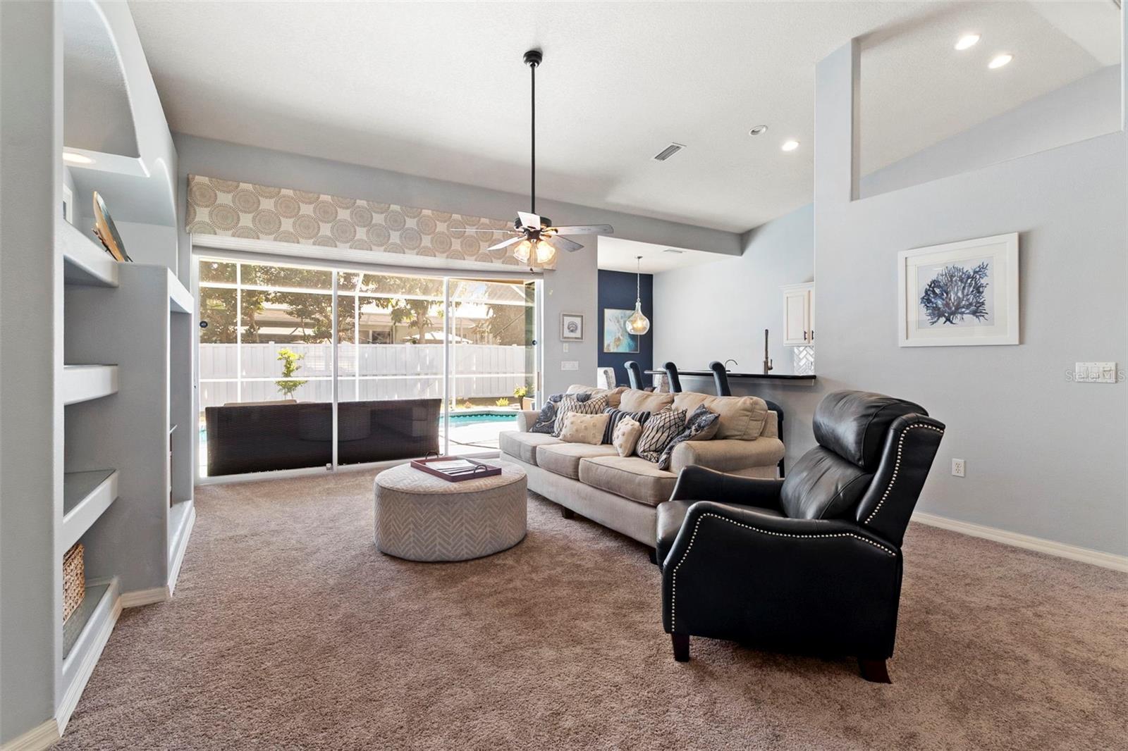 Welcome to this BEAUTIFUL home that immediately catches your eye with its open design. Upon entering, you're greeted by an expansive layout which seamlessly leads to a covered lanai and a SPARKLING POOL beyond. The thoughtfully designed SPLIT FLOOR PLAN situates provides privacy for the owner. The master en-suite has dual sinks, a large soaking tub and a Roman shower. The Master bedroom has two closets, one of which is a large walk-in with CUSTOM BUILT-INS. At the heart of the home lies a centrally located GORGEOUS KITCHEN with stunning SPARKLING STONE COUNTERTOPS and beautiful backsplash tiles, equipped with a new natural gas range, a center island with breakfast bar counter-height seating for 3-4, lovely WHITE CABINETS, a pantry, and an influx of NATURAL LIGHT from strategically placed windows. The spacious formal dining room, great room, and bright dinette with AQUARIUM WINDOWS overlooking the pool make this home perfect for entertaining. For outdoor gatherings, the adjoining lanai offers a PRIVATE BACKYARD OASIS with a SPARKLING POOL, comfortable seating areas, lush vegetation, and low-maintenance PVC fencing so your pets can have fun in the backyard. SIGNIFICANT UPGRADES over the past three years include a NEW ROOF, NEW HVAC system, NEW POOL HEATER and pool/lanai resurfacing, new deep sink in laundry, new bathroom toilets/fixtures/lighting, and new flooring in the living/dining rooms. The new BLACKSTONE GAS GRIDDLE is staying with the house as a bonus! The furniture is available on a separate contract. Located in a friendly community surrounded by the highly rated LINKS AT GREENFIELD PLANTATION GOLF COURSE, which is a pay-as-you-play GOLF COURSE so residents enjoy the benefits of golf community living without mandatory memberships. The community's proximity to elementary and middle schools, accessible via sidewalks without leaving the neighborhood, adds to its appeal. Additionally, its close proximity to LAKEWOOD RANCH offers the advantages of nearby amenities without the associated high fees. With a LOW HOA fee of only $500 per year and NO CDD FEE, this home is conveniently located just two miles east of I-75, providing easy access to all the area has to offer which includes the brand new development underway which includes Costco, Target, multiple restaurants and shops.