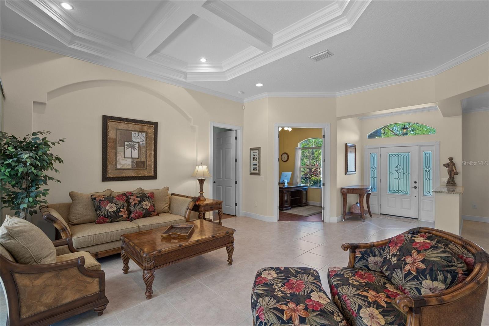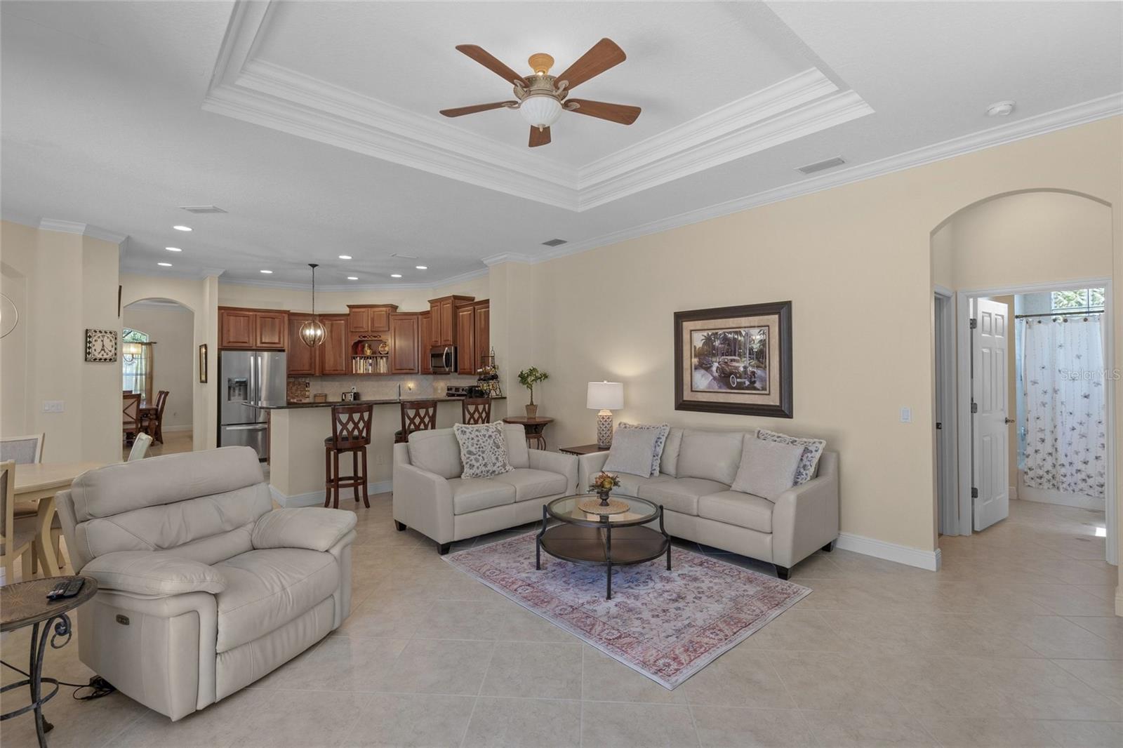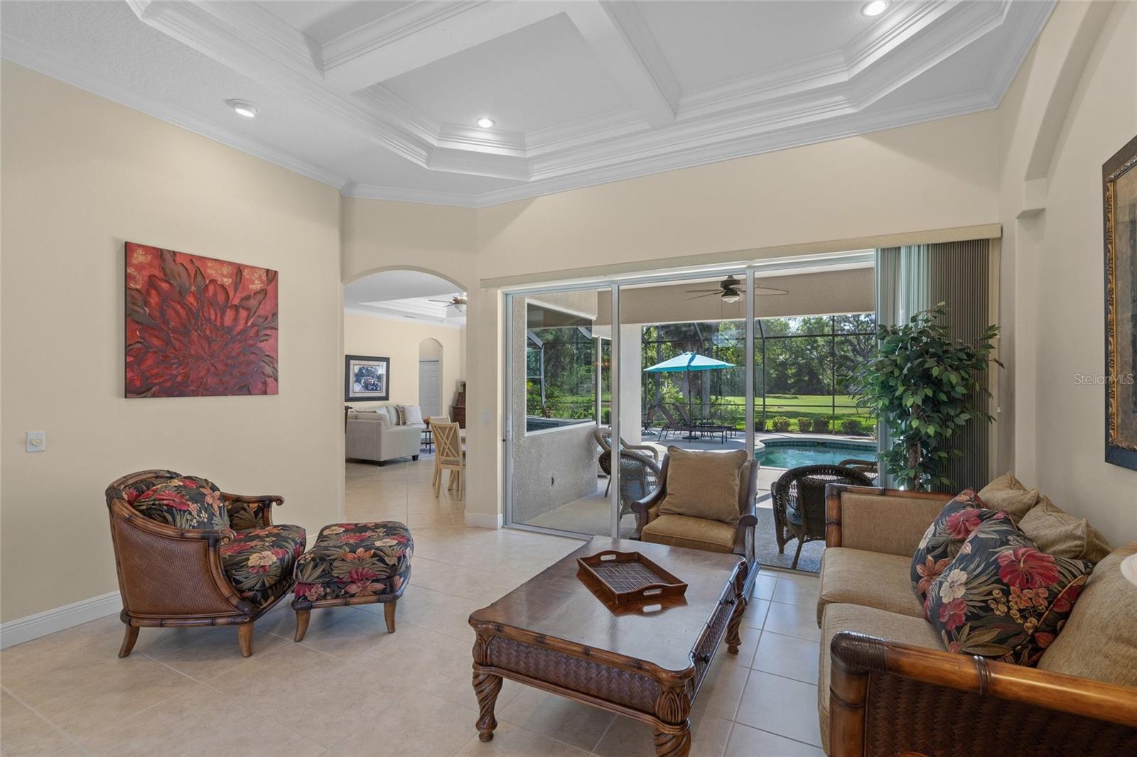 Gorgeous Mill Creek Home with Luxurious Upgrades and Pool! Welcome to your dream residence at 14404 18th Place East where modern elegance and timeless charm come together in perfect harmony. Nestled in the tranquil and highly desirable Mill Creek community, this stunning home in Phase VII offers 2,677 square feet of thoughtfully designed living space. Featuring three spacious bedrooms plus a den. Two living/family rooms and a dining room. Three pristine full bathrooms. Oversized three-car garage. Large laundry room with cabinetry, closet and second refrigerator. An abundance of storage closets. Elegant coffered/tray ceilings and crown molding throughout the home. Primary bedroom features two closets with one walk-in. New roof replacement in 2021. As you step inside, you'll be greeted by an expansive open-concept layout with gorgeous outdoor views. Unique to this home are the front and back pond and woods views. The reflection of the preserved woods in both ponds is rare and spectacular! The kitchen boasts upgraded stainless-steel appliances, granite countertops and an extra-large pantry. Sleek tile flooring in the main areas enhances the home's ambiance while large windows and doors bathe the interior with natural light. Outdoors, the extended screened lanai invites you to unwind by the sparkling pebble tech pool while taking in the serene views of this premium lot. Wildlife lovers will delight. Low HOA fees of $600 per year and NO CDD fees! This property's location is as exceptional as its features. Situated in a family-friendly and retiree neighborhood, it offers easy access to excellent schools, golf courses, lush parks, premier shopping centers, four major airports, highways and fine dining establishments. Numerous picturesque beaches are all just a short drive away. This home ensures the perfect blend of convenience and tranquility. Make this extraordinary house your forever home today, it's a rare gem!