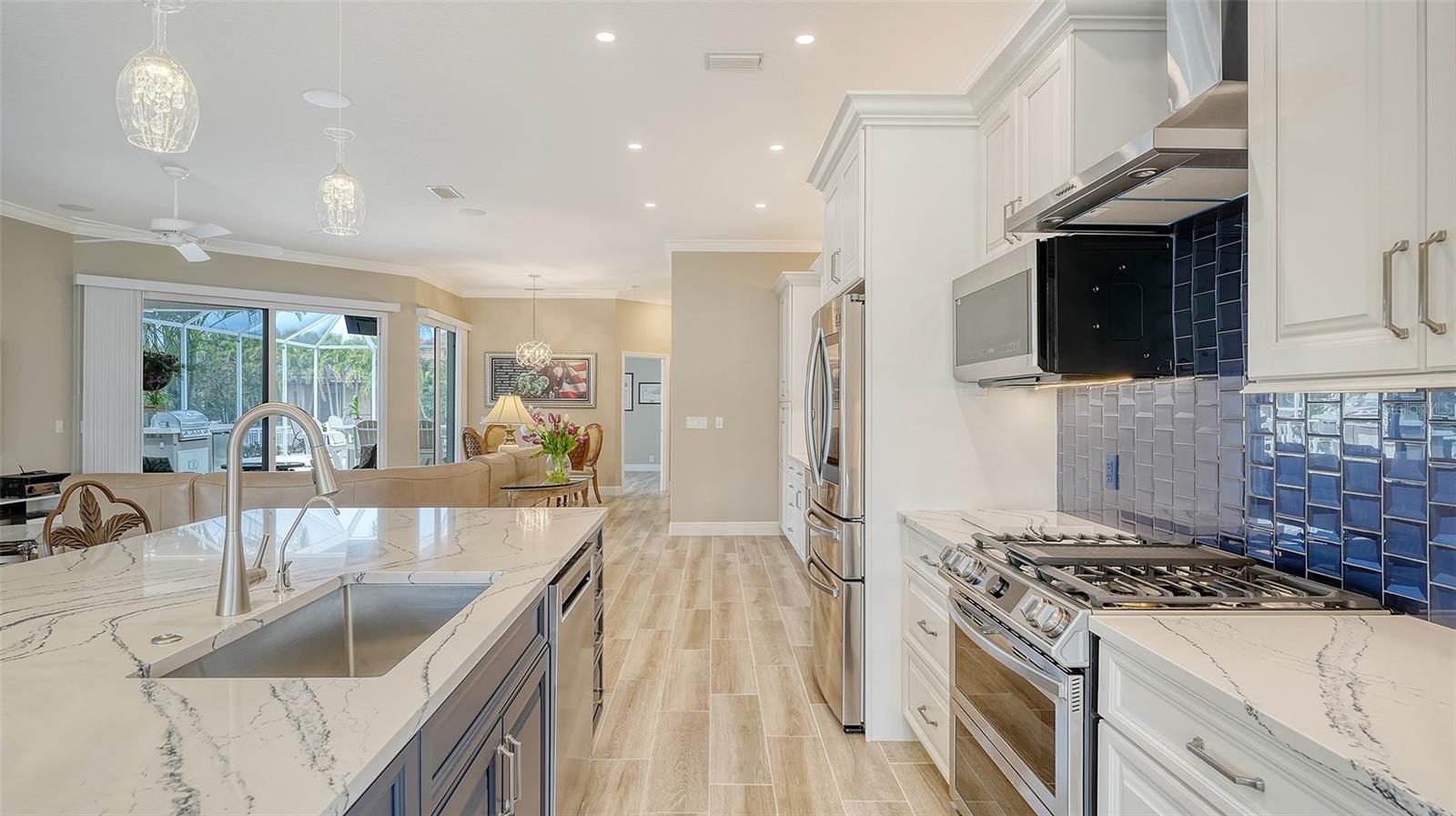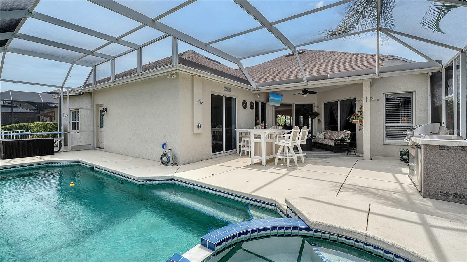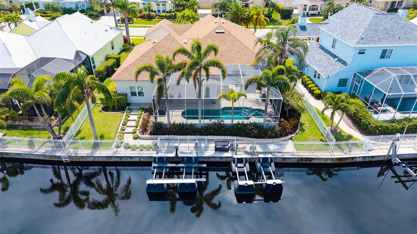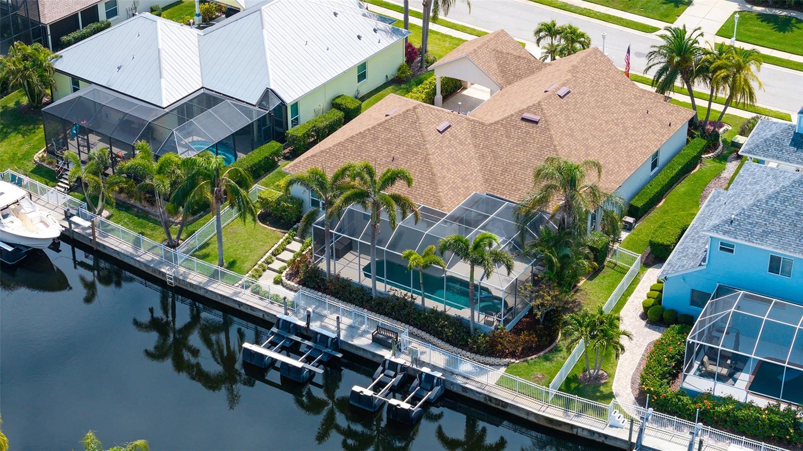 Come and make an offer...PRICE ADJUSTMENT...This beautifully updated "OPEN CONCEPT" home is nestled in the desirable waterfront community of The Inlets. It's a great location. It has been a meticulously maintained home that blends comfort and style with a host of modern CUSTOM upgrades that was completed in 2024. Step inside to discover stunning new porcelain tile flooring throughout the entire home, offering a seamless and elegant look. The spacious main living area and master bedroom are enhanced with brand-new crown molding, adding a touch of sophistication. A completely custom kitchen serves as the heart of the home, featuring Cambria quartz counters, soft-close cabinet doors, under-cabinet lighting, and all-new stainless-steel appliances—perfect for both everyday living and entertaining. Additional major upgrades include a brand-new 2024 roof, ensuring long-term peace of mind, and new AC ductwork for improved energy efficiency and comfort throughout the home. New surround sound in living and lanai area. New pool pump motor and filter plus 2 Harbor Hoist Boat Lifts 4,400 lbs each (which can be reconfigured for a larger boat.) Whether you're looking to relax in style or entertain guests, this home checks all the boxes with its tasteful updates and prime location. Don’t miss the opportunity to own this move-in-ready gem in one of Bradenton’s most sought-after waterfront communities which includes serene walking paths, kayak ramp, tennis court and playground. Convenient to shopping, schools, beaches and highways.