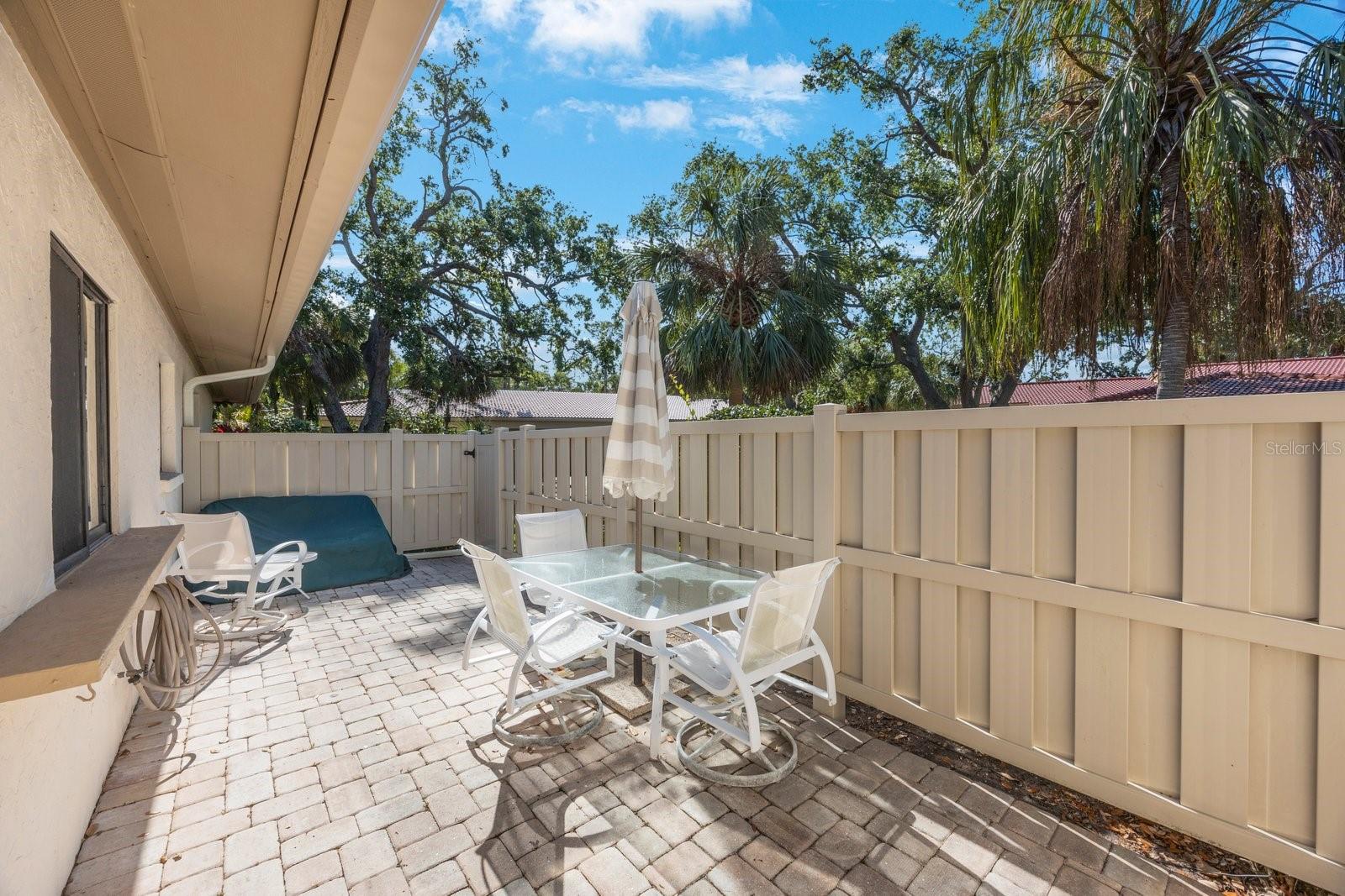MOVE IN READY!! Discover the perfect blend of comfort and convenience in this spacious 2-bedroom, 2-bathroom, 2-car garage villa on a quiet street in the sought-after Wild Oak Bay community. Meticulously cared for and featuring a NEW ROOF AND GUTTERS and a fresh coat of exterior paint (all special assessments have been paid in full by the seller), this home boasts a neutral palette throughout, allowing for easy personalization. The kitchen offers ample cabinet space, while multiple closets throughout the home provide generous storage. The large primary bedroom includes a walk-in closet and an en suite bathroom for added privacy. Enjoy outdoor living on the fenced-in patio with beautiful pavers, or take in the stunning view of mature landscaping and a serene pond with a fountain through the wall-to-wall sliding glass doors at the back of the home. The garage floor has been recently refinished, adding to the home's pristine condition. Located just moments from IMG Golf Course, BTC Tennis, grocery stores, shopping, dining, and a short drive to the airport and the beach, this maintenance-free community offers the best of Florida living. Don’t miss out on this exceptional opportunity!