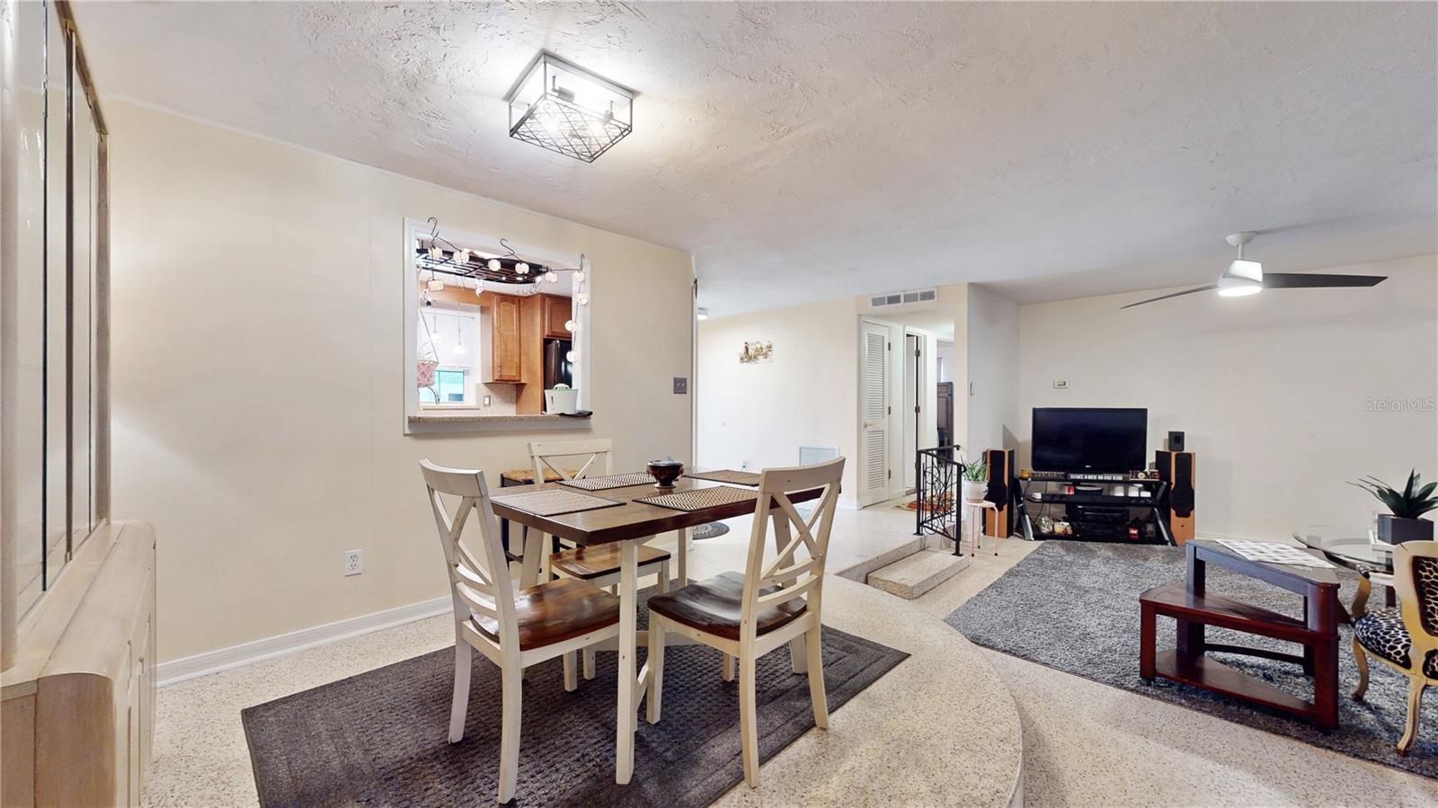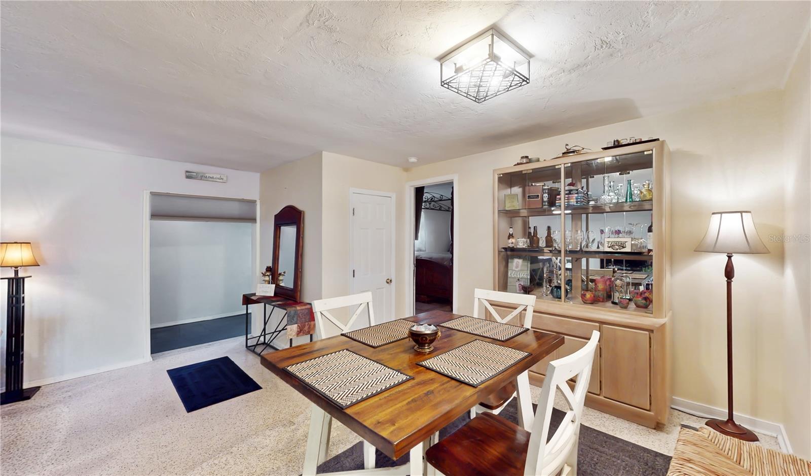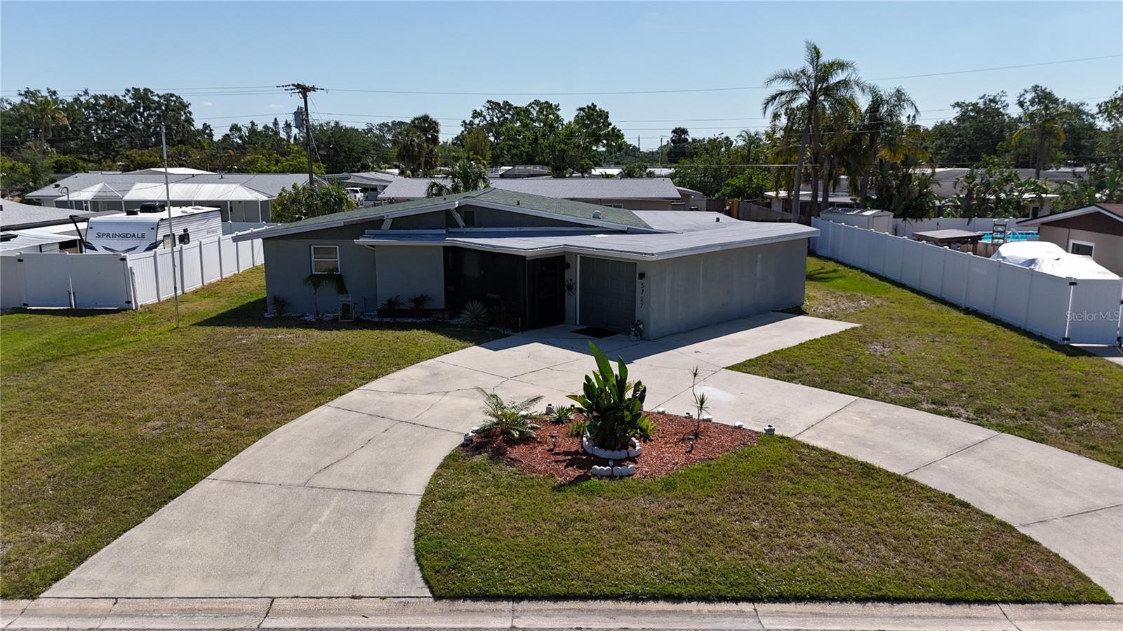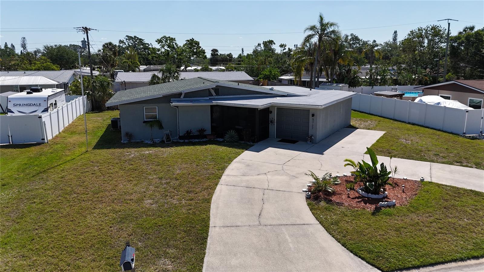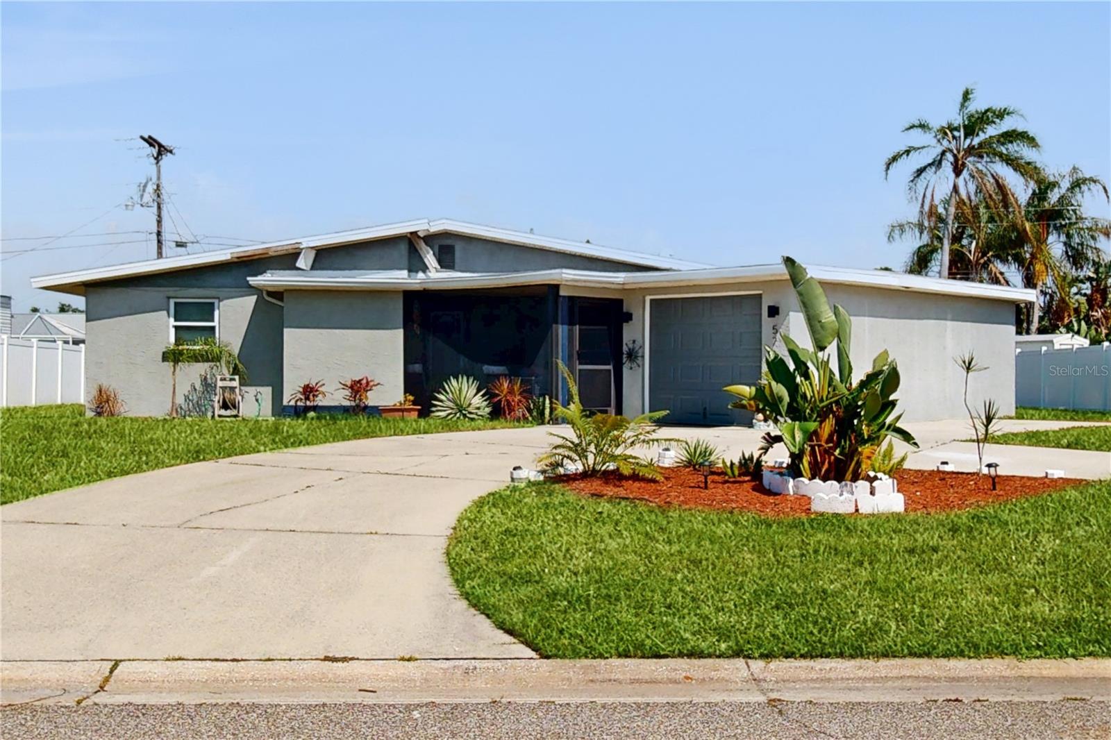 Welcome to this charming property in the Southwood Village neighborhood where comfort and convenience blend seamlessly. This charming one-story home features 3 bedrooms, 2 full bathrooms, and a 1 car garage with a generously sized circular driveway in the front, adding to the home's curb appeal. The fully screened front porch provides a relaxing seating area, perfect for enjoying the outdoors. Heading through the front door you'll be pleasantly surprised with the beautifully maintained terrazzo floors, adding a touch of mid-century modern appeal throughout. The kitchen is located to your right with ample cabinet space, granite countertops, newer appliances, as well as an adjacent pantry & office space with access to the interior laundry and 1- car garage. Straight ahead you'll be welcomed into the open concept living and dining room area which can be seen from the kitchen- perfect for every day living or entertaining. Beyond that is an additional living area that can be used as a flex space, game room, home office, etc. The primary bedroom with an en-suite bathroom is located in the back right of the property providing additional privacy from the other two bedrooms on the left side of the house as well as an additional full bath with a tub-shower combo. New roof(June 2022) and newer HVAC system(Nov 2018). Enjoy the large rear yard which is mostly fenced to provide privacy for enjoying the outdoor space. Conveniently located near shopping, dining, medical facilities, Sarasota Jungle Gardens, SRQ airport, Bayshore Gardens Park, public transportation, and the beautiful gulf coast beaches. Don't miss your opportunity to call this one home, schedule your showing today! **Please note that the owner is having the few pieces of damaged/missing soffit & flashing repaired/replaced **