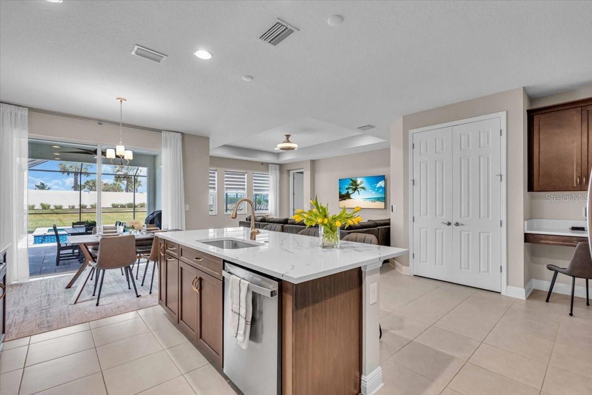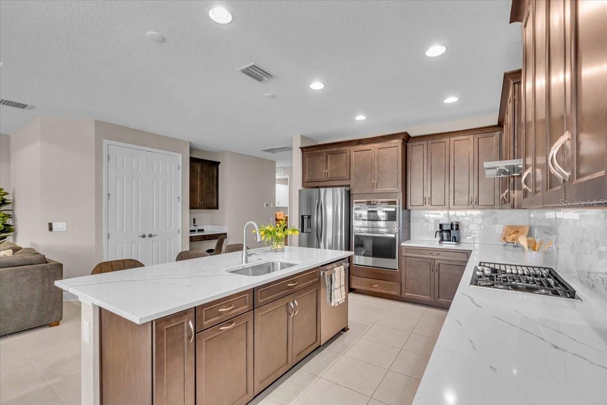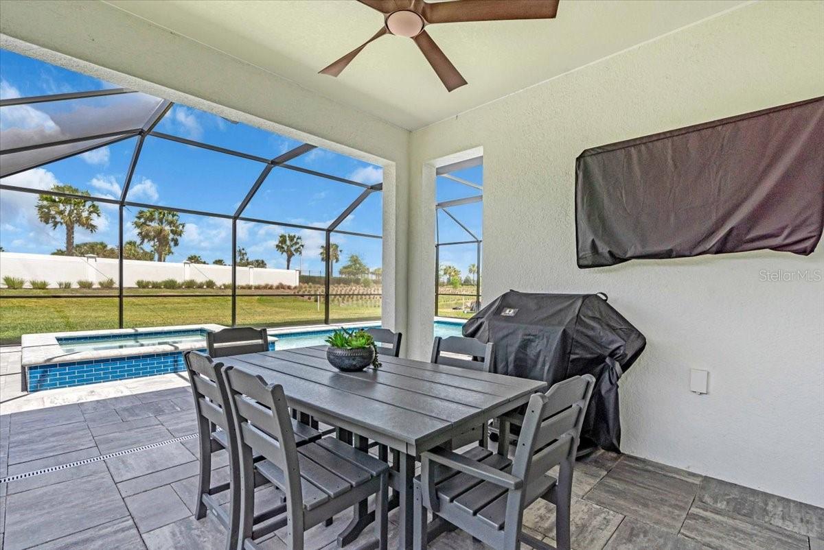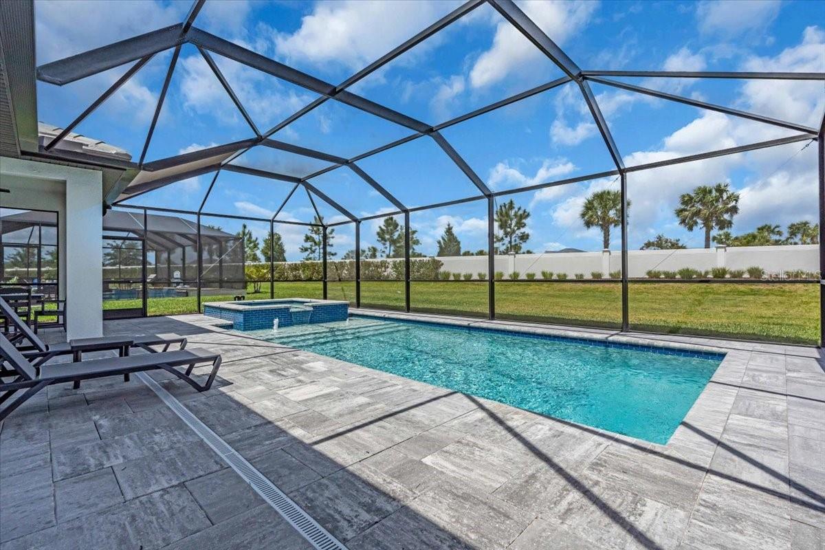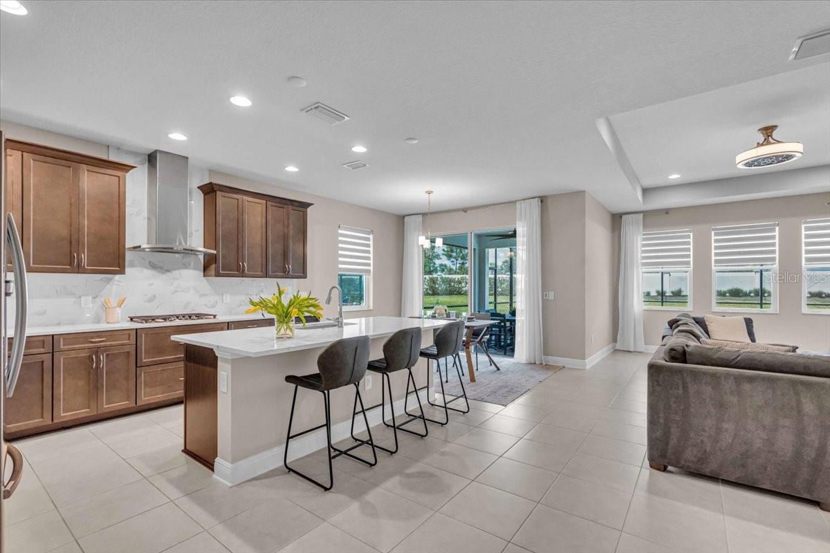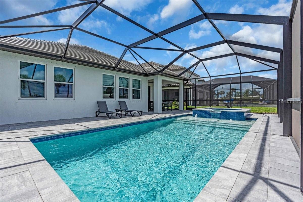 This new construction customized 4-bedroom, 3-bathroom Calusa floor plan by M/I Homes is in the sought-after Sweetwater at Lakewood Ranch. Situated on a premium lot with extra space behind the pool, this home offers privacy, serenity, and beautiful preserve views. The heated saltwater pool and spa are fully controllable via an app, and with natural gas heating, the pool warms up quickly and efficiently, keeping utility costs low. Designed for both comfort and elegance, the open-concept layout features tray ceilings, sleek porcelain tile flooring throughout (no carpet!), and fans installed in every room for enhanced comfort. The gourmet kitchen is a chef’s dream, showcasing an expansive quartz island, stainless steel appliances, a gas stove, soft-close cabinets and drawers, and stylish tile backsplash. The primary suite is a true retreat with a spa-like en-suite bathroom, dual vanities, a walk-in shower, and a spacious walk-in closet. One of the spacious guest bedrooms can easily be converted into a home office or flex space, offering versatility to fit your lifestyle. Step outside to the oversized screened lanai, where you’ll find an outdoor TV setup, perfect for game days or relaxing evenings. The large paver brick decking around the pool creates a luxurious feel, seamlessly blending beauty and functionality. Whether hosting guests or unwinding in your private retreat, the expansive sun deck offers the perfect outdoor living space. This home also features an irrigation system using reclaimed water, ensuring efficient and eco-friendly lawn maintenance. Additionally, the HOA fee includes yard maintenance, providing a hassle-free experience for homeowners. Residents of Sweetwater at Lakewood Ranch enjoy resort-style amenities, including a clubhouse, fitness center, resort-style pool, pickleball and basketball courts, a festival lawn, an amphitheater, and more. Just minutes from high-end dining, shopping, top-rated schools, and world-class beaches, this move-in ready home is a must-see. Schedule your private showing today and experience the best of Florida living!