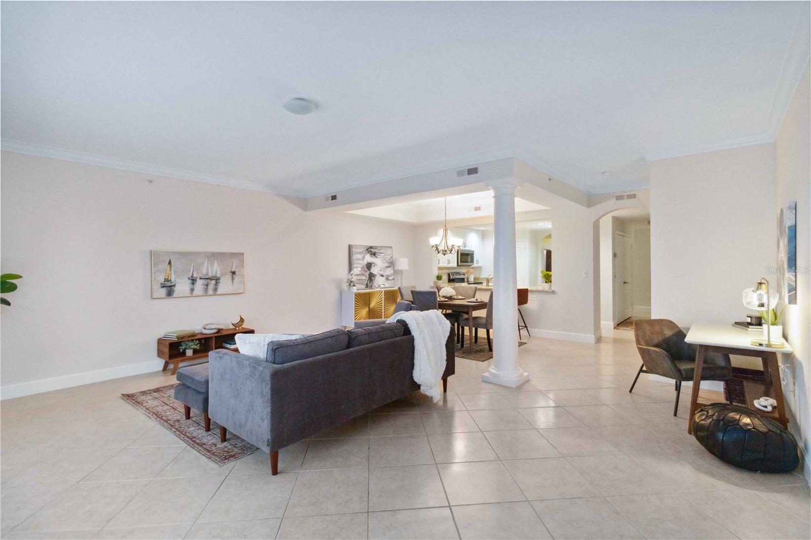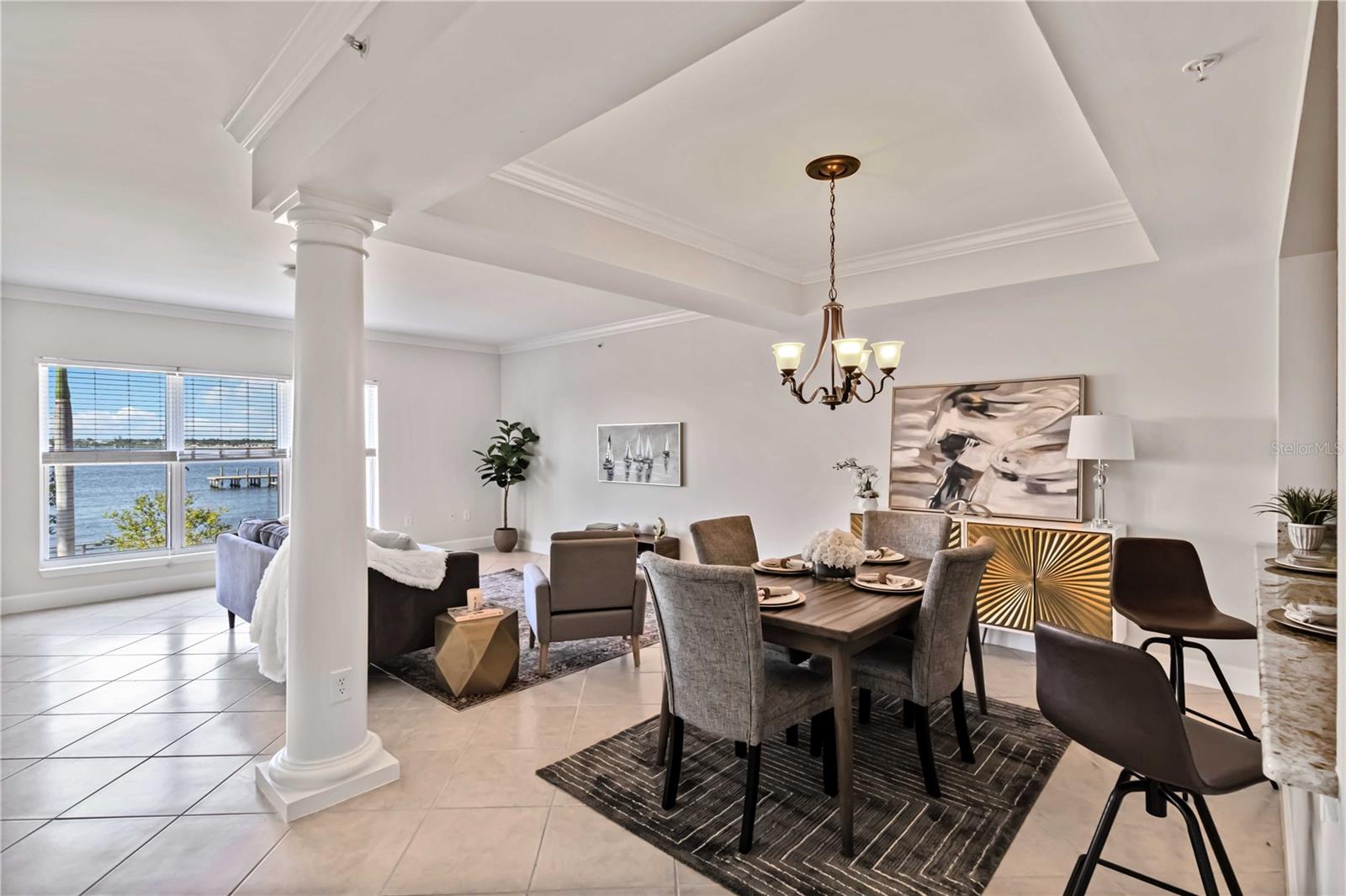 Welcome to River Dance, a premier waterfront community located along the scenic Manatee Riverwalk. This exceptional 3-bedroom, 2-bathroom condominium at River Dance offers two lanais with breathtaking direct views of the Manatee River both with hurricane proof sliding doors as well as a spacious open floor plan designed for modern living. Interior Highlights include Freshly Painted: As of January 2025, the interior has been updated with crisp white paint, providing a bright and contemporary ambiance. Spacious Kitchen: Equipped with granite countertops, stainless steel appliances, ample cabinetry, and a walk-in pantry, the kitchen seamlessly overlooks the light-filled living and dining areas. Primary Suite Retreat: Features a generous walk-in closet and an en-suite bathroom complete with a garden tub and walk-in shower. Additional Bedrooms: This floor plan includes two additional bedrooms, one of which boasts a private patio. These rooms offer versatility for guests, a home office, or hobbies. Community Amenities: Residents of River Dance enjoy a suite of resort-style amenities: Sports Facilities: Tennis and pickleball courts, a basketball court, and a six-hole practice putting green. Recreation Areas: A community center with a kitchen and pool table, a movie/media room, and a game room. Wellness Facilities: A fully equipped fitness center and a rooftop jogging track. Outdoor Leisure: A heated swimming pool with jacuzzi, cabana, and grilling area. Guest Accommodations: Two on-site guest suites available for visitors. Parking: Two assigned, secure, gated, and covered parking spots for added convenience. Prime Location: Situated directly on the Riverwalk, this condo is a short stroll from the vibrant shops and restaurants of downtown Bradenton. The Anna Maria Island Ferry docks are conveniently located in front of the River Dance community, offering a scenic boat ride to the beautiful beaches without the hassle of parking. Additionally, the pristine shores of Anna Maria Island are just a short drive away. This rare 3-bedroom condo at River Dance presents an outstanding opportunity for year-round living or a seasonal retreat. Schedule your private tour today and experience luxury waterfront living at its finest!