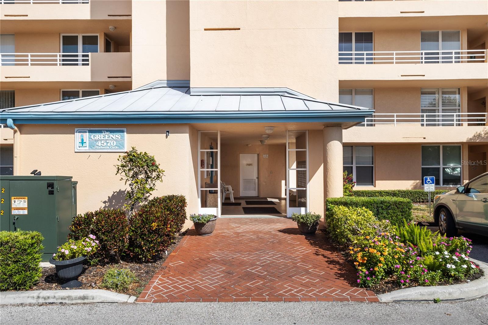 Looking for an affordable condo to escape the cold weather, then this one is for YOU! Enjoy breathtaking sunsets over the pond from this beautiful fourth-floor, 2-bedroom, 2-bathroom condo overlooking the scenic Pinebrook Golf Course. The glass-enclosed lanai offers a perfect space to relax while taking in the serene golf course views. This well-appointed condo features an eat-in kitchen, a spacious living and dining area, and a primary bedroom with a walk-in closet. The indoor laundry room includes a modern LG Graphite Steel Front Load Washer and Dryer with Mega Capacity TurboWash® and Steam Technology (5.2 cu. ft.), offering top-of-the-line convenience. Both bathrooms have been beautifully upgraded with custom-built vanities featuring Cambria quartz countertops and soft-close cabinetry. Additional highlights include a detached carport and an extra storage unit conveniently located near the elevator. The community boasts fantastic amenities, including a clubhouse with a heated pool and spa, fitness center, billiards, ping-pong, library, and tennis courts. Pinebrook Golf Course is a public, pay-as-you-play course meaning no extra fees for residents. Ideally situated near downtown Bradenton, Sarasota, IMG Academy, and the world-famous Gulf Beaches, this condo offers the perfect blend of comfort, convenience, and resort-style living.