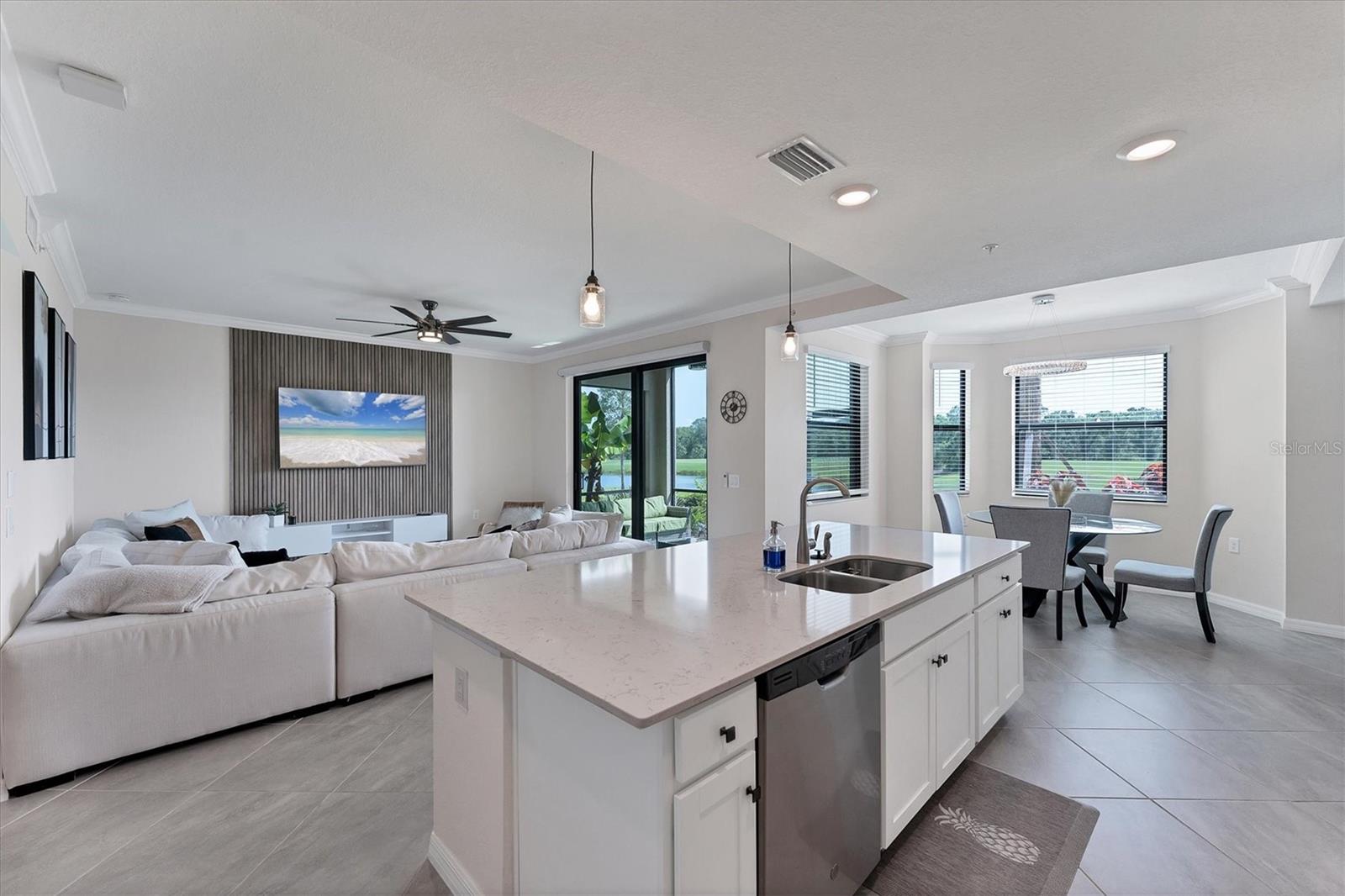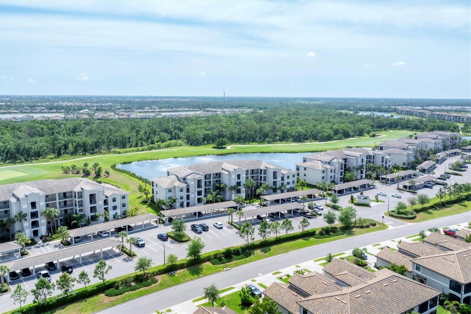 Resort-Style Living at Its Finest! Welcome to your perfect Florida retreat in the highly sought-after Lakewood National Golf Club community. This luxurious first-floor Birkdale model condo offers direct walk-up access, delivering ultimate convenience, privacy, and style. Fully furnished, professionally decorated, and move-in ready, this spacious 2-bedroom, 2-bath home spans nearly 1,200 square feet of thoughtfully designed living space. The open-concept layout features a gourmet kitchen with an oversized island, stainless steel appliances, and a brand-new upgraded herringbone backsplash that adds texture and elegance. A new washer brings added functionality to the home. The living area is a true showstopper, featuring a stunning Natural White Oak Acoustic Wood Panel feature wall—a stylish, contemporary focal point that adds warmth, character, and visual appeal. Enjoy uninterrupted panoramic vistas of the 16th tee box, shimmering water, and peaceful preserve—truly a picture-perfect backdrop from your private lanai. This condo is packed with modern upgrades, including smart home features and elegant finishes that elevate the living experience. Whether you're seeking a full-time residence, seasonal getaway, or high-performing investment property, this unit checks all the boxes. Owners can lease it out up to 12 times a year (minimum one month), making it a strong income-producing opportunity. Additional highlights include a dedicated covered parking space, ample guest parking, and private exterior storage closet – perfect for bikes, beach gear, or golf accessories. Don’t miss the chance to live or invest in one of the area’s premier gated, resort-style communities. Incredible amenities include; not one, but two 18-hole Arnold Palmer Championship golf courses, full service tiki bar at the resort pool, full service spa, 8 clay tennis courts and 4 pickle ball courts, staffed fitness center, 2 bocce ball courts, and the new Grand Clubhouse is now open offering a great space to gather with friends and neighbors! There is always something to do! Close to the Gulf beaches, shopping and dining, with easy access to I75 and all of Lakewood Ranch. Life is what you live, style is how you live it! Schedule your showing today and experience the Lakewood National lifestyle!
