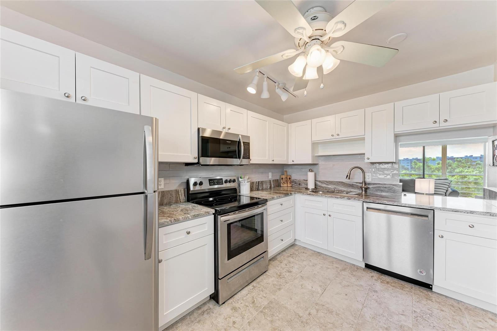 Enjoy this gorgeous Pinebrook-Ironwood end unit condo overlooking the golf course with 2 bedrooms & 2 bathrooms. The unit has been updated with newer flooring, Plantation Shutters, shaker kitchen cabinets, marble countertops & stainless-steel appliances. Both bathrooms updated too with a new A/C in 2022. There is the Skyroom on the 7th floor for social gatherings & washer & dryer located near the elevator at no cost to the owners. Amenities at the clubhouse (just a short walk away) include the pool, fitness center, billiard room, shuffleboard & bocce ball. The public golf course offers 18 holes of challenging golf shots with daily green fees or annual membership available. Pinebrook-Ironwood complex is conveniently located just off of Cortez Road, close to shopping, restaurants & just six miles to beautiful Anna Maria Island & it's blue-green waters & white sandy beaches. Furniture in the condo is negotiable !