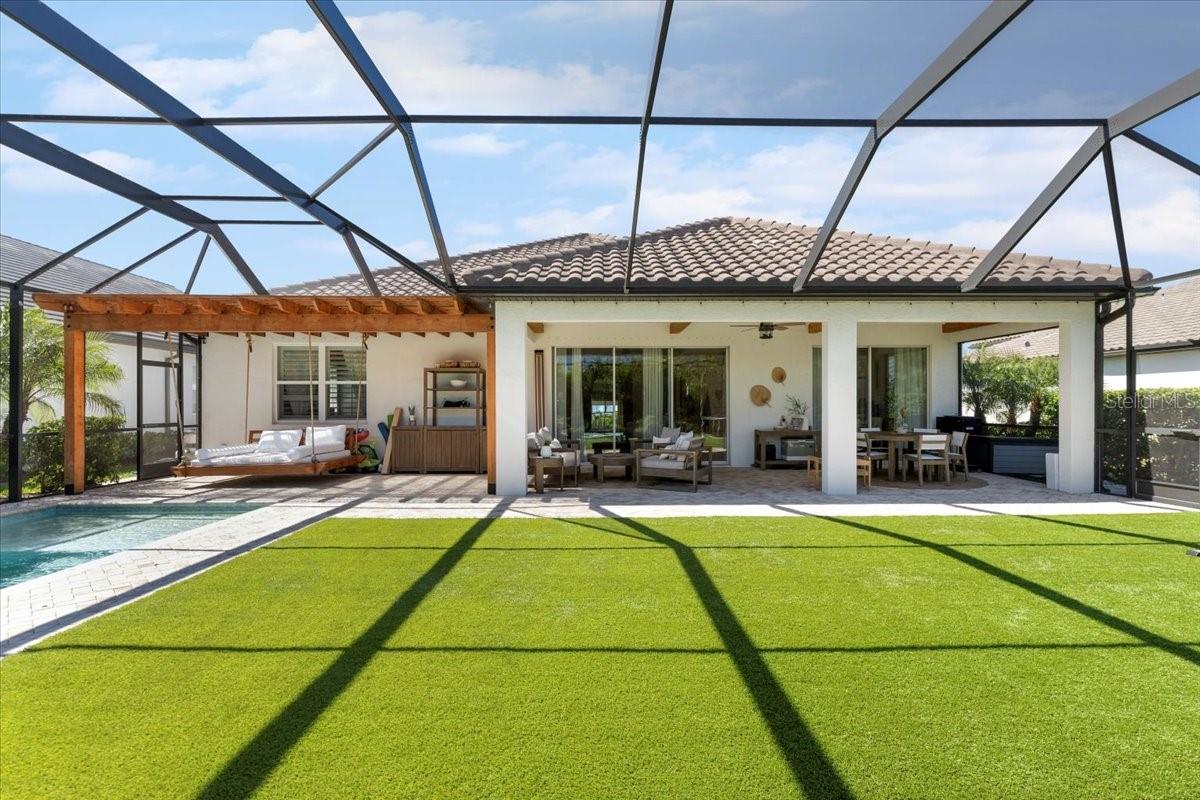 Motivated seller with 1% contribution toward closing cost!!!!! This immaculate one-story Crystal model from MI homes offers 4 bedrooms and 3 bathrooms in the prestige community of Woodleaf at Lakewood Ranch. This is luxury in paradise, don’t look any further!!! You walk into an ample foyer that takes you to find 2 bedrooms to the left with a full bathroom that has being enclosed with a barn door to provide privacy. At your right, you can find the landing from the garage with a spacious laundry room. At the end of the hallway, you will enter the open concept great room with kitchen and dining room. To the right of the living room you will find a 3rd bedroom with a full bathroom and at the other side, the primary suite with walk-in closet and double door for the spa style primary bathroom. The back part of the house will lead you to a magnificent yard thru glass sliding doors. The extended lanai will finish with a custom-made cedar gazebo overlooking the custom-made heated pool. The yard has artificial turf for natural look, pets or exercise. This gem has custom curtains, window shades, 29 solar panels covering 100% production, floored attic for storage, connection for electrical car charger, irrigation, hurricane shutters, manicured landscape, water filtration system with osmosis, tile roof, a gym setup, etc. This very well-located property is one of the few communities close to I-75 within Lakewood Ranch to make it easy drive to Sarasota, St Pete and Tampa. With top rated school zone, this property can be yours, just call NOW for a showing and don’t miss this great opportunity.