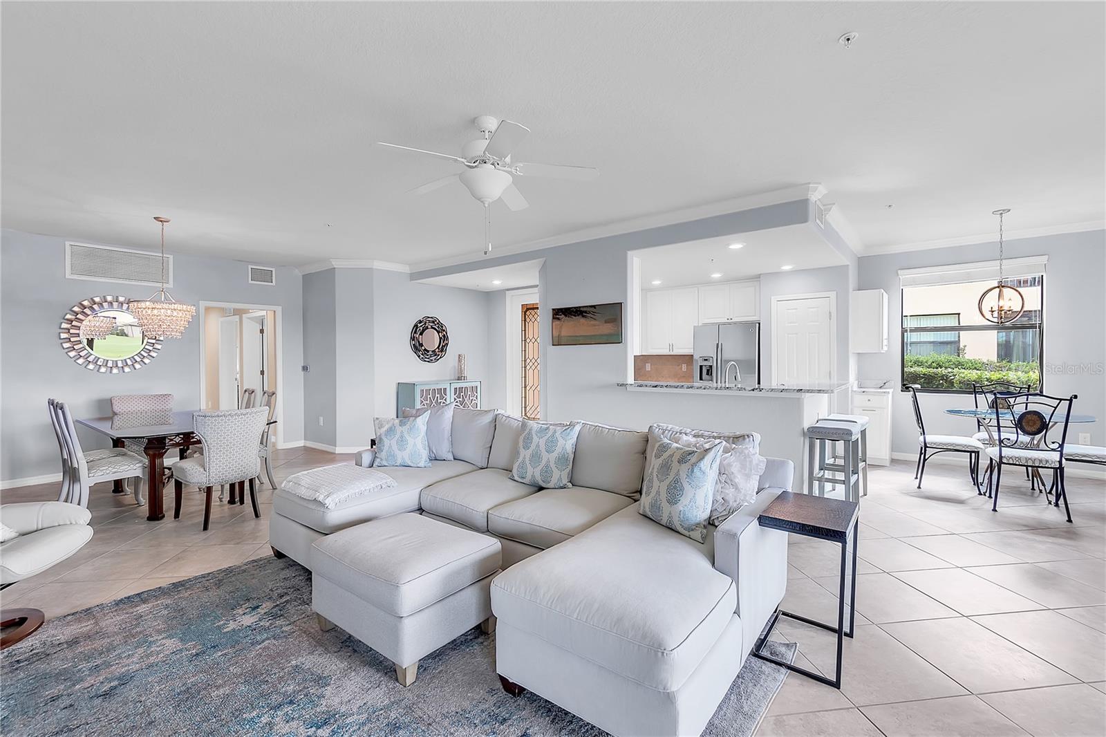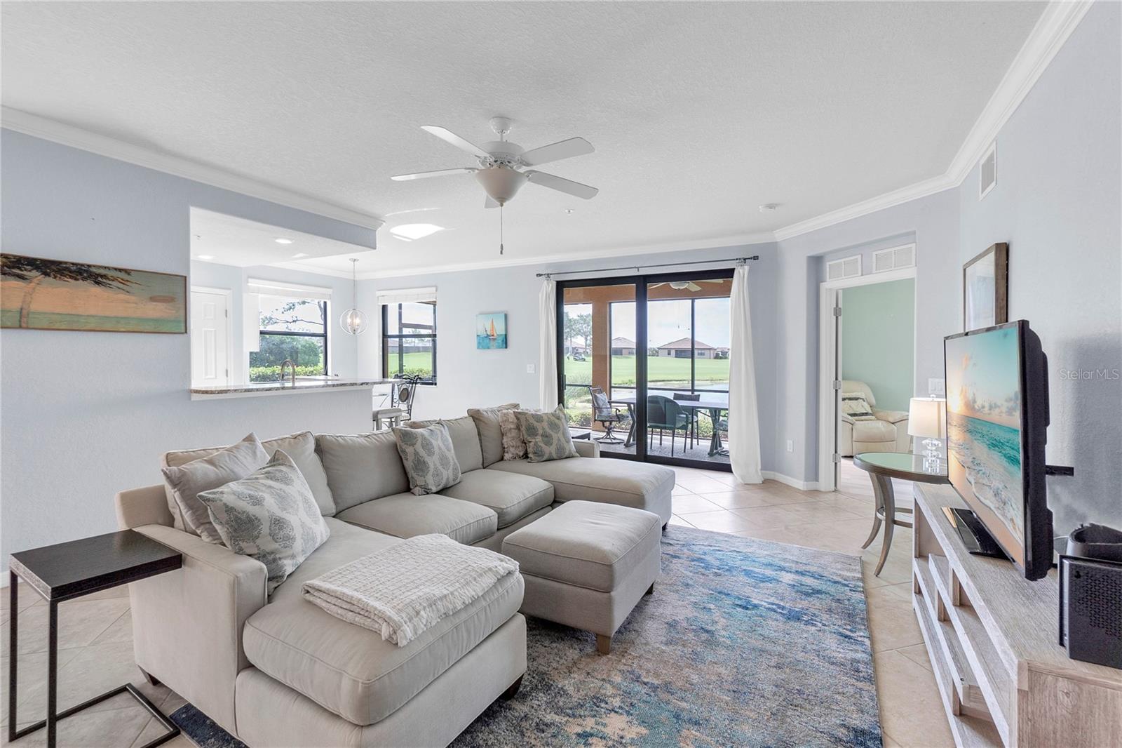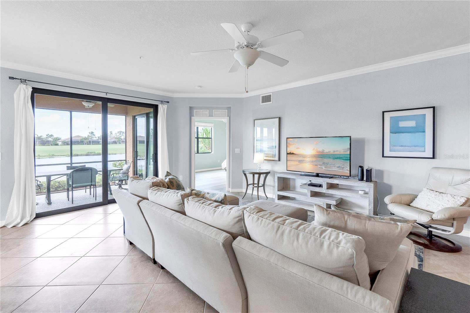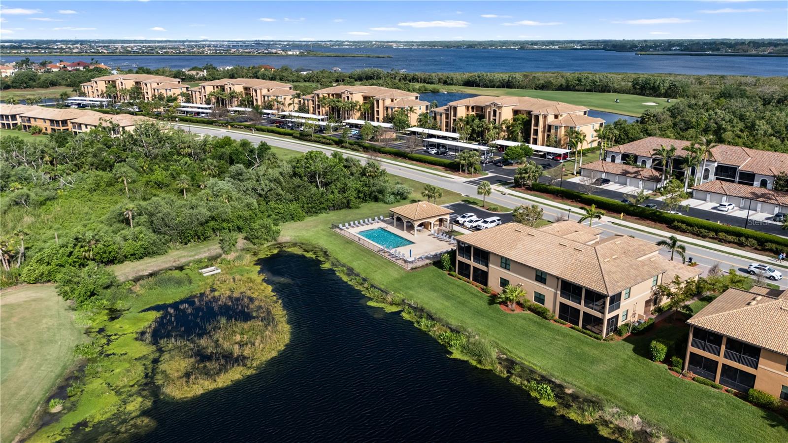 Welcome to 6618 Grand Estuary Trail—Where Every Day Feels Like a Vacation. This beautifully furnished 3 bed, 2 bath first-floor coach home includes a social membership in the highly sought-after, gated River Strand Golf & Country Club and offers breathtaking panoramic views of the water and golf course the moment you step inside. Flooded with natural light, the home has been thoughtfully updated with a reconfigured layout that opens the kitchen to the great room—creating a spacious, seamless flow ideal for both relaxing and entertaining. The designer kitchen is a standout, featuring crisp light cabinetry, updated countertops, and a custom layout that blends style and functionality. The serene primary suite offers updated flooring, dual walk-in closets, and tranquil pond views, creating a private retreat you'll never want to leave. Step outside to the screened lanai and soak in the peaceful water views—perfect for your morning coffee or a glass of wine at sunset. As a social member, you’ll have full access to all of the incredible amenities—without the cost of golf dues! Stay active with fitness centers, yoga and group classes, or wind down at the tiki bar and enjoy scenic walking trails throughout the beautifully maintained community. With over $8 million in community upgrades currently underway, River Strand continues to raise the bar for luxury living on Florida’s Gulf Coast. This unit is ideally positioned just moments from one of the beautiful satellite pools—for effortless resort-style living. Perfectly located just north of Lakewood Ranch, you’re a short drive to the powder sand beaches of Anna Maria Island, the cultural attractions of downtown Sarasota, and the vibrant energy of St. Pete and Tampa. Whether you’re looking for a full-time residence, seasonal retreat, or investment opportunity, this condo delivers on location, lifestyle, and luxury. Don’t miss this chance to live the Florida dream—schedule your private showing today!