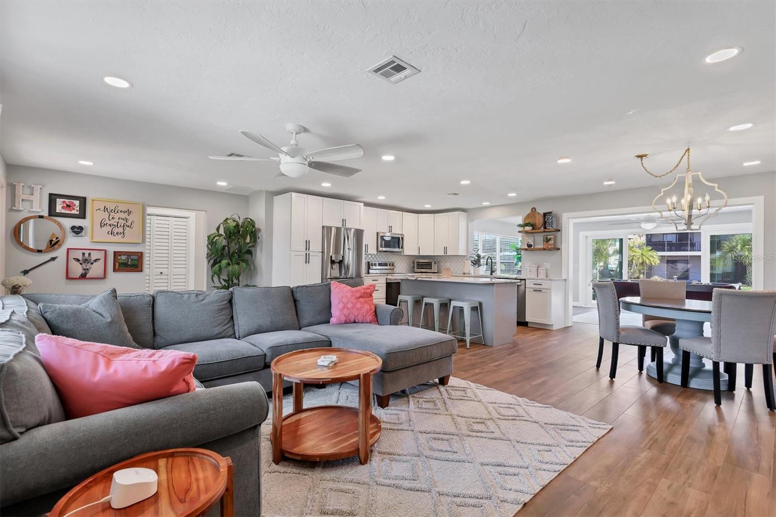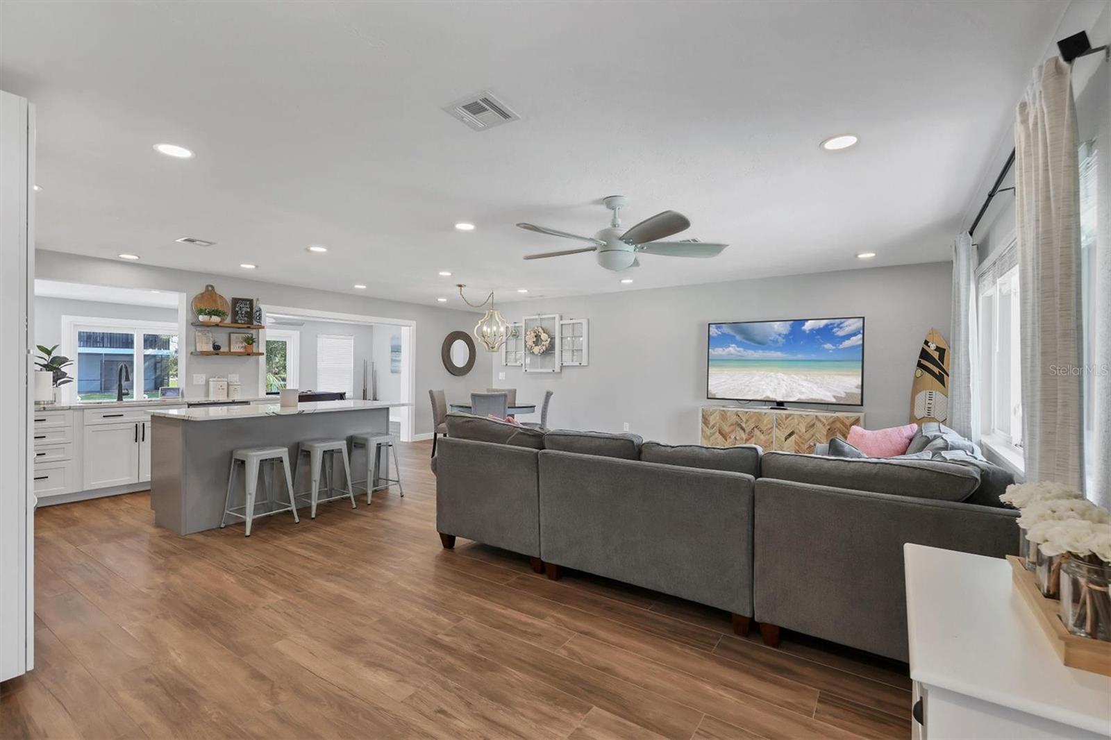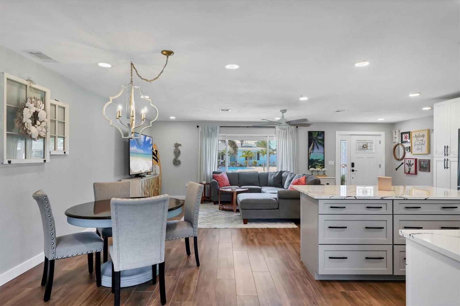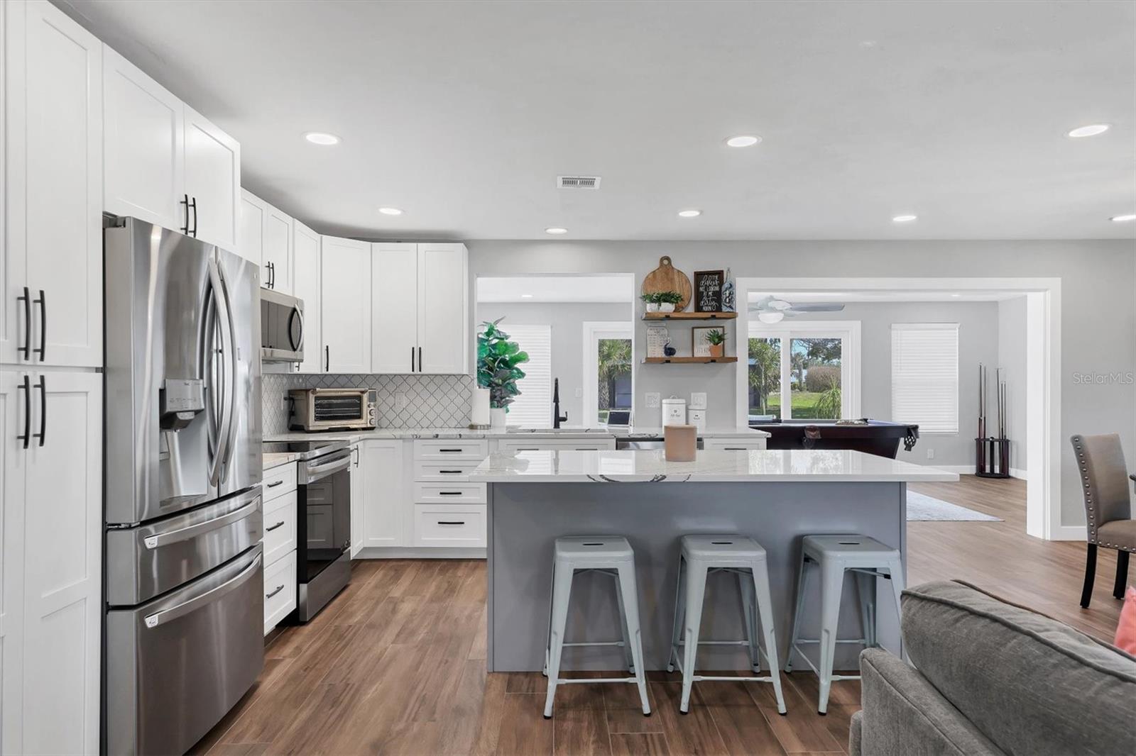 FLAMINGO CAY FANTASY! Welcome to an unparalleled opportunity to transform your dream waterfront oasis into reality! Nestled on a sizeable corner lot, at the front of a cul-de-sac street in the coveted community of Flamingo Cay, this property sits majestically on a saltwater canal with DIRECT ACCESS TO PALMA SOLA BAY!!! Traversing the threshold, you’ll find yourself instantly taken aback by the accommodating great room floor plan flaunting sweeping views from stem to stern, allowing you to transition seamlessly into your colossal bonus room highlighted by sliding glass doors leading out to your open-air paver-laden lanai and crystal-clear waters of your NEWLY CONSTRUCTED PRIVATE POOL. Just imagine sitting whilst taking in the cool morning breeze, sipping on your favorite brew, and looking out to the reticent glistening waters in your backyard. After finishing your morning coffee, you can abscond in a seaworthy vessel that will be conveniently located BEHIND YOUR HOME!!! After a day of cruising the pristine waters of the Florida Gulf Coast, you get to come home to a sprawling 2,000 sq. ft. +/- of refined living space. Your Florida Dream Home offers you and yours a charming split-bedroom floor plan, allowing residents and guests to take solace in having their own place of solitude. Too, it shares space with a charming dinette and is rounded out by a FULLY UPDATED and respectably outfitted kitchen poised in the heart of the home overlooking the great room, so you won’t miss a second of the action. Did we mention the chef of the home will certainly not go wanting as your kitchen overflows with upgrades consistent with the overall theme of your new home, from a full suite of stainless-steel appliances, tasteful CAMBRIA COUNTERTOPS, to the eat in space provided by way of your kitchen island, and plethora of storage space provided by wall-to-wall cabinetry… what else could one want for? Other notable features that certainly won’t go overlooked or unappreciated include IMPACT WINDOWS AND DOORS, NEW HVAC, FRESHLY LANDSCAPED, and EXPANSIVE LAUNDRY ROOM, providing direct access to the master en-suite, with ample storage space by way of custom-installed cabinetry. Because what is it to own a home without peace of mind? To go one step further, the lion's share of your floors are adorned with NEW attractive ceramic wood-look tile… and NOT ONE STITCH OF CARPETING throughout the entirety of the home. Lastly, and certainly not of the least importance, in the event you choose not to use your slice of paradise year-round, SHORT-TERM,WEEKLY, RENTALS ARE ALLOWED, and your home is certainly an entertainer’s paradise. Playing host to copious amounts of outdoor space, lounging areas, a private pool, and a FENCED YARD, once you arrive, there’s no reason to ever leave! Lest we forget, your new community of Flamingo Cay, to enhance the appeal, boasts a VERY LOW OPTIONAL HOA with annual dues of $175.00 per year. Enjoy the benefits of a well-maintained and friendly neighborhood without breaking the bank. We would be remiss if we failed to call attention to the fact that you’re LITERAL SECONDS away from sitting with your toes in the sand of one of our many world-renowned beaches, not to mention a plethora of shops and local eateries with some of the best views in the entire state! DO NOT ALLOW THIS OPPORTUNITY TO SAIL OFF INTO THE SUNSET WITHOUT YOU!!! ***SELLER OFFERING $10,000.00 CREDIT TOWARDS DOCK & LIFT TO ALL ACCEPTABLE OFFERS!***