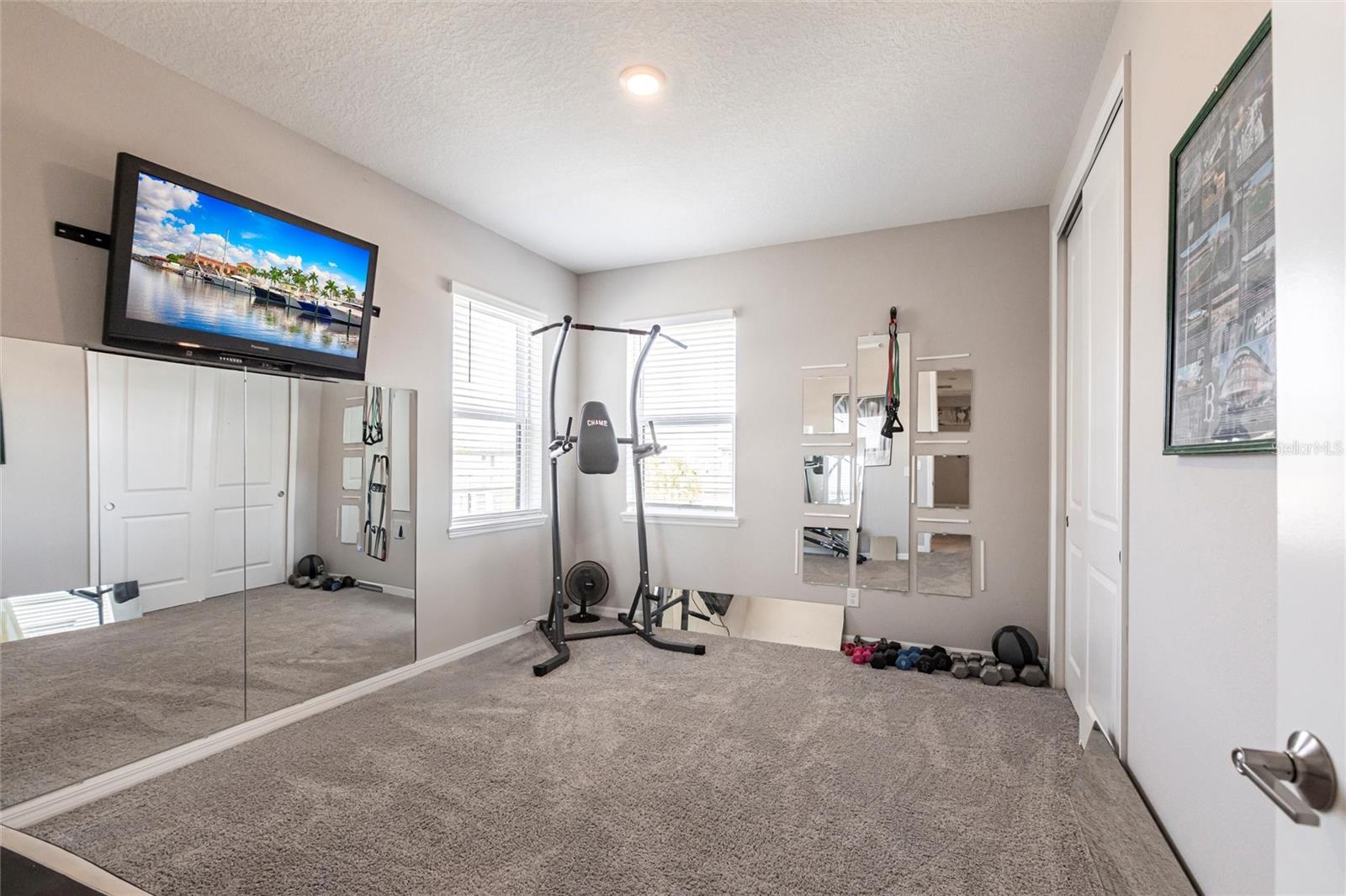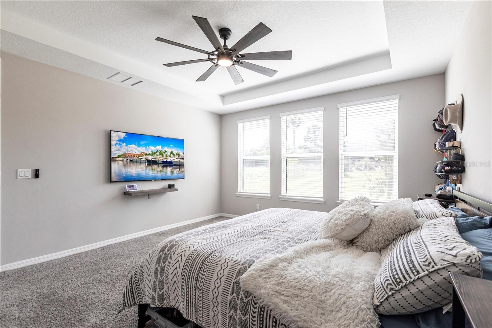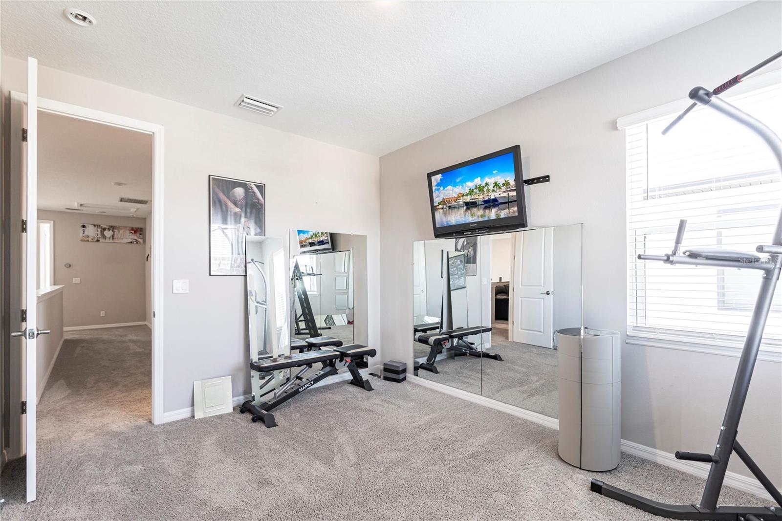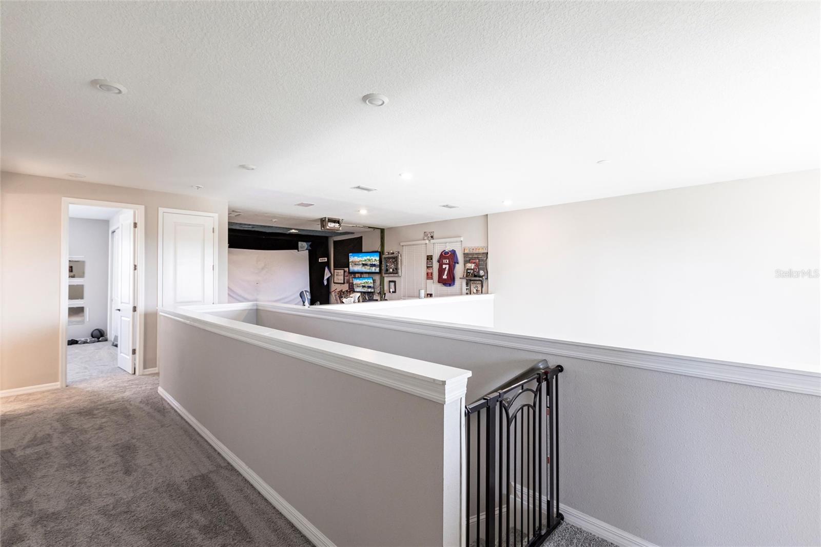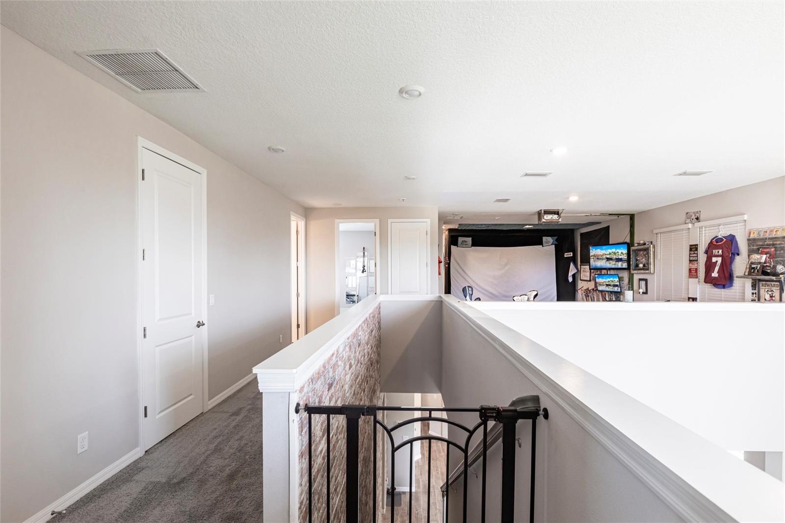 A must see to believe Anastasia at Park East at Azario! The designer kitchen offers a pantry and counter space with the sink overlooking the open dining room and family/living room area. The main level also includes a study with French doors creating the perfect space for your home office. Step outside to the patio right off the family/living room. The primary bedroom is tucked away off the family/living room. The amazing en suite bath features a water closet for privacy and two sink vanities separated by an elegant over-sized shower. Upstairs you will find a mind-blowing space for an indoor golf simulator. Inclusion of golf simulator in purchase price is negotiable. If you are a golfer, you have to see this to believe it! In addition to the golf simulator area, you will find three additional bedrooms on this level, one with a private full bath and the remaining two conveniently located near another full bath.