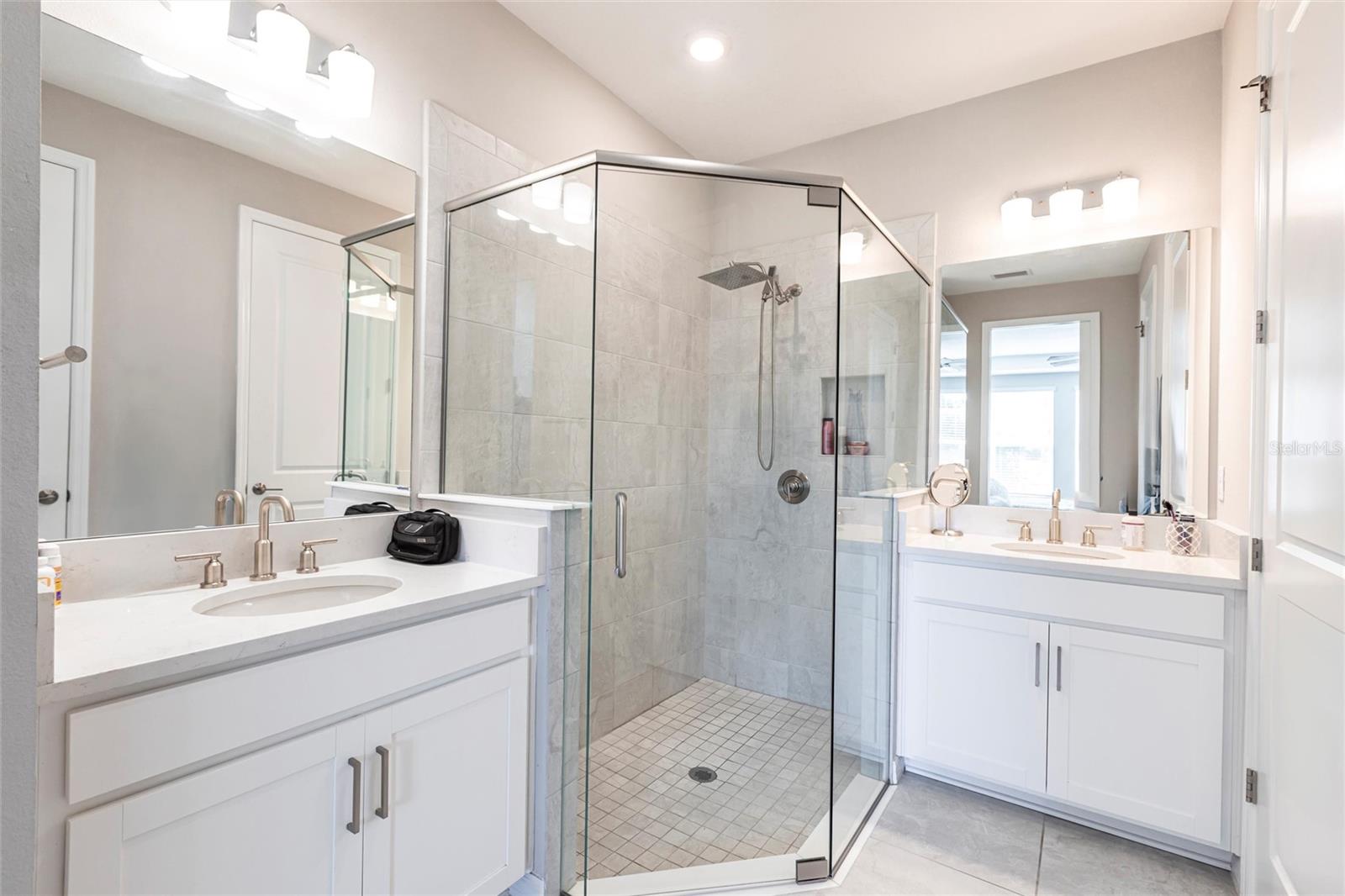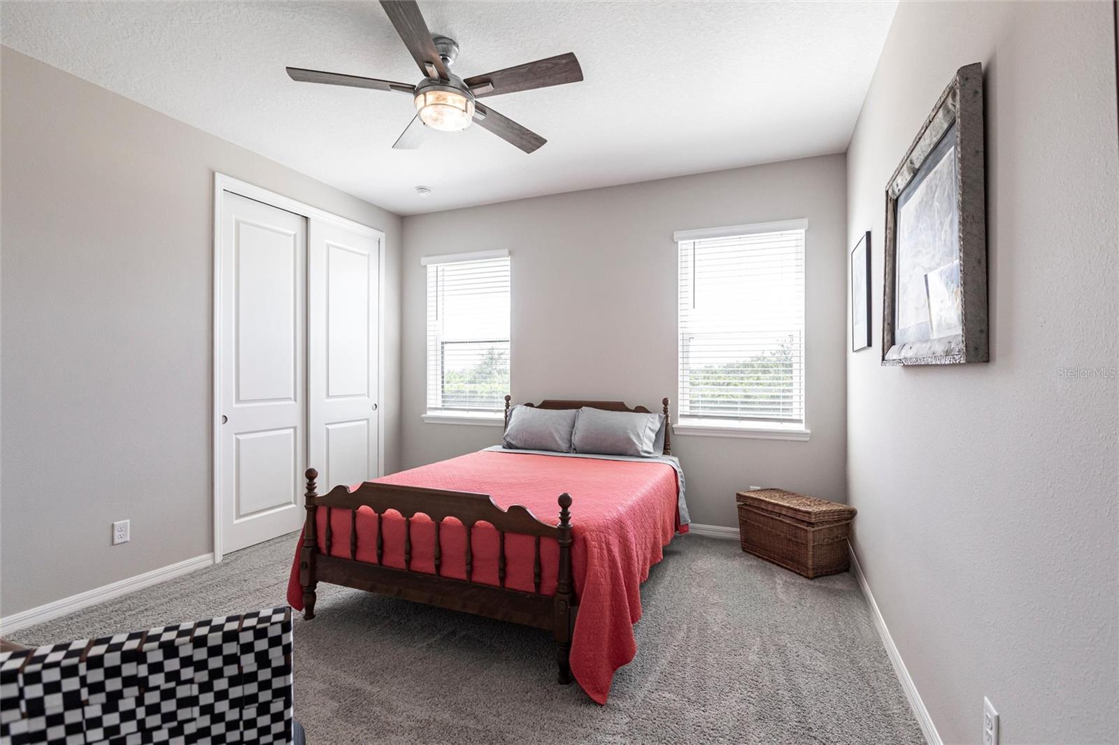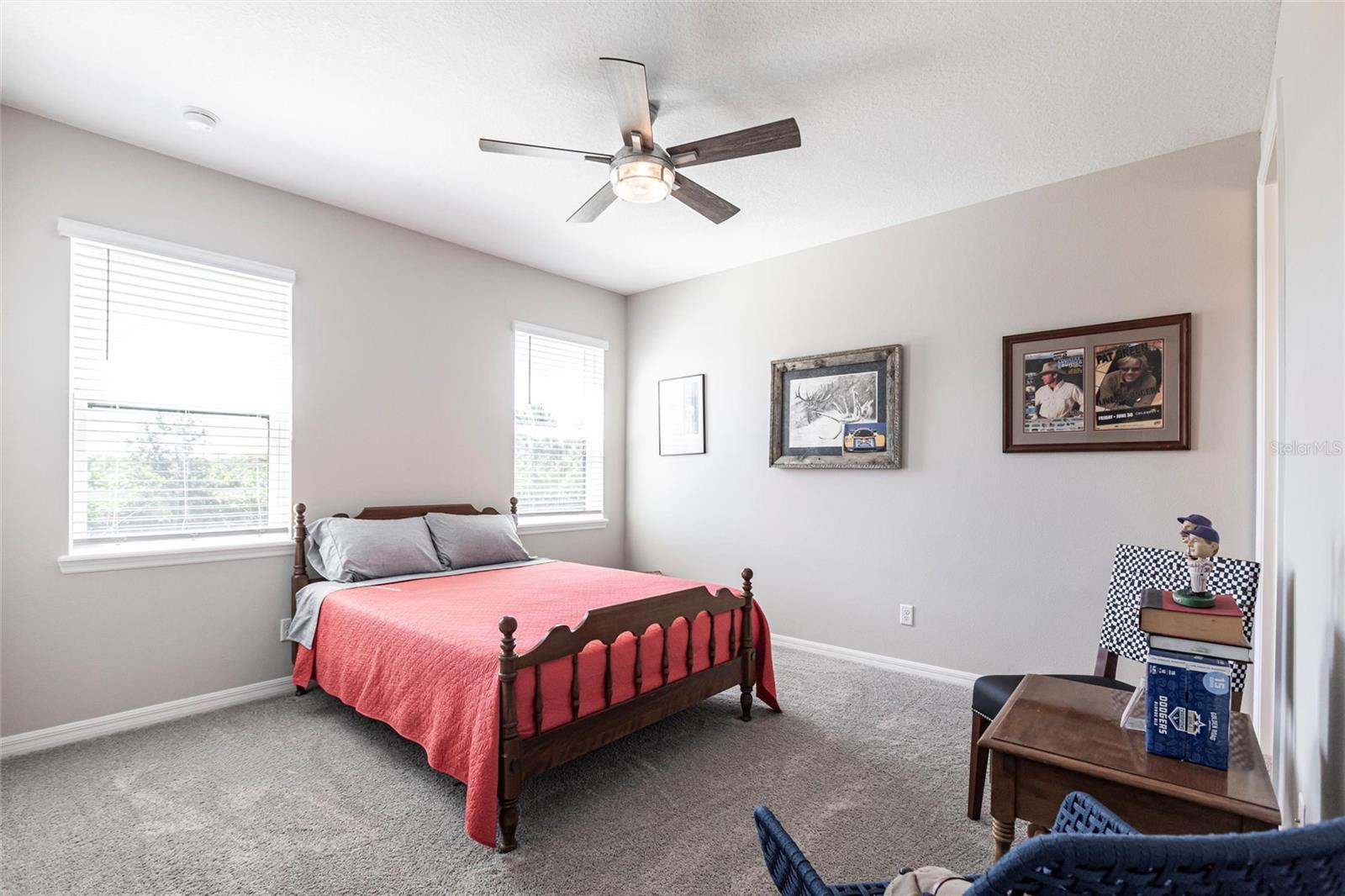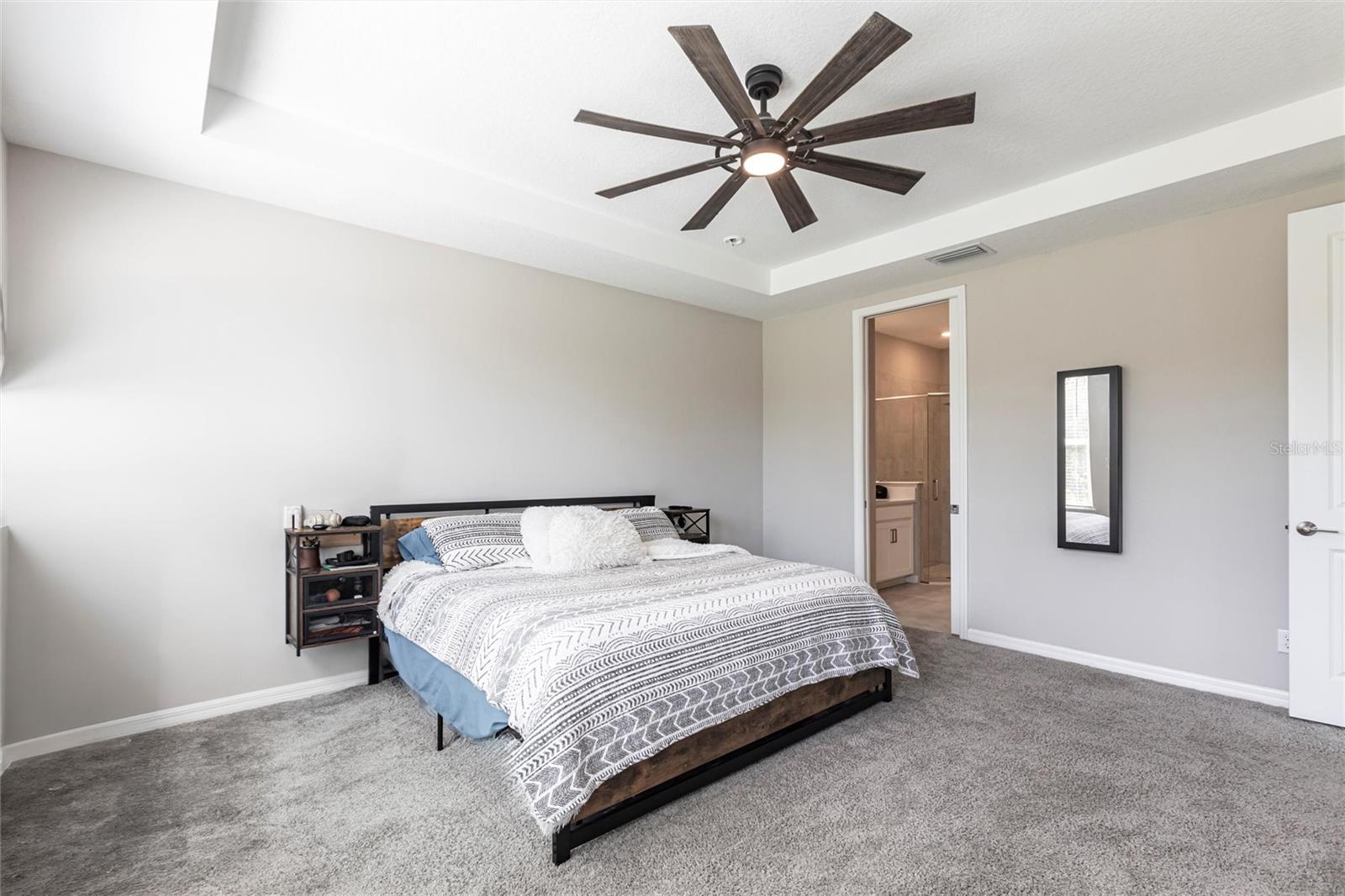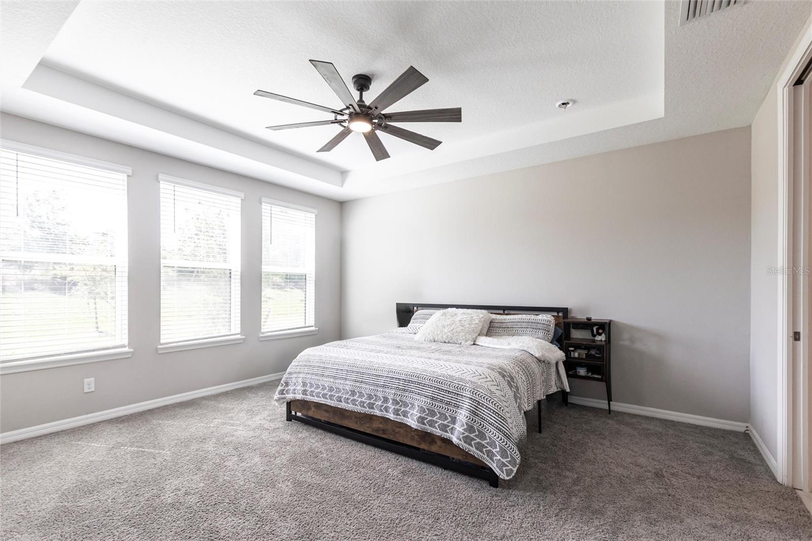 A must see to believe Anastasia at Park East at Azario! The designer kitchen offers a pantry and counter space with the sink overlooking the open dining room and family/living room area. The main level also includes a study with French doors creating the perfect space for your home office. Step outside to the patio right off the family/living room. The primary bedroom is tucked away off the family/living room. The amazing en suite bath features a water closet for privacy and two sink vanities separated by an elegant over-sized shower. Upstairs you will find a mind-blowing space for an indoor golf simulator. Inclusion of golf simulator in purchase price is negotiable. If you are a golfer, you have to see this to believe it! In addition to the golf simulator area, you will find three additional bedrooms on this level, one with a private full bath and the remaining two conveniently located near another full bath.