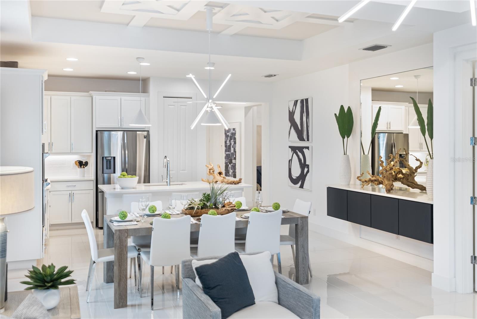 Fall in Love with Paradise: Your Dream Home Adventure Awaits! Former Model Home, Fully Furnished! Get ready to be swept off your feet by the enchanting allure of this contemporary and stylish two-bedroom, two-bathroom masterpiece! Step into a world of wonder as you cross the threshold of this captivating residence, where magic fills the air and every corner tells a story. Your journey begins in a grand entryway that draws you in and leads you to the heart of the home: a stunning kitchen that's as functional as it is beautiful. This is where life's most precious moments unfold, from lively gatherings with loved ones. The expansive layout and top-notch amenities make cooking a joy, while the open-concept design keeps you connected to the fun even when you're playing host. Venture further, and you'll find yourself in a breathtaking great room that flows seamlessly onto a lavish lanai. Here, the lines between indoor and outdoor living blur, and every day feels like an indulgent escape. Picture yourself basking in the sunshine, surrounded by lush greenery, as you let the cares of the world slip away. But the true jewel of this home is the magnificent owner's suite, a private sanctuary designed with your comfort in mind. With a generous walk-in closet and a opulenta-like bathroom, this suite is your personal retreat from the world. Immerse yourself in the luxury of the walk-in shower, or simply enjoy the convenience of dual vanities as you prepare for the day ahead. Paradise isn't just about beauty, though – it's about effortless living. That's why you'll find a perfectly positioned laundry room, a versatile second bedroom and bathroom, and a two-car garage, all designed to make your life easier and more enjoyable. This isn't just a house – it's an experience, a feeling, a journey. It's your very own Paradise, a place where memories are made and dreams come true. Don't let this extraordinary adventure pass you by. Come, explore the enchantment of Paradise today, and let your new chapter begin!