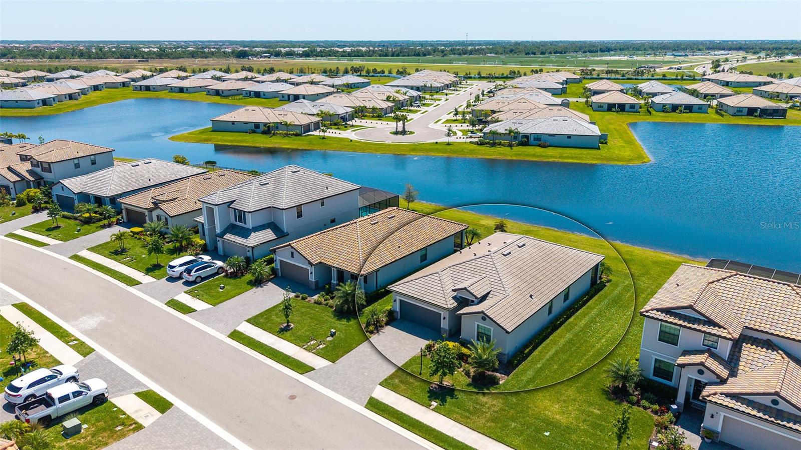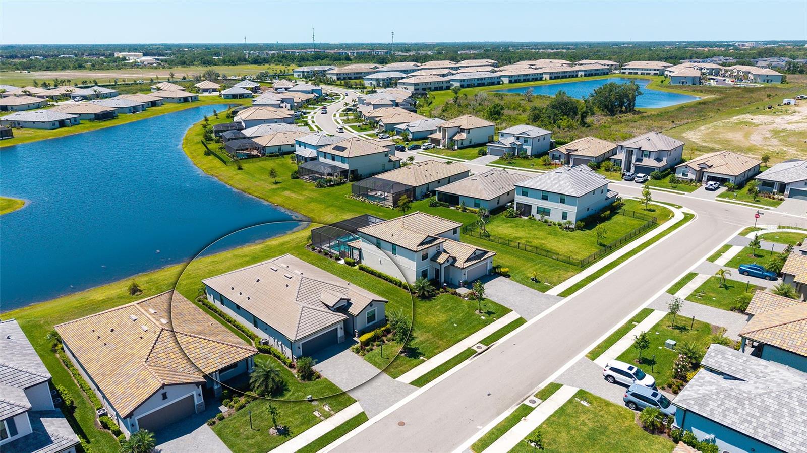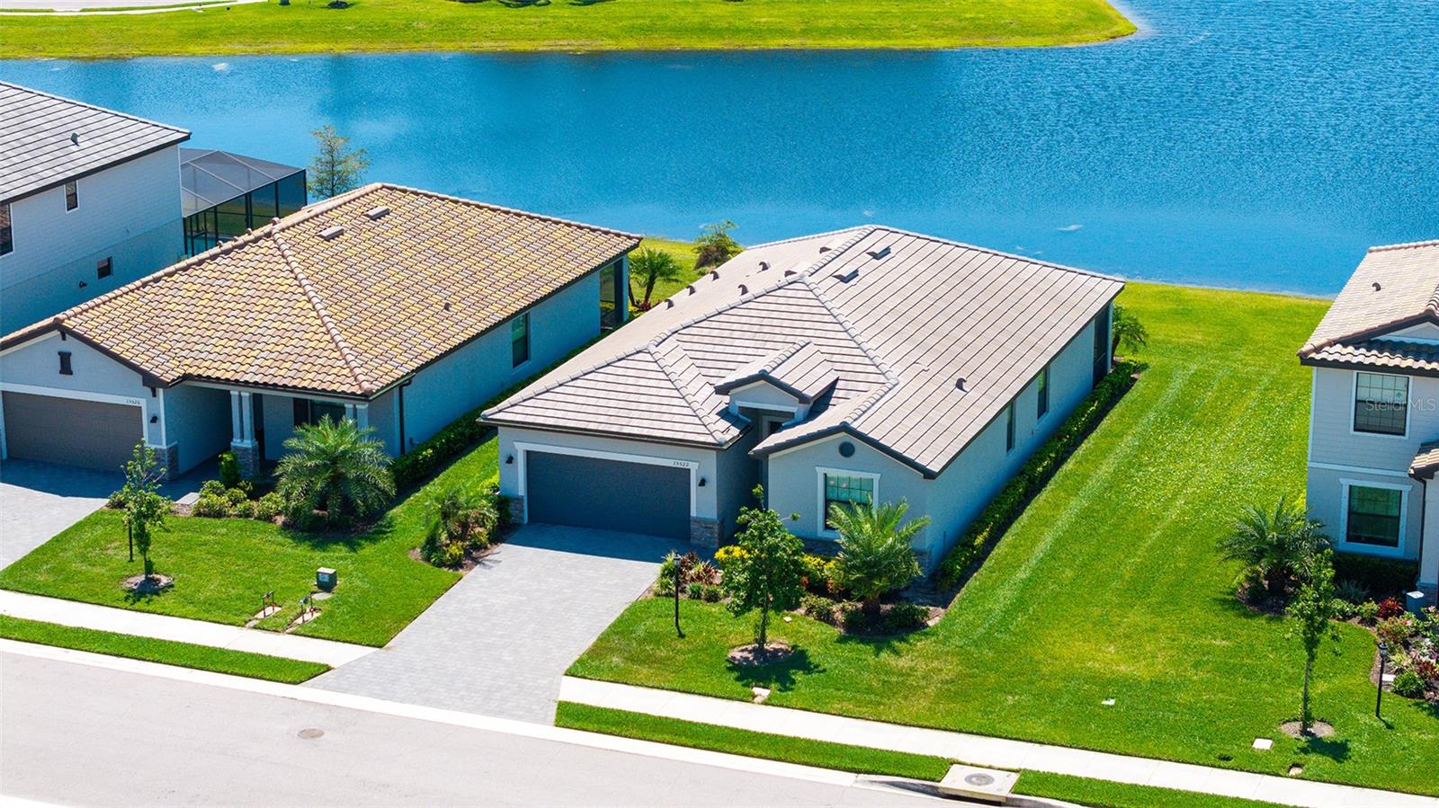 One or more photo(s) has been virtually staged. Discover your dream home in Lorraine Lakes, Lakewood Ranch—a stunning 2022 Trevi Model with mesmerizing lake vistas, offering 4 bedrooms, 3 bathrooms, and a 2-car garage in a gated, resort-style haven. The home presents a sprawling, open-concept design and ensures vibrant, unobstructed lake views that are like an ever-changing work of art—perfectly framed by panoramic windows and sliders that flood the interior with natural light. Step inside to discover a modern, airy layout designed for effortless living. The great room flows seamlessly into a well-appointed kitchen featuring polished stainless-steel appliances and durable quartz countertops, with the dining area completing the layout—all oriented to maximize that picture-perfect waterfront vista. The all-tile flooring gives the home a refined, cohesive look, with clean, functional finishes that elevate the interior. Sliding glass doors lead to a spacious lanai, your private oasis for morning coffee or evening sunsets over the serene lake—a view that feels like a daily vacation. The expansive south-facing backyard offers abundant room for future enhancements, such as a sparkling pool or an enlarged lanai, allowing you to craft your ideal outdoor oasis. The master suite is a tranquil retreat, complete with numerous windows highlighting the water views, a spa-inspired bathroom featuring a roomy shower and elegant quartz countertops, as well as plentiful closet storage. Three additional bedrooms offer flexibility for family, guests, or a home office, with two more full bathrooms—each also appointed with quartz countertops—ensuring comfort and convenience. Outside, the well-kept exterior is complemented by a 2-car garage featuring stylish epoxy floors. For added peace of mind in Florida’s climate, the home comes equipped with hurricane shutters, providing reliable storm protection. Lorraine Lakes elevates your lifestyle with exceptional amenities, rivaling a five-star resort. The grand clubhouse serves as the heart of the community, offering a coffee bar, social rooms, arcade, and meeting spaces. A dedicated lifestyle director enhances the community experience, organizing themed nights, holiday events, bingo, and poker for endless entertainment and connection. Dive into the luxury pools, unwind at the poolside bar, or let the kids enjoy the splash park. Stay active with a state-of-the-art fitness center, aerobics studio, sauna, and courts for tennis, pickleball, basketball, volleyball, and bocce ball. Golf enthusiasts will love the putting green, while scenic walking trails and a playground invite outdoor adventures—all set against the backdrop of lush preserves and sparkling lakes. Located in the heart of Lakewood Ranch, a top-ranked master-planned community, this home is minutes from Lakewood Ranch Main Street’s boutiques and dining, University Town Center’s upscale shopping, and the Premier Sports Campus. Pristine Gulf Coast beaches like Siesta Key are just a short drive away, blending small-town charm with coastal convenience. With top-rated schools (B.D. Gullett Elementary, Mona Jain Middle, Lakewood Ranch High) and included HOA perks like lawn maintenance, cable, and internet, every detail is designed for ease and enjoyment. This move-in-ready gem with its striking waterfront setting won’t last long. Schedule your private tour today to experience the magic of Lorraine Lakes living at its finest!