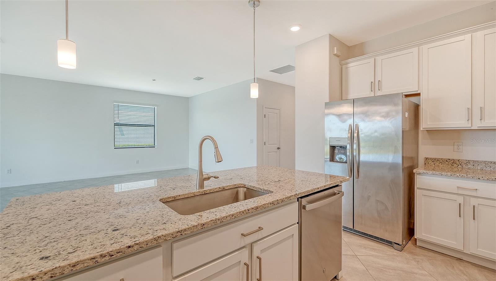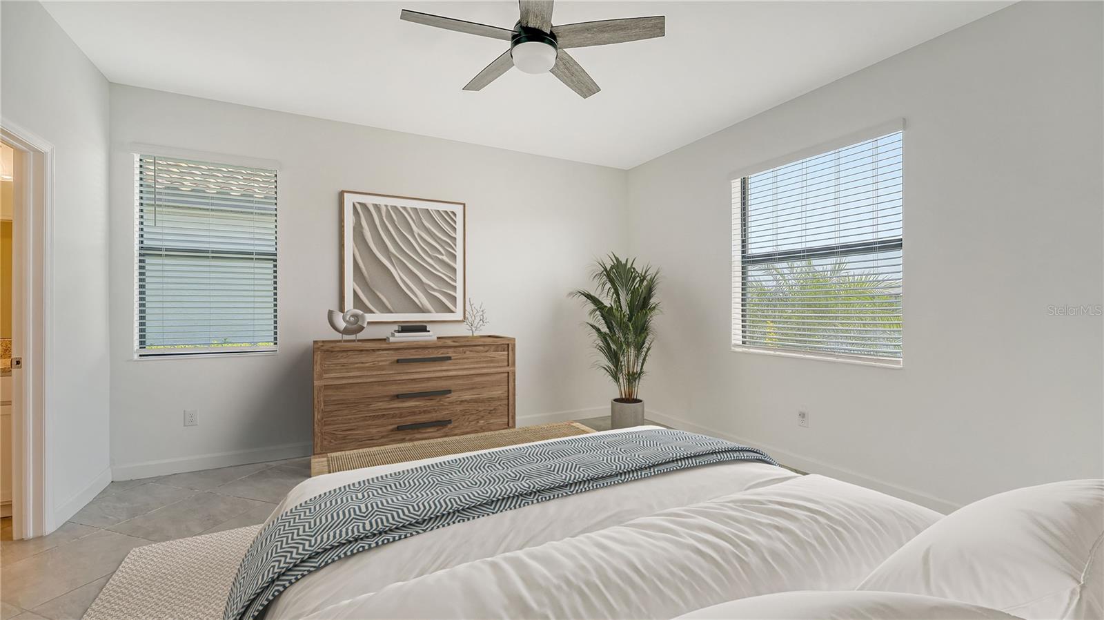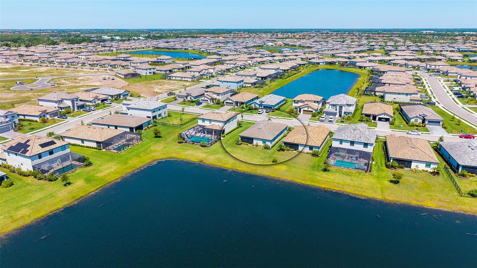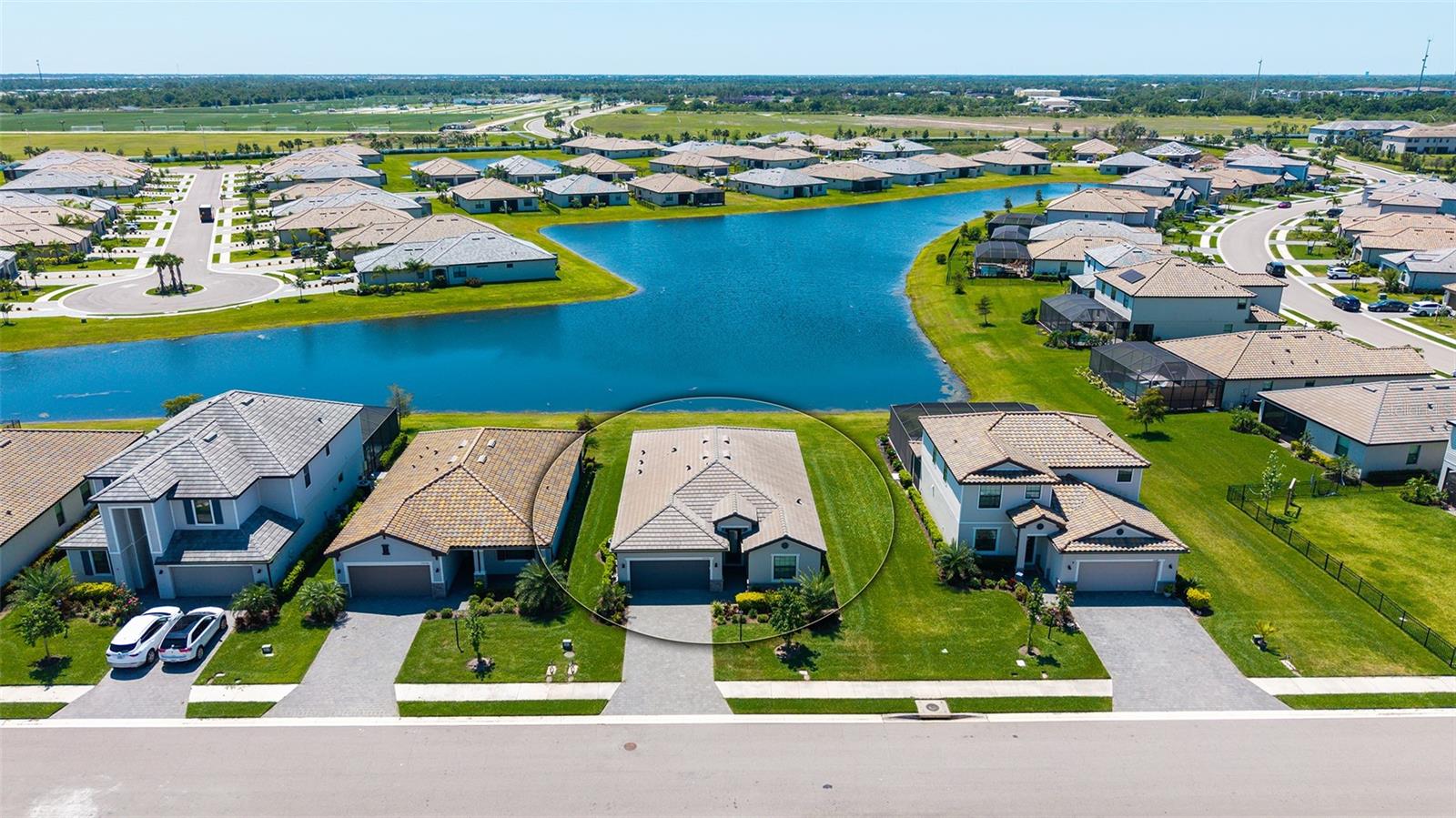 One or more photo(s) has been virtually staged. Discover your dream home in Lorraine Lakes, Lakewood Ranch—a stunning 2022 Trevi Model with mesmerizing lake vistas, offering 4 bedrooms, 3 bathrooms, and a 2-car garage in a gated, resort-style haven. The home presents a sprawling, open-concept design and ensures vibrant, unobstructed lake views that are like an ever-changing work of art—perfectly framed by panoramic windows and sliders that flood the interior with natural light. Step inside to discover a modern, airy layout designed for effortless living. The great room flows seamlessly into a well-appointed kitchen featuring polished stainless-steel appliances and durable quartz countertops, with the dining area completing the layout—all oriented to maximize that picture-perfect waterfront vista. The all-tile flooring gives the home a refined, cohesive look, with clean, functional finishes that elevate the interior. Sliding glass doors lead to a spacious lanai, your private oasis for morning coffee or evening sunsets over the serene lake—a view that feels like a daily vacation. The expansive south-facing backyard offers abundant room for future enhancements, such as a sparkling pool or an enlarged lanai, allowing you to craft your ideal outdoor oasis. The master suite is a tranquil retreat, complete with numerous windows highlighting the water views, a spa-inspired bathroom featuring a roomy shower and elegant quartz countertops, as well as plentiful closet storage. Three additional bedrooms offer flexibility for family, guests, or a home office, with two more full bathrooms—each also appointed with quartz countertops—ensuring comfort and convenience. Outside, the well-kept exterior is complemented by a 2-car garage featuring stylish epoxy floors. For added peace of mind in Florida’s climate, the home comes equipped with hurricane shutters, providing reliable storm protection. Lorraine Lakes elevates your lifestyle with exceptional amenities, rivaling a five-star resort. The grand clubhouse serves as the heart of the community, offering a coffee bar, social rooms, arcade, and meeting spaces. A dedicated lifestyle director enhances the community experience, organizing themed nights, holiday events, bingo, and poker for endless entertainment and connection. Dive into the luxury pools, unwind at the poolside bar, or let the kids enjoy the splash park. Stay active with a state-of-the-art fitness center, aerobics studio, sauna, and courts for tennis, pickleball, basketball, volleyball, and bocce ball. Golf enthusiasts will love the putting green, while scenic walking trails and a playground invite outdoor adventures—all set against the backdrop of lush preserves and sparkling lakes. Located in the heart of Lakewood Ranch, a top-ranked master-planned community, this home is minutes from Lakewood Ranch Main Street’s boutiques and dining, University Town Center’s upscale shopping, and the Premier Sports Campus. Pristine Gulf Coast beaches like Siesta Key are just a short drive away, blending small-town charm with coastal convenience. With top-rated schools (B.D. Gullett Elementary, Mona Jain Middle, Lakewood Ranch High) and included HOA perks like lawn maintenance, cable, and internet, every detail is designed for ease and enjoyment. This move-in-ready gem with its striking waterfront setting won’t last long. Schedule your private tour today to experience the magic of Lorraine Lakes living at its finest!