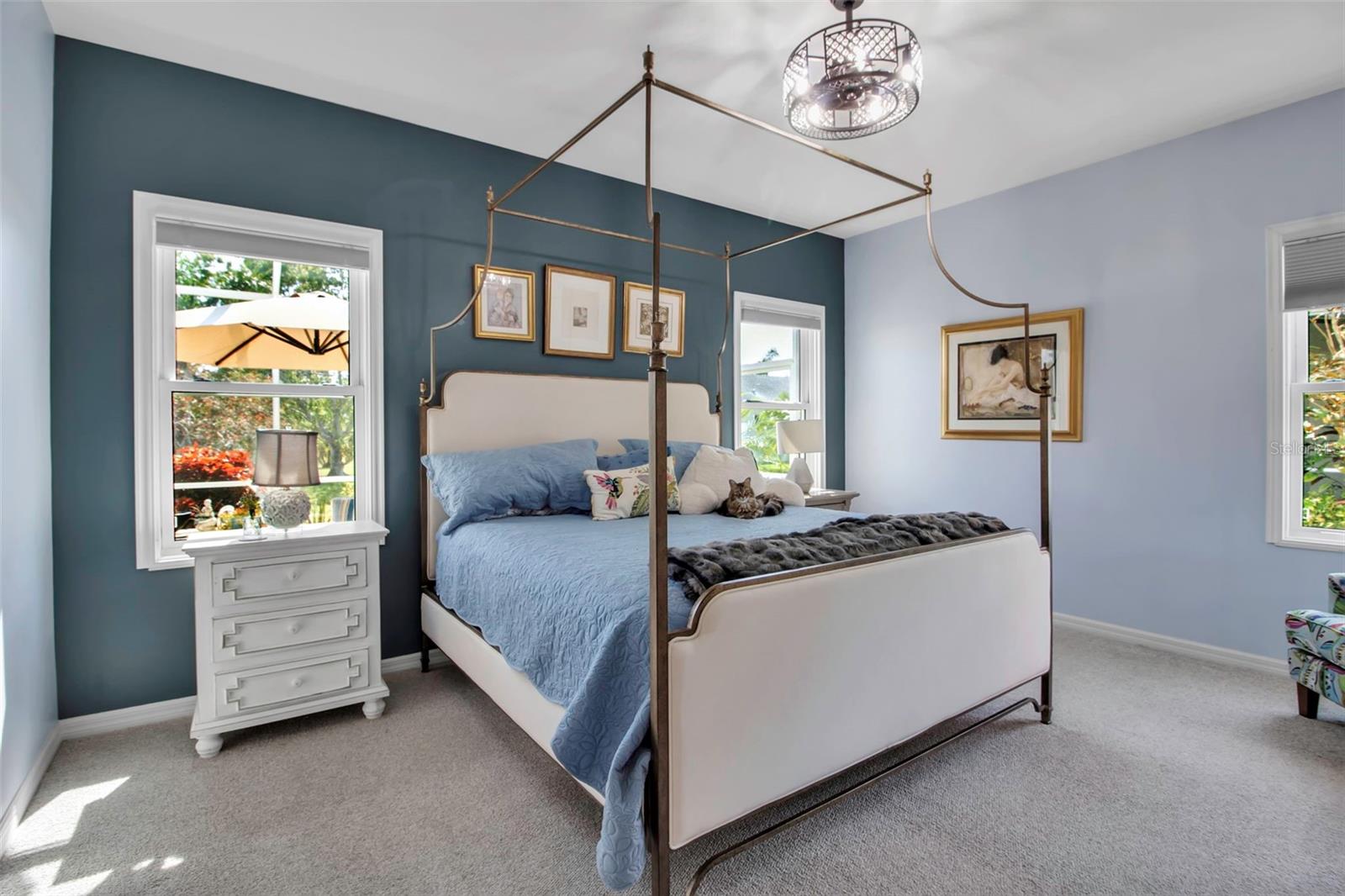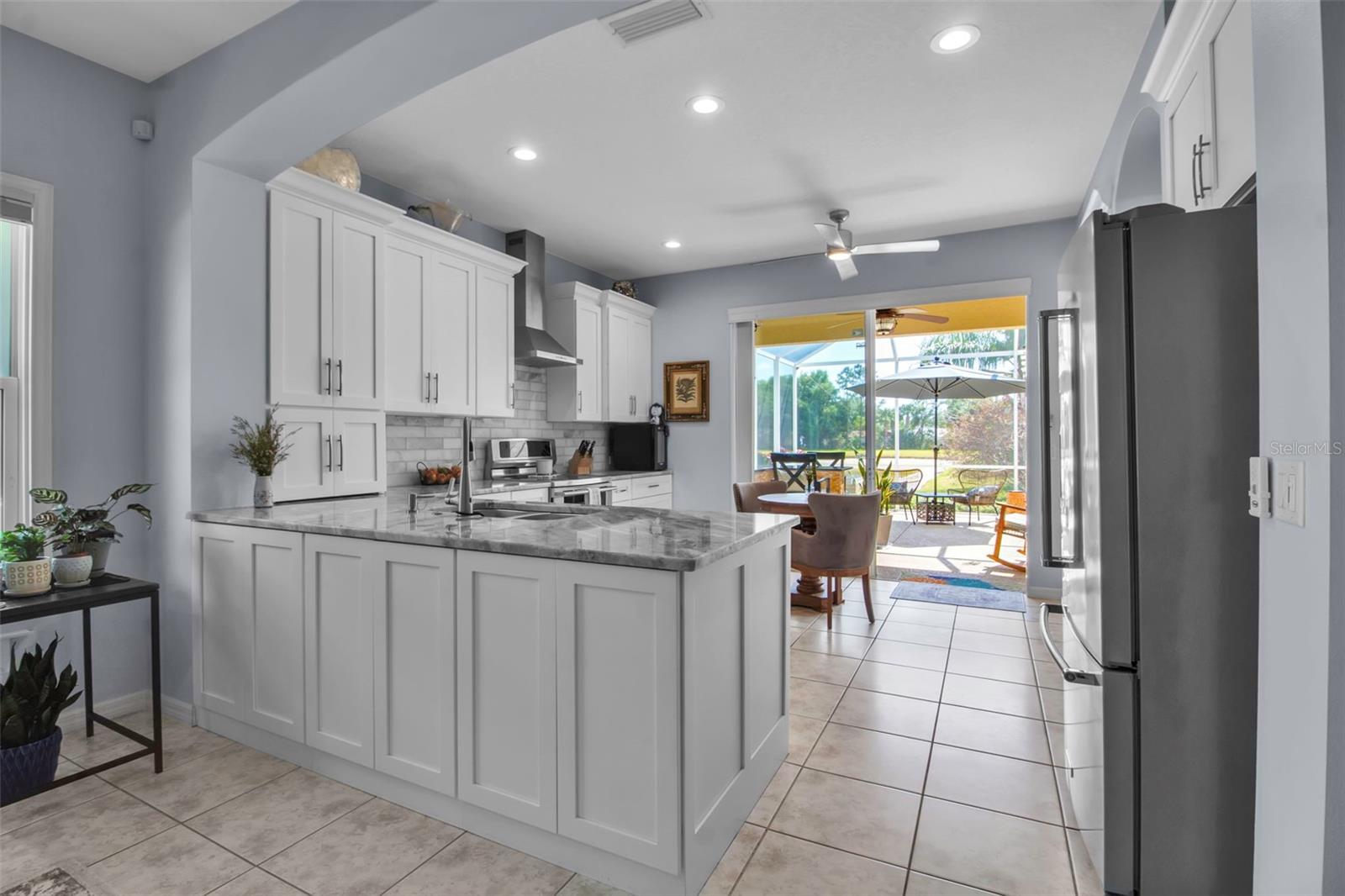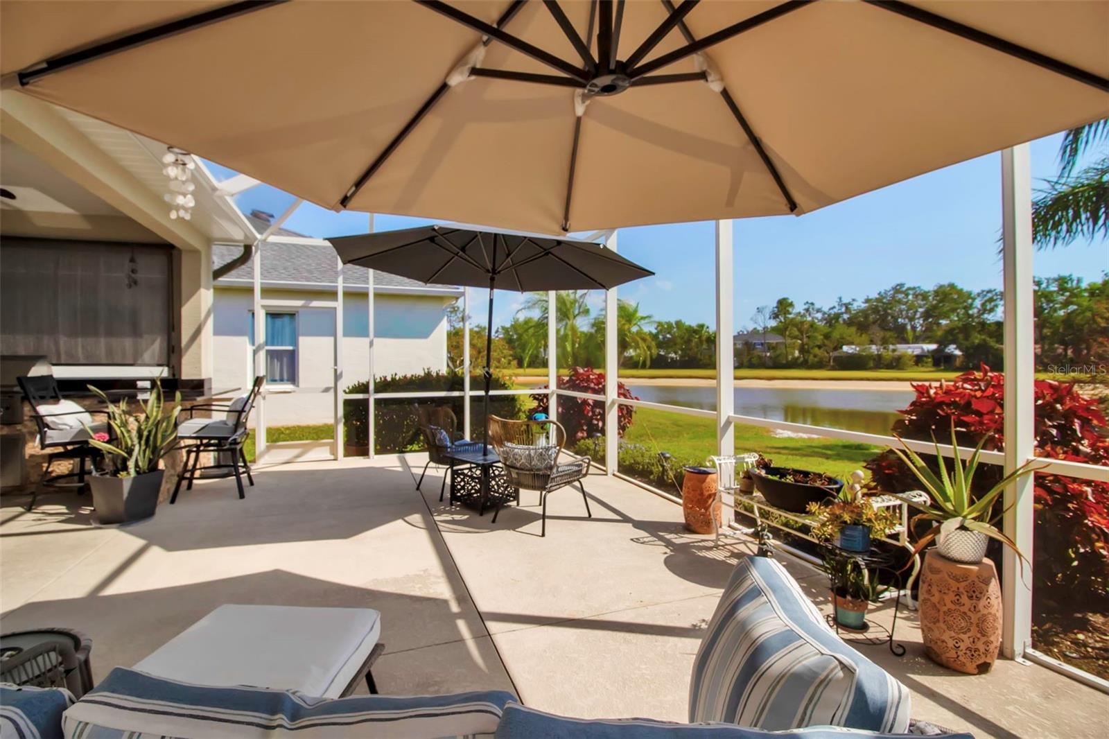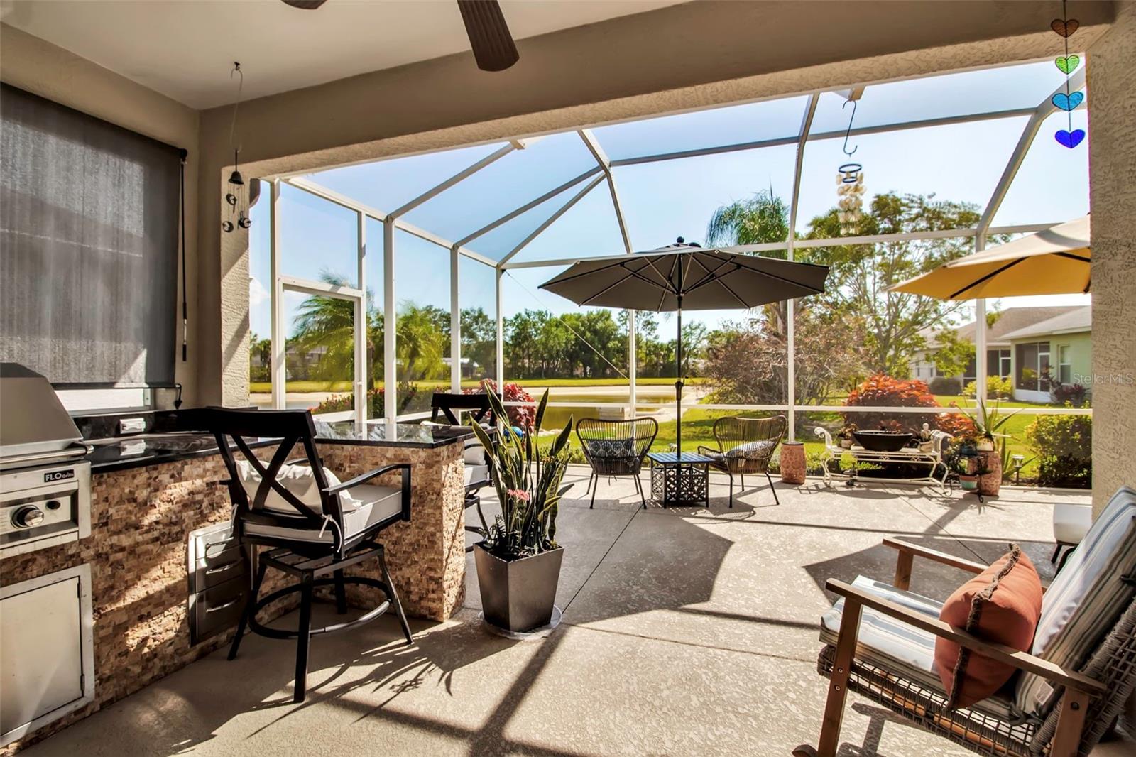 New to the home are IMPACT WINDOWS, a whole house water filtration system and a stunning kitchen featuring 42” soft close cabinets, DOLOMITE countertops, new appliances, and a thoughtfully planned pantry. The new front storm and screen door welcomes lots of light and cool breezes. Do not let the square footage fool you! This home lives large. Storage galore with custom closets. All rooms have Bali Honeycomb shades and new ceiling fans. Outside, a huge extended screen lanai and patio area for the Florida lifestyle we all love with the added benefit of a built-in granite topped outdoor kitchen. Located on a cul-de-sac, in the center of the sweetest boutique community, this gorgeously landscaped home presents top tier finishing offering safety and luxury. River Sound is a tiny boutique community behind a gate located close to everything including the Costco shopping center! Transportation, medical facilities, schools, shopping, dining, and world class beaches are incredibly convenient. Perfect for year-round or winter use, this home is a true delight.
