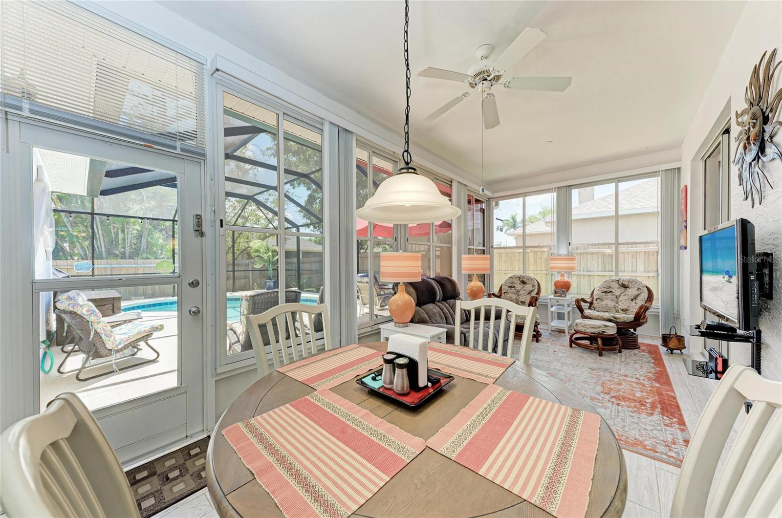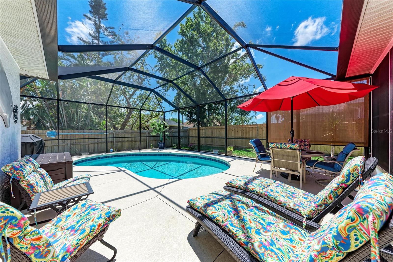Welcome to this stunning, move-in ready home located in the desirable Creekwood subdivision. Offering low HOA fees and a host of community amenities—including a pool, tennis courts, basketball and volleyball courts—this home blends comfort, convenience, and Florida charm. Enjoy your own private oasis with a screened-in, heated saltwater pool, ideal for relaxing or entertaining year-round. The exterior also features a paver driveway, generator transfer switch, and a newer roof (replaced just 7 years ago). The garage floor has been finished for added utility and style, and the home has been outfitted with hurricane shutters for added protection and peace of mind. Inside, you’ll love the upgraded kitchen featuring custom cabinets, beautiful countertops, and thoughtful extras like pull-out shelves and soft-close drawers—perfect for both everyday living and entertaining. With 1,931 square feet living space, including a bright and versatile 222sq ft Florida room. The home boasts a spacious, open layout with abundant natural light and quality finishes throughout. The kitchen flows into a cozy family room featuring a modern electric fireplace mounted on the wall, adding warmth and ambiance with the push of a button. Don’t miss this opportunity to own a meticulously cared-for home in one of Bradenton’s most well-kept neighborhoods. Schedule your private tour today!