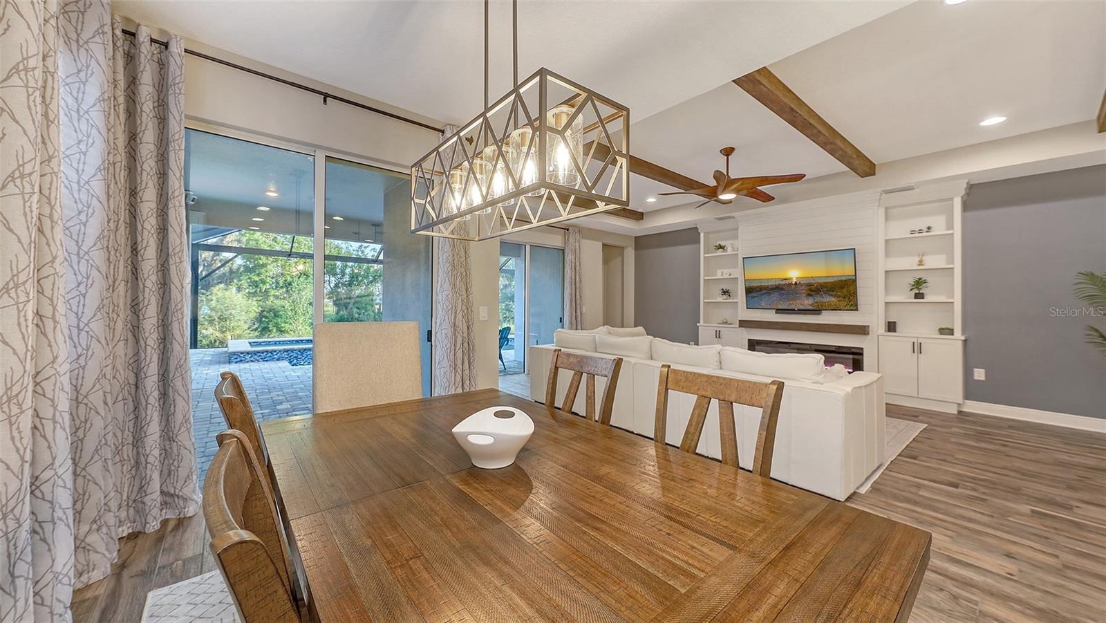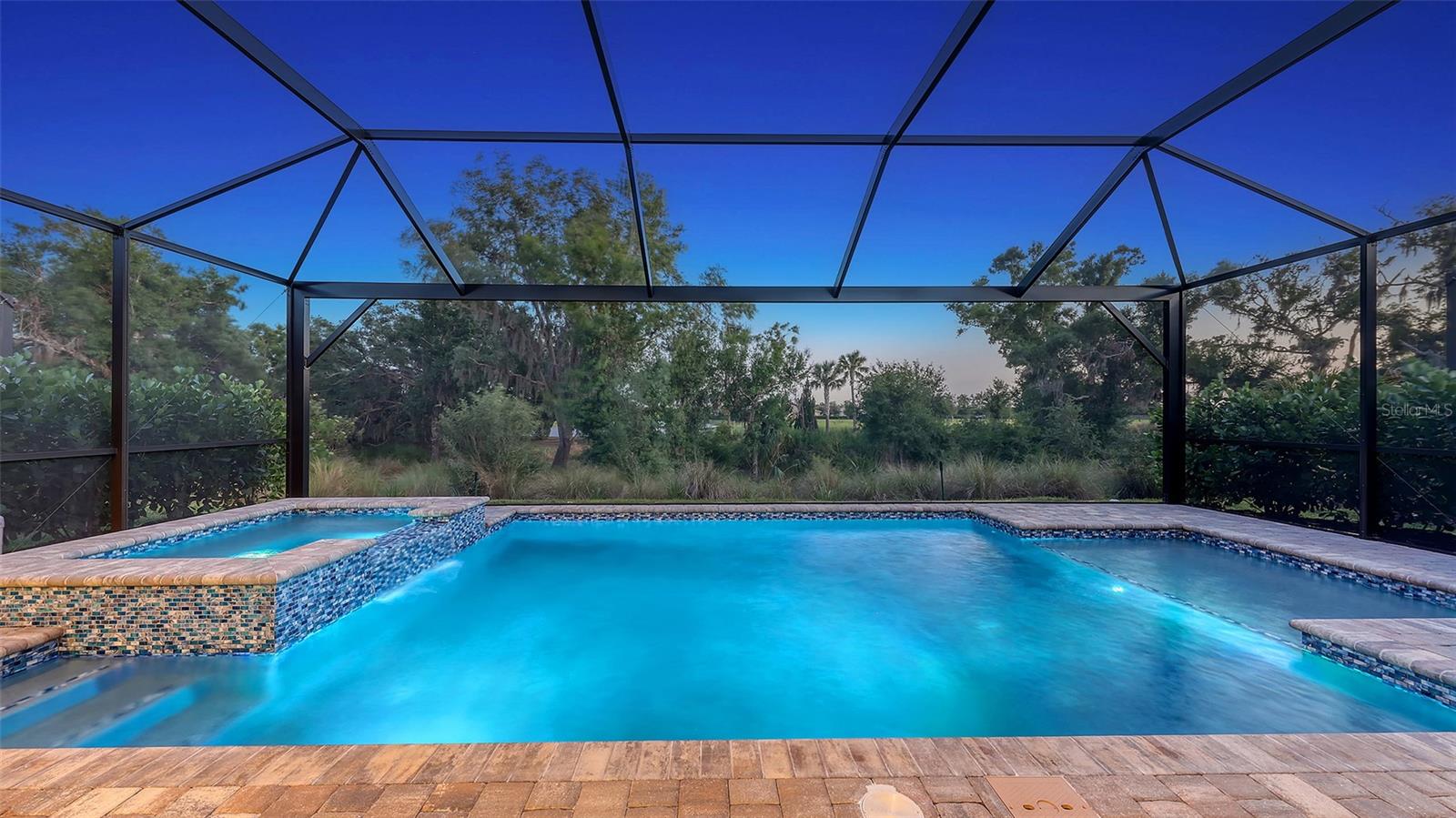Located in the heart of Lakewood Ranch, within the exclusive, gated enclave of Sweetwater, this exceptional custom home offers the perfect blend of luxury and comfort. Surrounded by scenic landscapes, this natural gas community features tile roofs, paver driveways, tree-lined streets, and classic lampposts that create a welcoming, upscale ambiance to the neighborhood. From the moment you step inside the residence, you’re greeted with a sense of grandeur. Tray ceilings adorned with rich-toned beams add architectural depth and warmth, while 8-foot doors throughout the home enhance the spacious, elevated feel. The gourmet kitchen is a chef’s dream—thoughtfully designed with a large center island ideal for meal prep, a generous walk-in pantry, and gleaming white quartz countertops. Additional highlights include a gas cooktop, ceiling-height vent hood, elegant tile backsplash, farmhouse apron sink, wine refrigerator, and a brand new LG refrigerator, all coming together to create a space that is both functional and beautifully finished. Flowing seamlessly from the kitchen, the spacious living and dining areas are framed by two sets of sliding glass doors that open to a breathtaking outdoor retreat, perfect for entertaining. The expansive deck features a private heated saltwater pool and a serene waterfall spa, ideal for hosting guests, all enclosed by a panoramic screen that showcases stunning views of the surrounding preserve and water. The luxurious primary suite features two walk-in closets and a spa-like ensuite bathroom complete with dual sinks, floor-to-ceiling Carrera tile, and a pebble-stone shower floor for a touch of natural elegance. Two additional spacious guest bedrooms and a versatile bonus room provide ample space for family, guests, or a home office. A stylish powder bath, a second full bathroom, and a spacious laundry room complete the well thought out floor plan. Upgraded lighting and ceiling fans throughout, along with custom shelving in the living room, add the finishing touches to this truly stunning home. Sweetwater at Lakewood Ranch offers exceptional amenities. Residents can enjoy access to a heated resort style pool, 24 hour fitness center, playground, basketball court, pickleball courts, indoor and outdoor social spaces, and an ampiteatre. Best of all, yard maintenance is included. “A” rated schools, miles of trails, world class shopping and dining, and the gulf coast beaches are all at your fingertips. Come live the Florida lifestyle!