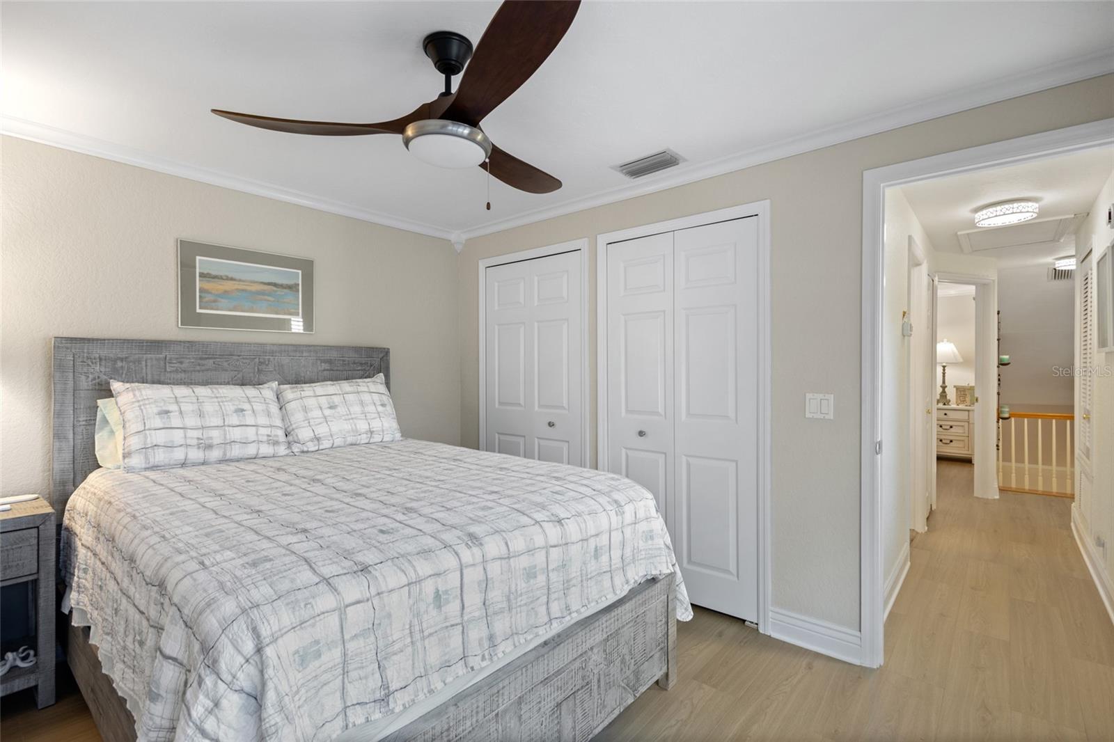 Impeccably maintained pool home with premium upgrades throughout! From the moment you arrive, you'll notice the exceptional care and attention to detail that sets this home apart. The beautifully landscaped front yard is designed for low maintenance, offering a clean, welcoming look year-round. Step into your own private oasis in the fenced backyard, featuring a resurfaced (2024) inground pool with a premium Pebble Tech finish—backed by a lifetime warranty. The pool is also heated by an electric heat pump, ensuring year-round enjoyment. Other key structural upgrades include: new asphalt roof (2020), York 3.5-ton AC system installed in 2021 (with parts and labor warranty through 2031), additional upstairs AC installed in 2024, commercial grade water heater (2021), and extra R22 insulation added over existing R30 for enhanced energy efficiency. The storm-resistant, glass/screen-enclosed lanai (added in 2015) provides extra living space—perfect for all seasons, rain or shine. The kitchen is a chef's dream with all-wood custom cabinetry, granite countertops, tile backsplash and new Bosch appliances (2024). The recently remodeled primary bathroom features a luxurious Roman walk-in shower, double vanities with quartz countertops and Toto bidet/toilet for added comfort and elegance. Beautiful hardwood floors in the family room, formal living, and main-level primary bedroom and luxury vinyl plank flooring upstairs, (where you'll also enjoy crown molding and a fully updated bath). Plantation shutters adorn most windows. The oversized, side-entry 3-car garage includes built-in cabinets, a workbench, and 150 sq. ft. of overhead storage—ideal for hobbyists or extra organization. This home truly has it all and is move-in ready for you and your family!
