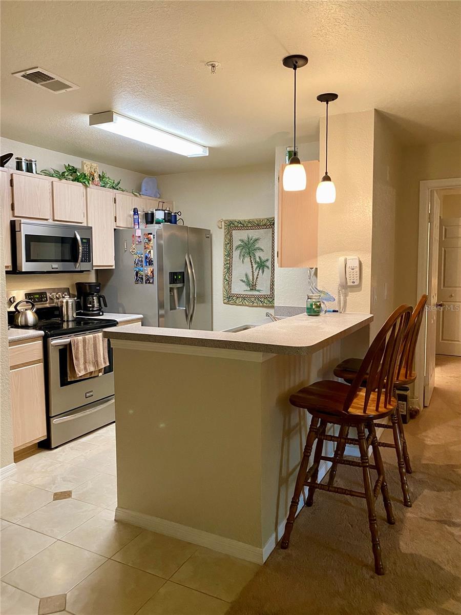 HIGHLY MOTIVATED SELLER - Lowest priced unit with garage! Welcome the The Village of Town Park located just east off University Parkway and minutes from award winning Lakewood Ranch, University Town Center (UTC) where there is endless shopping, dining, recreation, entertainment, schools, and medical facilities. This cozy lower level two bedroom two bath condo is the perfect place to call home, weather your full-time or seasonal resident. The home features open concept with combination living, dining, and kitchen area. Kitchen is equipped with breakfast bar, all stainless steel appliances, and large pantry closet. Off the living area is a private screen in covered patio with locked storage closet. Bedrooms are on opposite sides of the condo, providing privacy for everyone. Each bedroom has large walk-in closet and oversized window. Primary bedroom feature en-suite bathroom with tub & shower combo. In-unit laundry closet houses a full size washer and dryer and more storage space. Additional large storage space under the stairwell has a keyed lock access and could be used as a small office or workspace. If that is not enough storage just steps away from the front door is your own private garage complete with power, automatic garage door opener and keypad entry. Brand new A/C July 2023 and 2020 Water Heater. Amazing community amenities like clubhouse, resort style swimming pool and spa surrounded with paver patio, fitness center, volley ball court, playground area, lakes with sidewalk and benches, picnic areas with BBQ grills and pet walking stations. This community and the surrounding area has so much you truly must see to appreciate.