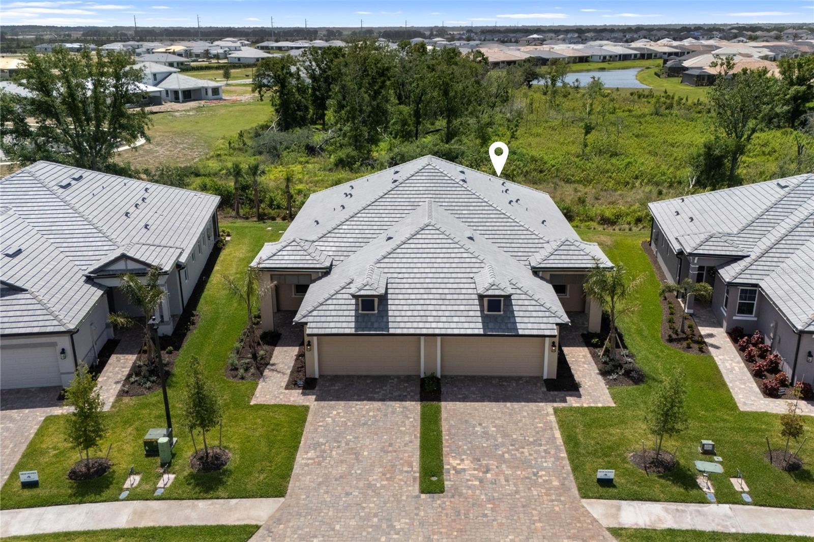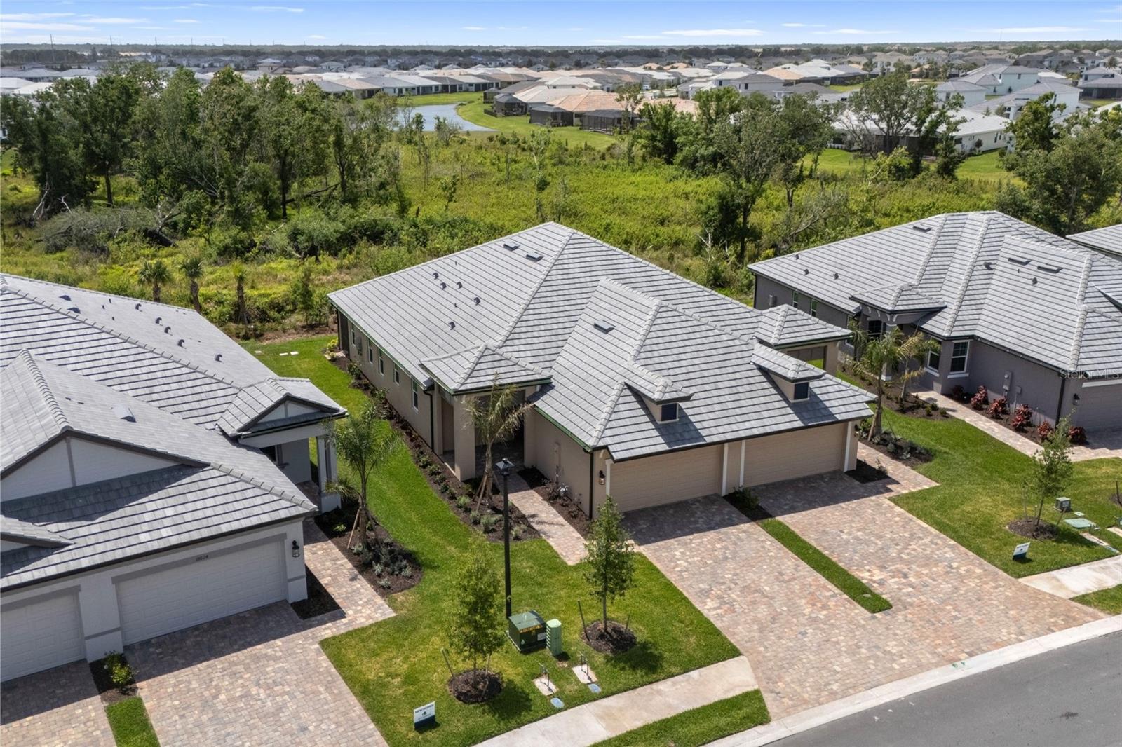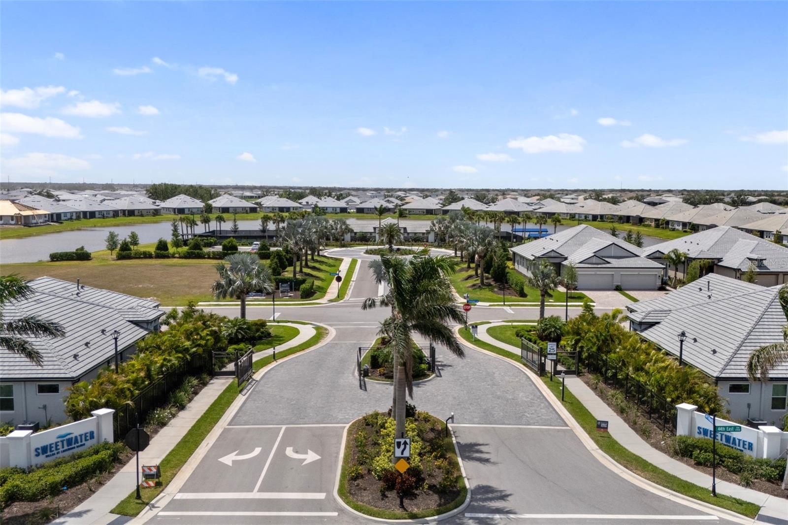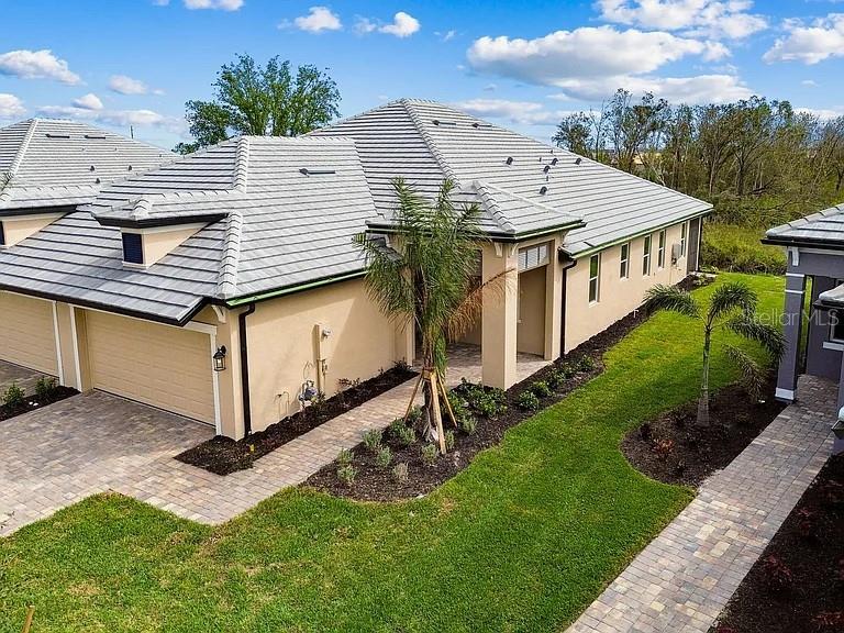 Discover the epitome of Florida living at its finest in this stunning Topaz villa, a gem nestled in the heart of southeastern Manatee County. As you step into the extended entryway, you're greeted by a space that's perfect for enjoying your morning coffee, setting the tone for a home that's both inviting and functional. The floorplan unfolds with two generous bedrooms, two beautifully appointed bathrooms, a versatile den, and a convenient two-car garage. The den, tucked away for privacy, offers optional doors, making it an ideal space for a home office or a quiet reading nook. At the heart of the home, the kitchen is a chef's dream, boasting a large center island, exquisite cabinetry, expansive countertops, and a pantry for additional storage. The open-concept design seamlessly into the dining area and the spacious great room, where sliding glass doors open to reveal a covered lanai, blurring the lines between indoor and outdoor living. The owner's suite is a true retreat, complete with a luxurious bathroom featuring dual vanities, a walk-in shower, and a spacious walk-in closet. The second bedroom and full bathroom are located at the front of the villa, offering convenience and comfort for guests or family. A well-placed utility room ensures everything is within easy reach. Situated in a gated, maintenance-free community, this villa is surrounded by the natural beauty of Florida's landscapes. As a resident of Sweetwater, you'll enjoy exclusive access to an amenity center that includes a heated pool, playground, multi-purpose sport court, pickleball courts, a 24-hour fitness room, and a social hall. Villa residents also have their own amenity center with a pool, fitness center, pickleball courts, social hall, and bocce ball. The community's festival lawn and amphitheater are perfect for afternoon picnics and night-time movie screenings, ensuring that the fun never ends. This is more than just a home; it's a lifestyle. Welcome to your dream abode in the Topaz villa.