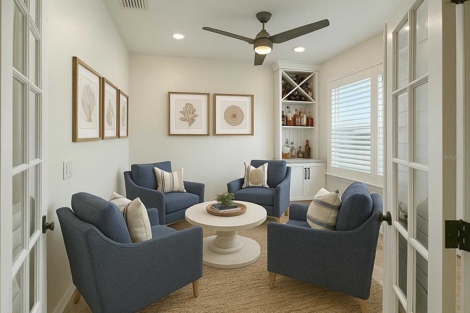One or more photo(s) has been virtually staged. NEW PRICE on this well-appointed Martin Ray model nestled in the popular 55+ gated community of Del Webb at Lakewood Ranch rivals new construction without the wait for all of the amenities. Enjoy the Florida lifestyle and have complete peace of mind - you can be storm ready within 5 minutes - WHOLE HOUSE GENERATOR and SURGE PROTECTION, IMPACT WINDOWS, KEFLON SHADES on the patio that electrically roll down in seconds. This 1,964 sq ft single-family home offers 2 bedrooms, 2 bathrooms, and a versatile den, all designed with comfort and style in mind. You are welcomed inside through a complete screened-in front porch lanai. The home's open-concept layout features include built-ins and custom accent walls, a gourmet kitchen equipped with stainless steel gas appliances, stone countertops, a spacious island, and a walk-in pantry, perfect for culinary enthusiasts. Porcelain tile laid on the diagonal enhances the main living areas, while the den provides a flexible space for a home office or guest room. Brand new flooring in all the bedrooms, no carpet. Step outside to a large, screened lanai that overlooks a serene water view, creating an ideal setting for relaxation or entertaining guests. The property also includes a 2-car garage with additional space for a golf cart, catering to the active lifestyle of the community. Residents of Del Webb at Lakewood Ranch enjoy access to a wealth of amenities, including a resort-style pool, tennis and pickleball courts, bocce ball, a state-of-the-art fitness center, and a full-service restaurant. The community's vibrant social scene is supported by a full-time activities director, ensuring a dynamic and engaging lifestyle. Experience the perfect blend of luxury and leisure in this exceptional home.