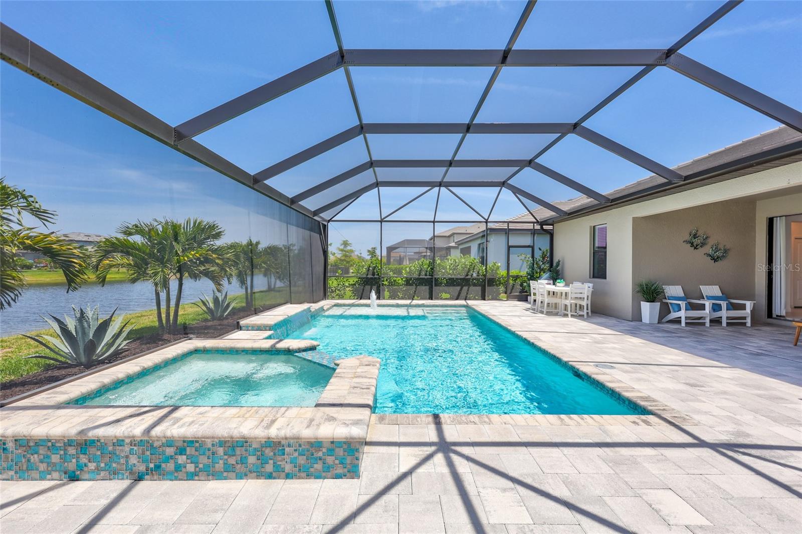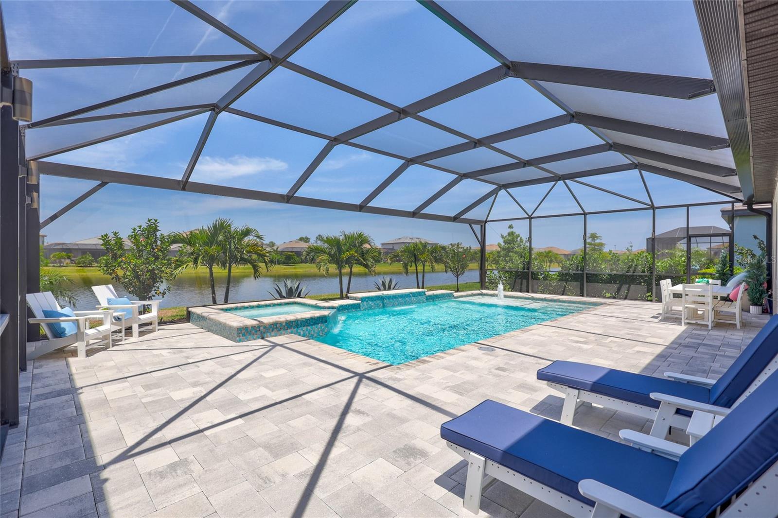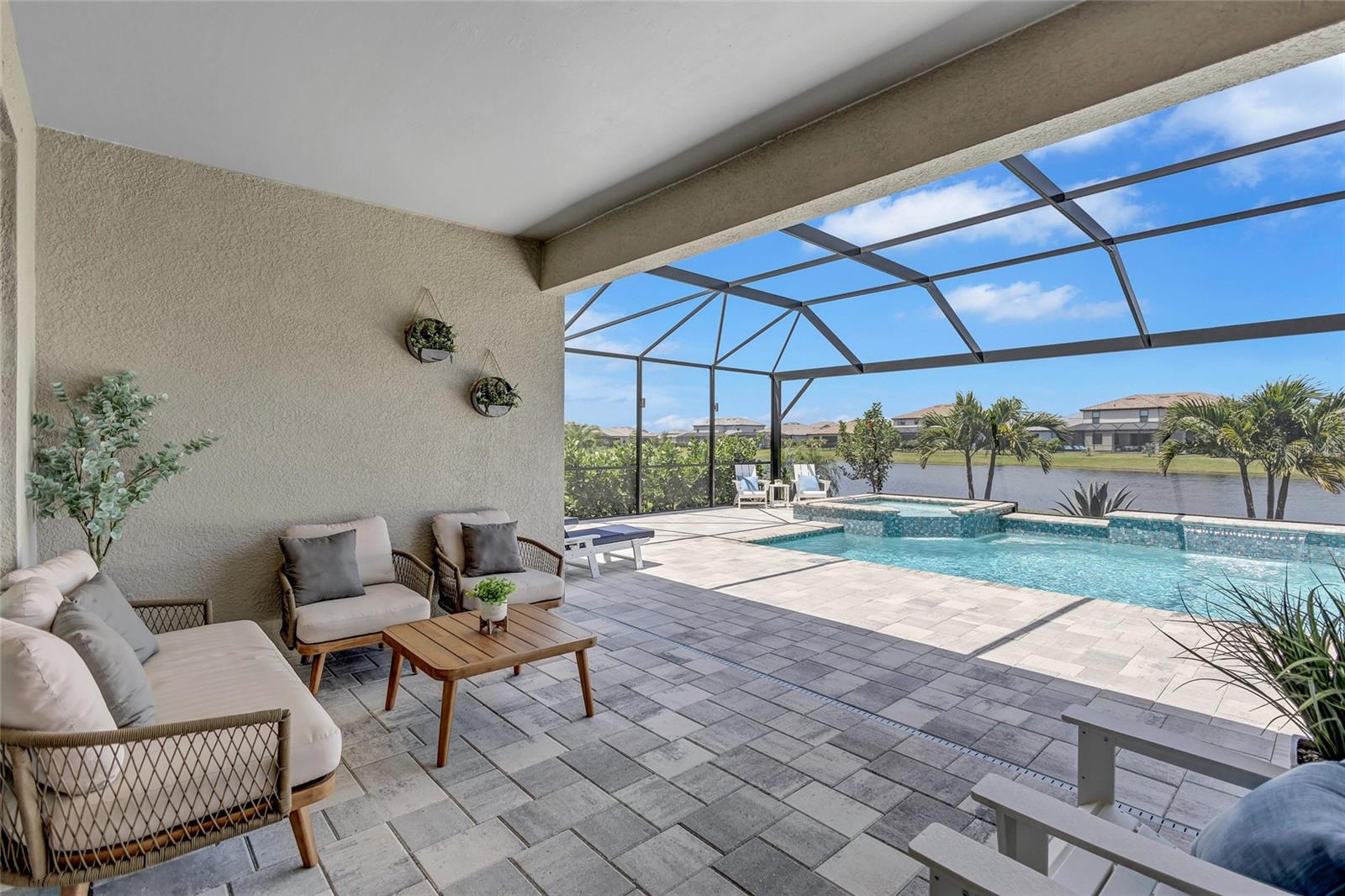 Welcome to your Florida dream home! This impeccably maintained 4-bedroom, 3-bath ranch-style pool home is located in the sought-after Lorraine Lakes community of Lakewood Ranch. Designed for both everyday comfort and stylish entertaining, the open-concept floor plan seamlessly connects the spacious kitchen, dining, and living areas. The kitchen features abundant cabinetry, ample counter space, and a cozy office nook—ideal for work-from-home days. Step outside to your private backyard oasis where a custom-designed, heated saltwater pool and spa await. The panoramic screen enclosure provides uninterrupted views of the serene pond and surrounding natural beauty, making every day feel like a vacation. Each bedroom is thoughtfully placed for privacy and functionality, perfect for families or hosting guests. The three-car garage features a non-slip epoxy floor, offering plenty of room for vehicles, storage, or your favorite toys. Just steps away, the 25,000 sq ft amenity center offers resort-style living at its best: a full fitness center, indoor and outdoor basketball courts, tennis, pickleball, putting green, lap pool, splash pad, and playground. Enjoy the indoor/outdoor bar and restaurant or unwind at the luxurious resort pool. Lorraine Lakes is part of Lakewood Ranch—ranked the #1 multi-generational community in the U.S. for seven years running. Only 30 minutes to Florida’s stunning Gulf Coast beaches and close to the cultural, dining, and entertainment experiences of downtown Sarasota. Don’t miss this rare opportunity to own a slice of paradise where comfort, luxury, and lifestyle come together effortlessly.