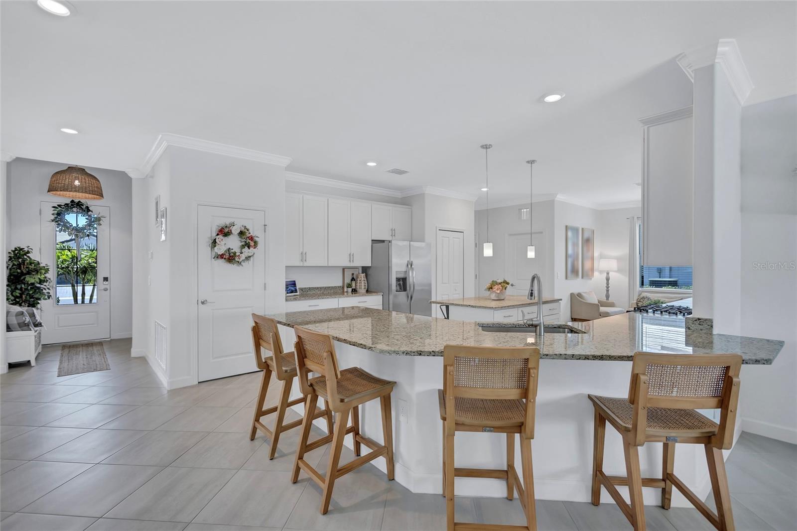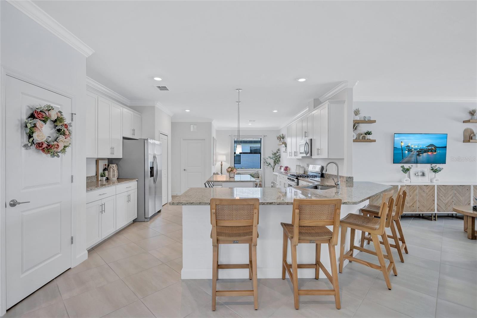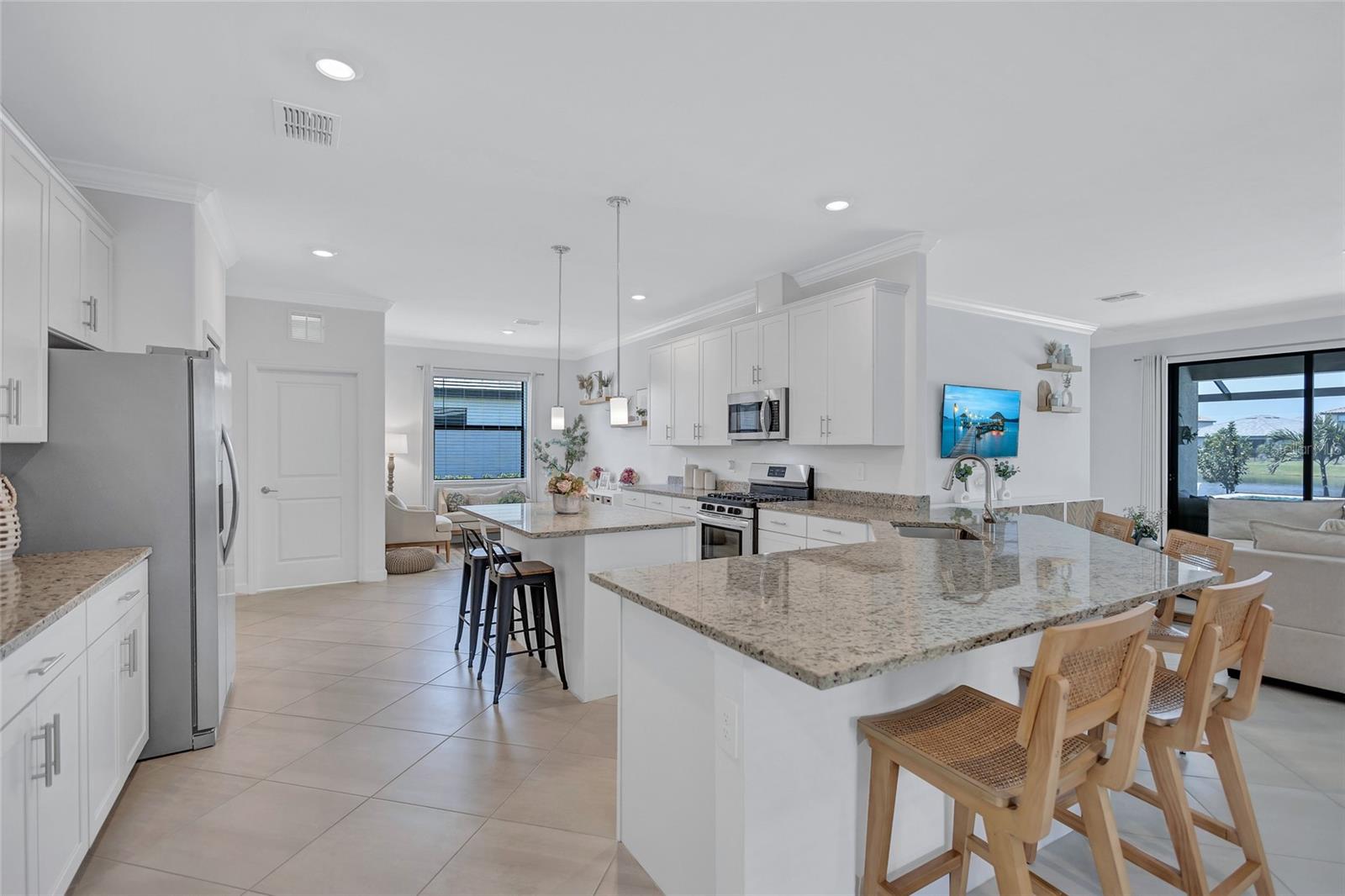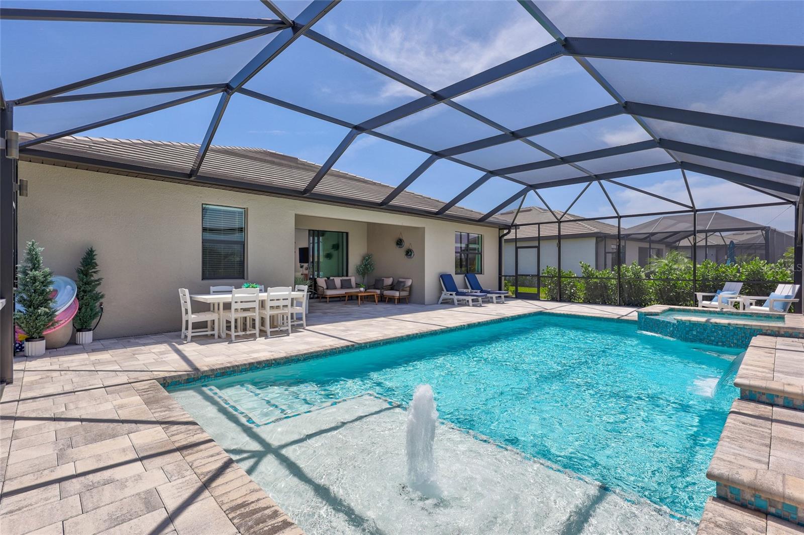 Welcome to your Florida dream home! This impeccably maintained 4-bedroom, 3-bath ranch-style pool home is located in the sought-after Lorraine Lakes community of Lakewood Ranch. Designed for both everyday comfort and stylish entertaining, the open-concept floor plan seamlessly connects the spacious kitchen, dining, and living areas. The kitchen features abundant cabinetry, ample counter space, and a cozy office nook—ideal for work-from-home days. Step outside to your private backyard oasis where a custom-designed, heated saltwater pool and spa await. The panoramic screen enclosure provides uninterrupted views of the serene pond and surrounding natural beauty, making every day feel like a vacation. Each bedroom is thoughtfully placed for privacy and functionality, perfect for families or hosting guests. The three-car garage features a non-slip epoxy floor, offering plenty of room for vehicles, storage, or your favorite toys. Just steps away, the 25,000 sq ft amenity center offers resort-style living at its best: a full fitness center, indoor and outdoor basketball courts, tennis, pickleball, putting green, lap pool, splash pad, and playground. Enjoy the indoor/outdoor bar and restaurant or unwind at the luxurious resort pool. Lorraine Lakes is part of Lakewood Ranch—ranked the #1 multi-generational community in the U.S. for seven years running. Only 30 minutes to Florida’s stunning Gulf Coast beaches and close to the cultural, dining, and entertainment experiences of downtown Sarasota. Don’t miss this rare opportunity to own a slice of paradise where comfort, luxury, and lifestyle come together effortlessly.