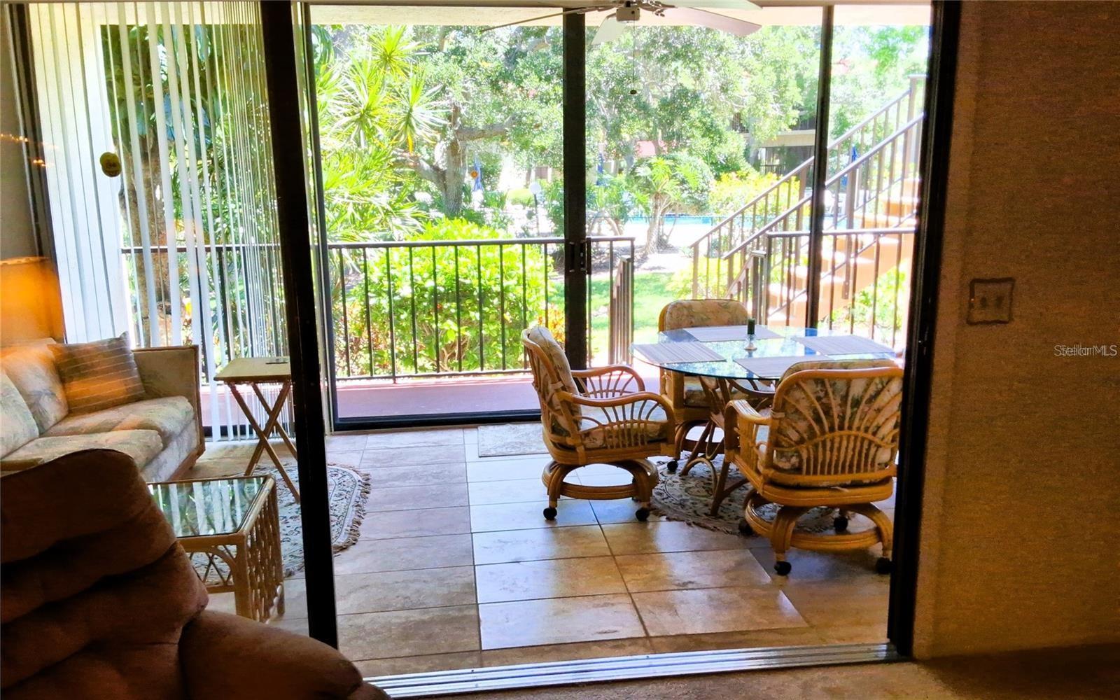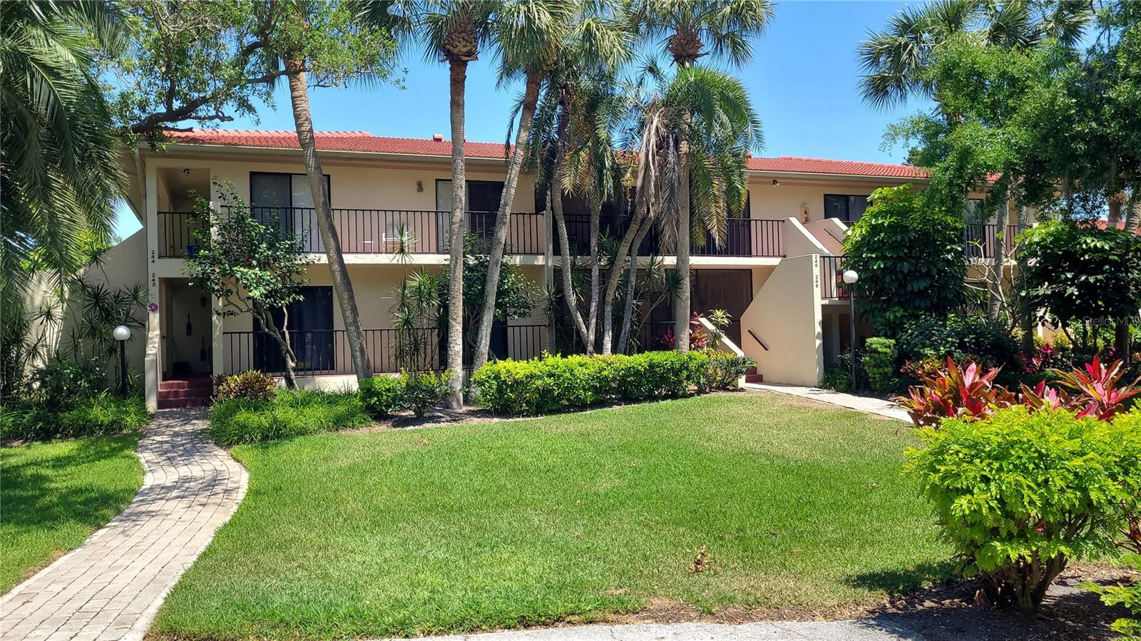 Experience effortless, living in this 2-bedroom, 2-bathroom main-floor condo—no stairs required! Step into your spacious, screen-enclosed front porch, perfect for morning coffee or evening unwinding. Inside, the open-concept living and dining area flows seamlessly toward the back lanai, where newly installed tile flooring makes upkeep a breeze. Relax as you overlook the community pool and lush, park-like grounds beyond. Your oversized primary suite is a true retreat, featuring an ensuite bathroom, a generous walk-in closet, and private access to the lanai. The second bedroom—ideal for guests, a home office, offers its own large walk-in closet plus an extra wall closet, with easy access to the adjacent guest bath. Enjoy peace of mind with recent updates: the tile roof was replaced just four years ago, the air-conditioning system was installed in 2022, and the water heater was updated in 2020. Plus, Terrace Two boasts the lowest condo fees in the community, so you can take advantage of all Wild Oak Bay offers without breaking the bank. Wild Oak Bay is a sought-after community renowned for its resort-style amenities pool, a spa hot tub, tree-lined streets, and impeccably maintained landscaping. You’re just minutes from IMG Academy, local shopping and dining, and the cultural attractions of Sarasota, with SRQ airport less than five miles away. Anna Maria beaches are 8.5 miles away. This condo blends tranquility with convenience—ready to welcome you home.