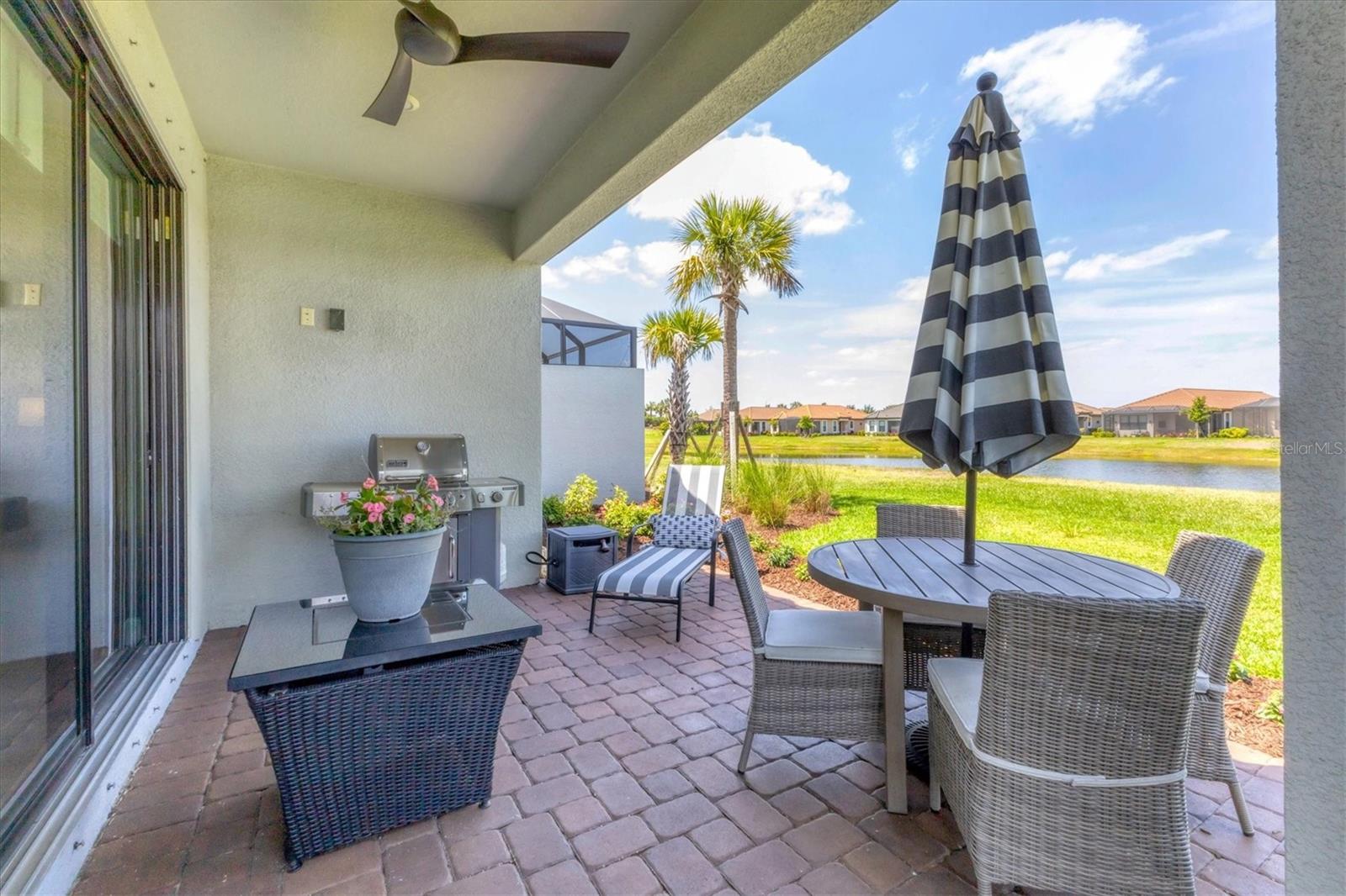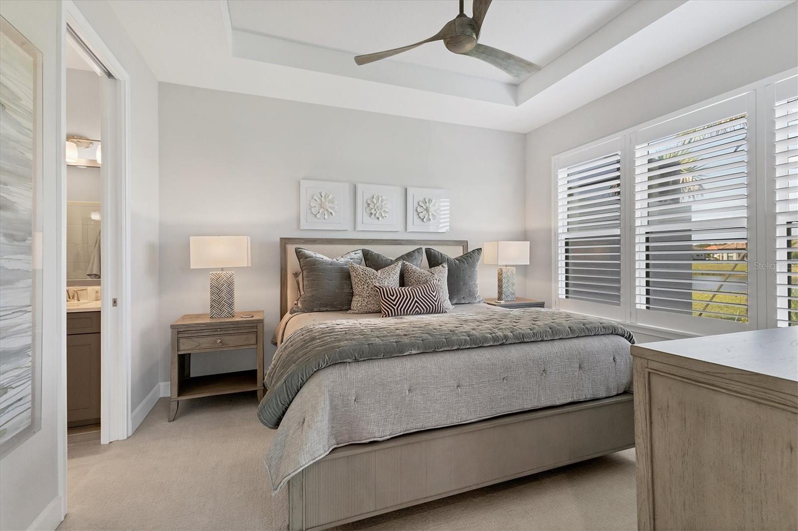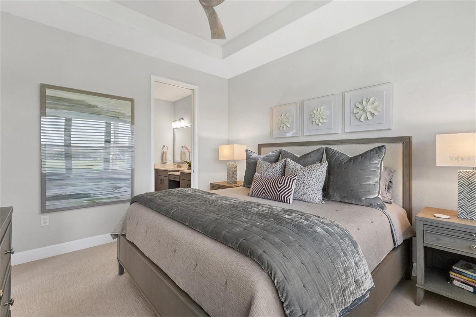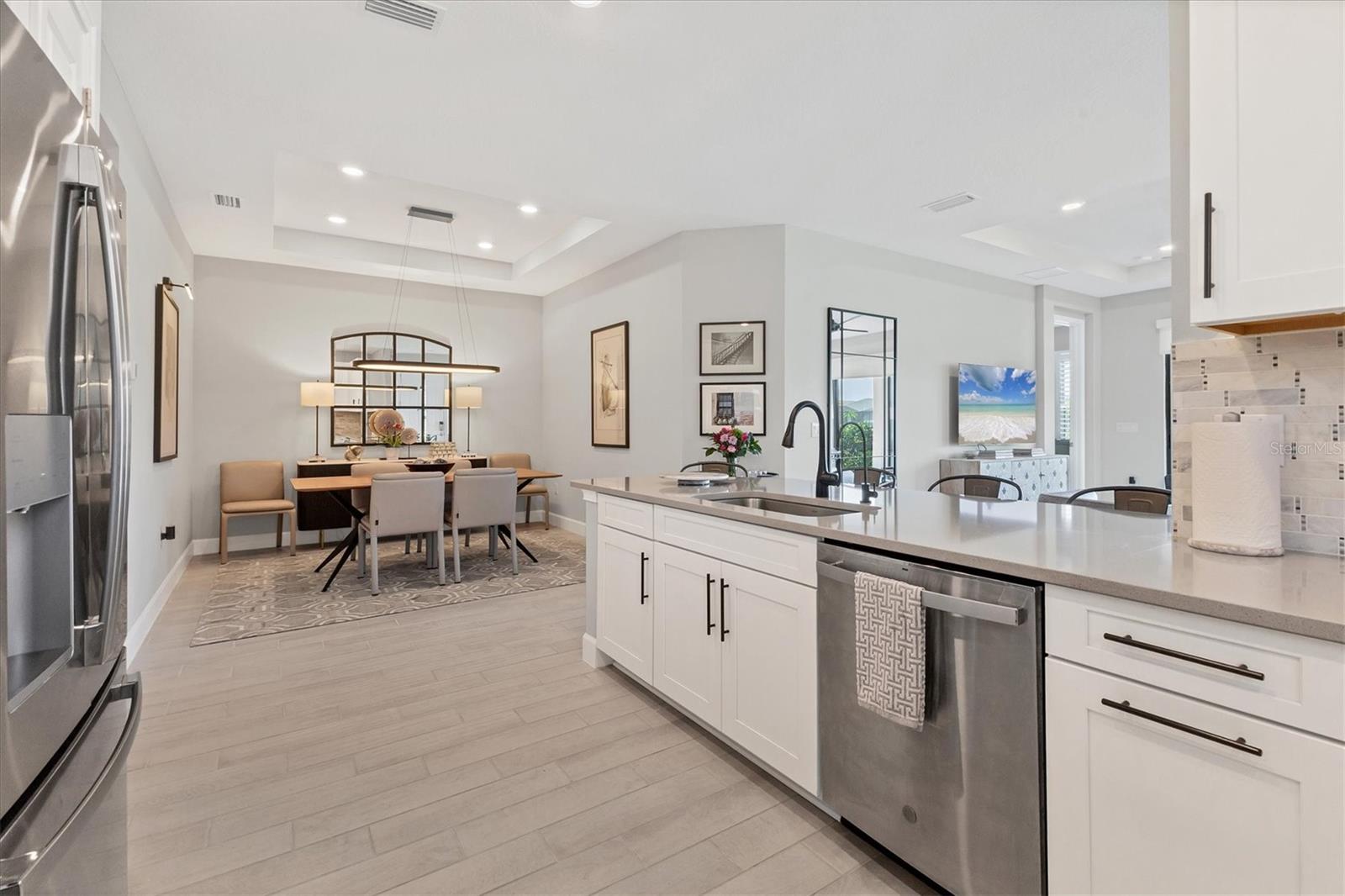Welcome to the epitome of luxury & lifestyle in the highly sought-after, gated community of Esplanade at Azario in Lakewood Ranch. This stunning 2-bedroom, 2-bathroom home with a spacious office/den sits peacefully on a quiet cul-de-sac with beautiful water views, offering an unmatched blend of professional design, comfort, & serene Florida living. Unlike new construction homes, this move-in ready residence features tens of thousands in premium upgrades, high-end finishes, & thoughtful design touches that far exceed builder-grade standards. Step inside through the front door & you’ll immediately feel the difference. The open-concept floor plan is filled with natural light & flows effortlessly between the living, dining, & gourmet kitchen areas - perfect for entertaining or enjoying quiet evenings. Throughout the main living areas, attractive wood-look tile flooring adds both style & durability, while the bedrooms feature plush, upgraded carpet for added comfort. The heart of the home is the chef’s kitchen, where no detail has been spared. Enjoy level 5 shaker-style soft-close cabinetry with upgraded, deep pots/pans drawers, quartz countertops, custom marble tile backsplash, reverse osmosis water filtration system, Glamour-line stainless steel appliances. Whether you’re whipping up breakfast or hosting a gourmet dinner, this space combines beauty & function with ease. It flows into the beautiful dining room with a striking, contemporary chandelier hung from the tray ceiling! Sophistication continues throughout the home with tray ceilings, 8-foot solid-core doors, plantation shutters, fresh paint, recessed lighting, and designer ceiling fans. The owner’s suite is a peaceful retreat, featuring expansive windows overlooking the water & a luxurious en-suite bath with dual vanities, quartz countertops, stylish mirrors, makeup station, beautifully tiled shower with frameless glass door & a customized walk-in closet. The family room opens up to a private paver patio through large stacking sliding glass doors with Hunter Douglas Powerview motorized remote-control shades, where you’ll enjoy picture-perfect sunsets over the tranquil pond - often visited by herons, cranes, & other wildlife. The outdoor space is pre-wired for a pool and pre-plumbed for a summer kitchen, giving you the freedom to design your dream backyard oasis. The newly updated landscaping completes this tropical haven. The comfortable & versatile den featuring convenient pocket doors performs as an office, sitting area, and/or an additional sleeping area when needed. A spacious laundry room features new front-load washer/dryer, upper cabinetry, built-in shelving & a utility sink with pull-down faucet for added convenience. The home is designed in a split floor plan which provides privacy for your guests. The attached two-car garage boasts overhead storage racks & epoxy-coated floors. As a resident of Azario, you’ll enjoy resort-style amenities, including an 18-hole championship golf course with PGA professional instruction, pickleball, tennis, bocce ball, zero-entry pool & spa, poolside tiki bar, culinary center with multiple restaurants, full-service wellness spa, state-of-the-art fitness center, dog park, vibrant calendar of social events & activities. This immaculately maintained home is a rare opportunity to own a highly upgraded, waterfront residence in one of Lakewood Ranch’s premier active lifestyle communities - without waiting for new construction.