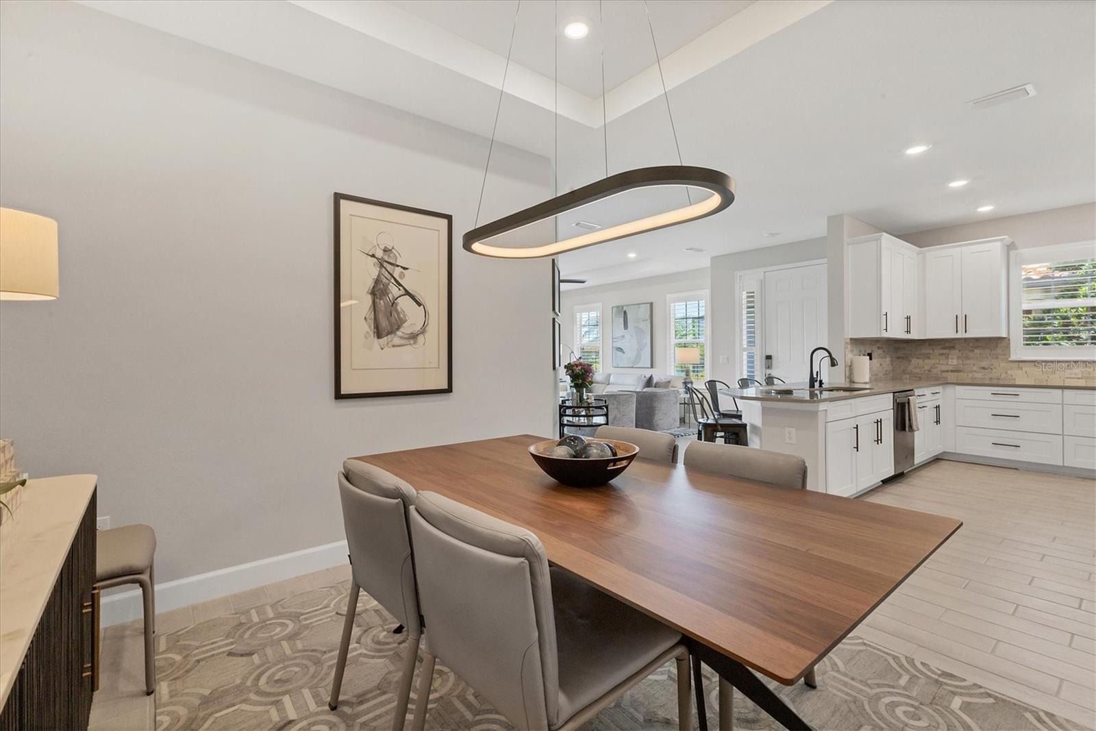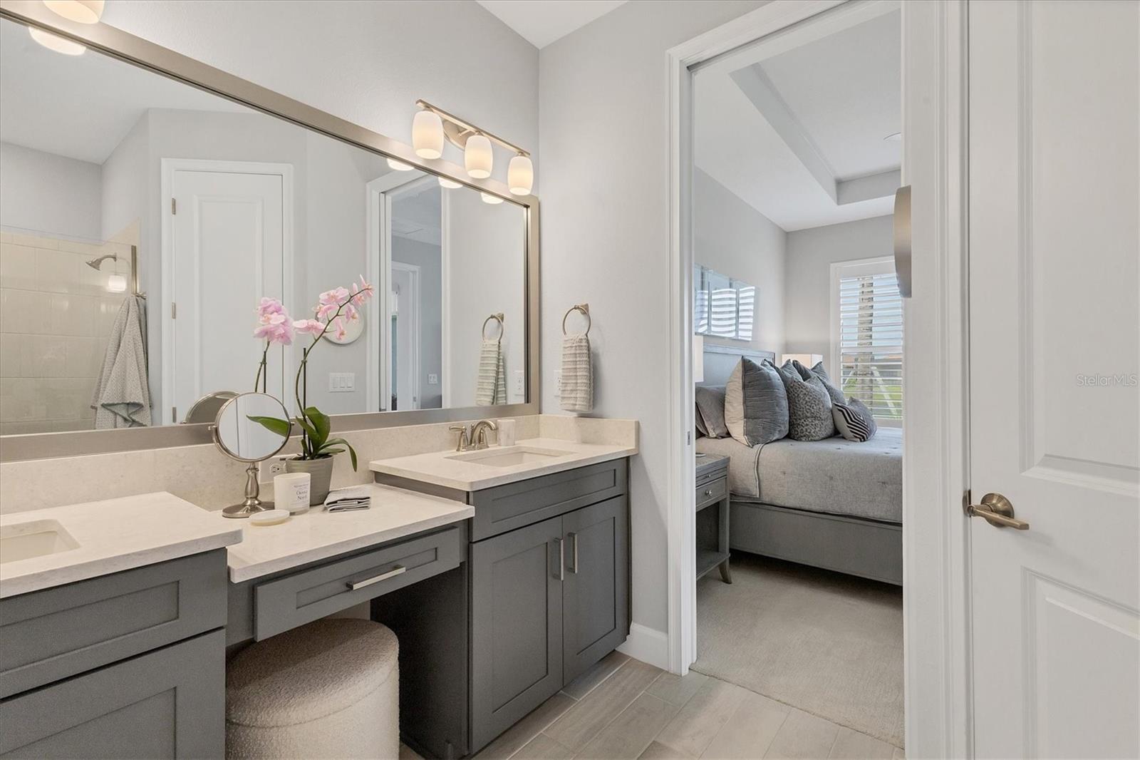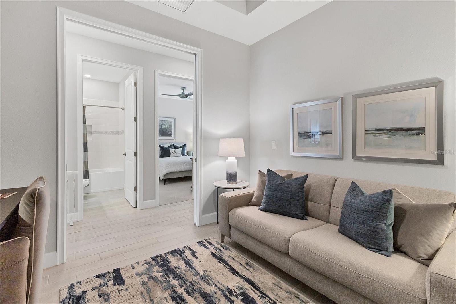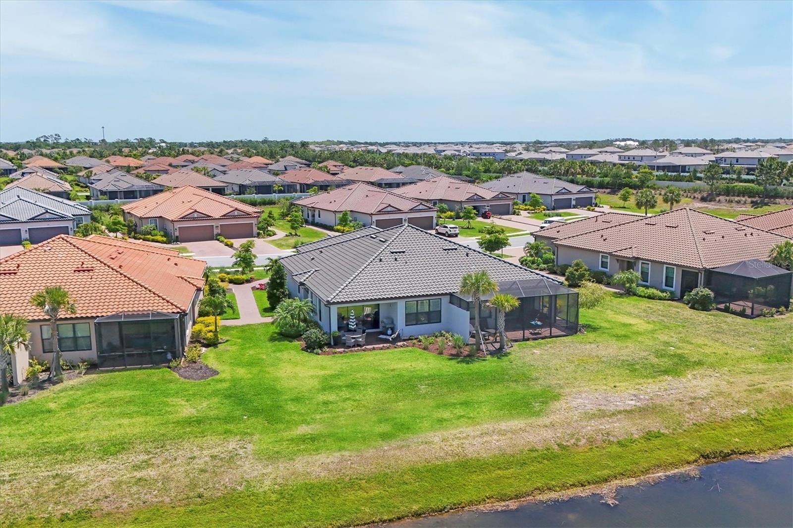 Welcome to the epitome of luxury & lifestyle in the highly sought-after, gated community of Esplanade at Azario in Lakewood Ranch. This stunning 2-bedroom, 2-bathroom home with a spacious office/den sits peacefully on a quiet cul-de-sac with beautiful water views, offering an unmatched blend of professional design, comfort, & serene Florida living. Unlike new construction homes, this move-in ready residence features tens of thousands in premium upgrades, high-end finishes, & thoughtful design touches that far exceed builder-grade standards. Step inside through the front door & you’ll immediately feel the difference. The open-concept floor plan is filled with natural light & flows effortlessly between the living, dining, & gourmet kitchen areas - perfect for entertaining or enjoying quiet evenings. Throughout the main living areas, attractive wood-look tile flooring adds both style & durability, while the bedrooms feature plush, upgraded carpet for added comfort. The heart of the home is the chef’s kitchen, where no detail has been spared. Enjoy level 5 shaker-style soft-close cabinetry with upgraded, deep pots/pans drawers, quartz countertops, custom marble tile backsplash, reverse osmosis water filtration system, Glamour-line stainless steel appliances. Whether you’re whipping up breakfast or hosting a gourmet dinner, this space combines beauty & function with ease. It flows into the beautiful dining room with a striking, contemporary chandelier hung from the tray ceiling! Sophistication continues throughout the home with tray ceilings, 8-foot solid-core doors, plantation shutters, fresh paint, recessed lighting, and designer ceiling fans. The owner’s suite is a peaceful retreat, featuring expansive windows overlooking the water & a luxurious en-suite bath with dual vanities, quartz countertops, stylish mirrors, makeup station, beautifully tiled shower with frameless glass door & a customized walk-in closet. The family room opens up to a private paver patio through large stacking sliding glass doors with Hunter Douglas Powerview motorized remote-control shades, where you’ll enjoy picture-perfect sunsets over the tranquil pond - often visited by herons, cranes, & other wildlife. The outdoor space is pre-wired for a pool and pre-plumbed for a summer kitchen, giving you the freedom to design your dream backyard oasis. The newly updated landscaping completes this tropical haven. The comfortable & versatile den featuring convenient pocket doors performs as an office, sitting area, and/or an additional sleeping area when needed. A spacious laundry room features new front-load washer/dryer, upper cabinetry, built-in shelving & a utility sink with pull-down faucet for added convenience. The home is designed in a split floor plan which provides privacy for your guests. The attached two-car garage boasts overhead storage racks & epoxy-coated floors. As a resident of Azario, you’ll enjoy resort-style amenities, including an 18-hole championship golf course with PGA professional instruction, pickleball, tennis, bocce ball, zero-entry pool & spa, poolside tiki bar, culinary center with multiple restaurants, full-service wellness spa, state-of-the-art fitness center, dog park, vibrant calendar of social events & activities. This immaculately maintained home is a rare opportunity to own a highly upgraded, waterfront residence in one of Lakewood Ranch’s premier active lifestyle communities - without waiting for new construction.