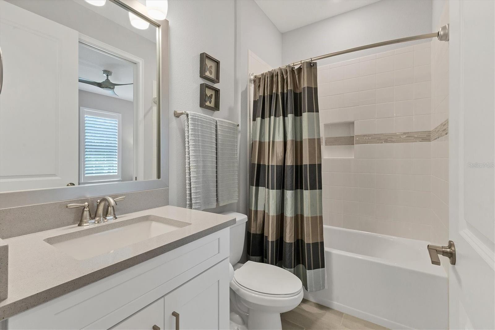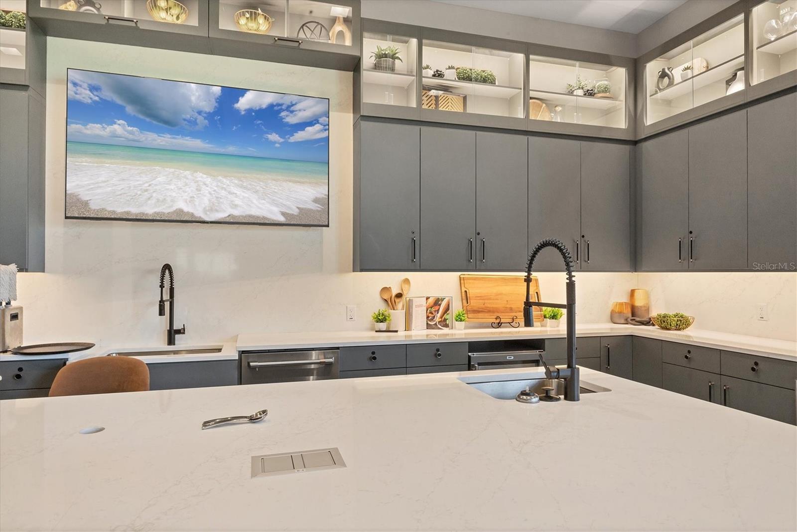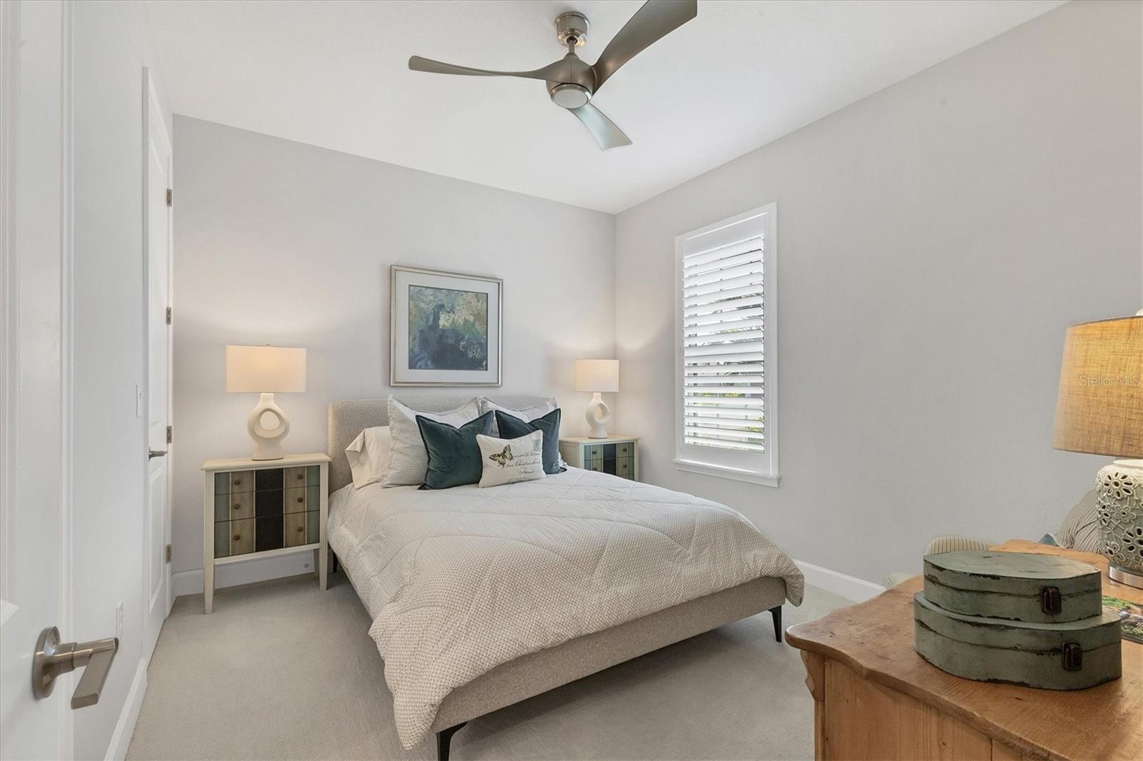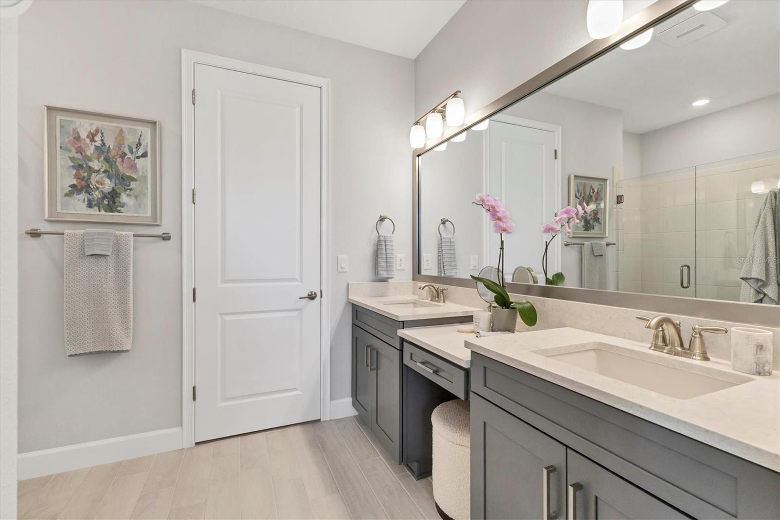 Welcome to the epitome of luxury & lifestyle in the highly sought-after, gated community of Esplanade at Azario in Lakewood Ranch. This stunning 2-bedroom, 2-bathroom home with a spacious office/den sits peacefully on a quiet cul-de-sac with beautiful water views, offering an unmatched blend of professional design, comfort, & serene Florida living. Unlike new construction homes, this move-in ready residence features tens of thousands in premium upgrades, high-end finishes, & thoughtful design touches that far exceed builder-grade standards. Step inside through the front door & you’ll immediately feel the difference. The open-concept floor plan is filled with natural light & flows effortlessly between the living, dining, & gourmet kitchen areas - perfect for entertaining or enjoying quiet evenings. Throughout the main living areas, attractive wood-look tile flooring adds both style & durability, while the bedrooms feature plush, upgraded carpet for added comfort. The heart of the home is the chef’s kitchen, where no detail has been spared. Enjoy level 5 shaker-style soft-close cabinetry with upgraded, deep pots/pans drawers, quartz countertops, custom marble tile backsplash, reverse osmosis water filtration system, Glamour-line stainless steel appliances. Whether you’re whipping up breakfast or hosting a gourmet dinner, this space combines beauty & function with ease. It flows into the beautiful dining room with a striking, contemporary chandelier hung from the tray ceiling! Sophistication continues throughout the home with tray ceilings, 8-foot solid-core doors, plantation shutters, fresh paint, recessed lighting, and designer ceiling fans. The owner’s suite is a peaceful retreat, featuring expansive windows overlooking the water & a luxurious en-suite bath with dual vanities, quartz countertops, stylish mirrors, makeup station, beautifully tiled shower with frameless glass door & a customized walk-in closet. The family room opens up to a private paver patio through large stacking sliding glass doors with Hunter Douglas Powerview motorized remote-control shades, where you’ll enjoy picture-perfect sunsets over the tranquil pond - often visited by herons, cranes, & other wildlife. The outdoor space is pre-wired for a pool and pre-plumbed for a summer kitchen, giving you the freedom to design your dream backyard oasis. The newly updated landscaping completes this tropical haven. The comfortable & versatile den featuring convenient pocket doors performs as an office, sitting area, and/or an additional sleeping area when needed. A spacious laundry room features new front-load washer/dryer, upper cabinetry, built-in shelving & a utility sink with pull-down faucet for added convenience. The home is designed in a split floor plan which provides privacy for your guests. The attached two-car garage boasts overhead storage racks & epoxy-coated floors. As a resident of Azario, you’ll enjoy resort-style amenities, including an 18-hole championship golf course with PGA professional instruction, pickleball, tennis, bocce ball, zero-entry pool & spa, poolside tiki bar, culinary center with multiple restaurants, full-service wellness spa, state-of-the-art fitness center, dog park, vibrant calendar of social events & activities. This immaculately maintained home is a rare opportunity to own a highly upgraded, waterfront residence in one of Lakewood Ranch’s premier active lifestyle communities - without waiting for new construction.