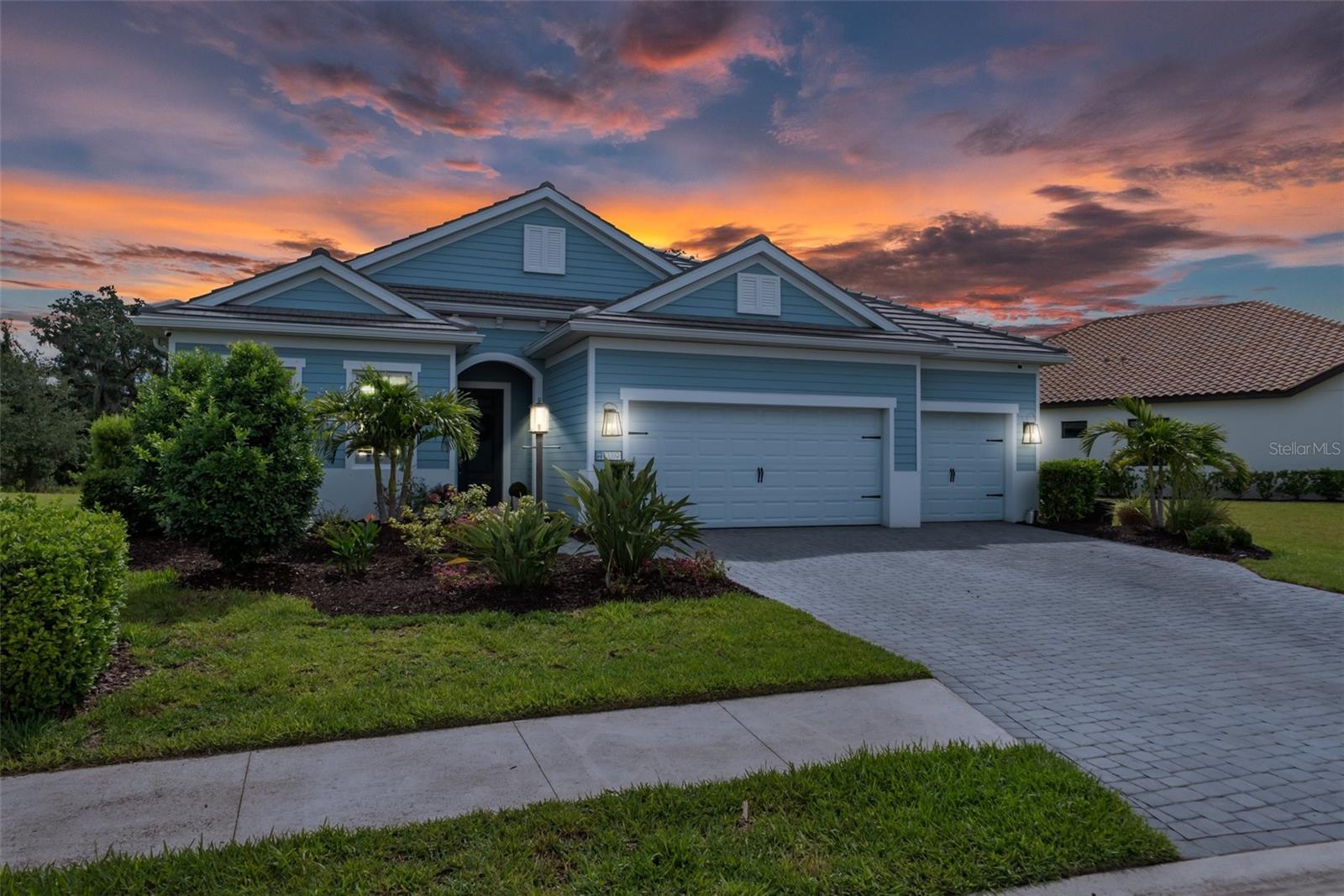 Bask in the utmost luxury at Indigo in Lakewood Ranch, where this remarkable Silver Sky II residence awaits you. This Neal-built home boasts 4 bedrooms, 3 bathrooms, a den, and a spacious 3-car garage, all nestled on an enchanting deep preserve lot with no future homes to be built around. Enjoy the peace of mind that comes with living in a secure gated community, complete with a state-of-the-art "Vivint" security system featuring five cameras and smart home integration. Upon entering this exquisite residence, you'll be awestruck by its grandeur. The open concept layout seamlessly blends elegance with functionality, showcasing premium finishes, double pane windows, and "Split tilt" plantation shutters throughout. The chef-inspired kitchen is equipped with high-end appliances, quartz countertops, ample cabinetry, a center island, and a built-in wine refrigerator. The master suite offers a tranquil retreat with tray ceilings, custom his and hers walk-in closets, and an opulent en-suite bathroom featuring floor-to-ceiling porcelain tile, two separate vanities with quartz countertops, luxury faucets, and light fixtures on extended mirrors. The spa-like bathroom also includes a huge walk-in shower. Your guests will appreciate the privacy of their own ensuite bedroom on the opposite side of the home. The generously sized laundry room offers a tub, top-of-the-line appliances, and an abundance of cabinetry and countertop space. For those who love to workout, the 3-car garage comes with epoxy flooring, mounted ceiling storage racks, and a refrigerator. The community of Indigo is truly special, offering low HOA fees that include all yard maintenance and access to an array of amenities: a recreation center, club room, café kitchen, community pool and spa, 24-hour gym, Pickleball courts, bocce ball courts, and an on-site Activities Director who plans daily outings, classes, and social events. The home's location is unparalleled, placing you close to world-class restaurants, premier outlet shopping, top-rated schools, grocery stores, medical facilities, and the pristine beaches of Florida. With easy access to I-75, you'll find that everything you need is right at your fingertips. Don't miss your chance to live in this extraordinary home. It's the perfect place for those seeking luxury, comfort, and a vibrant community lifestyle