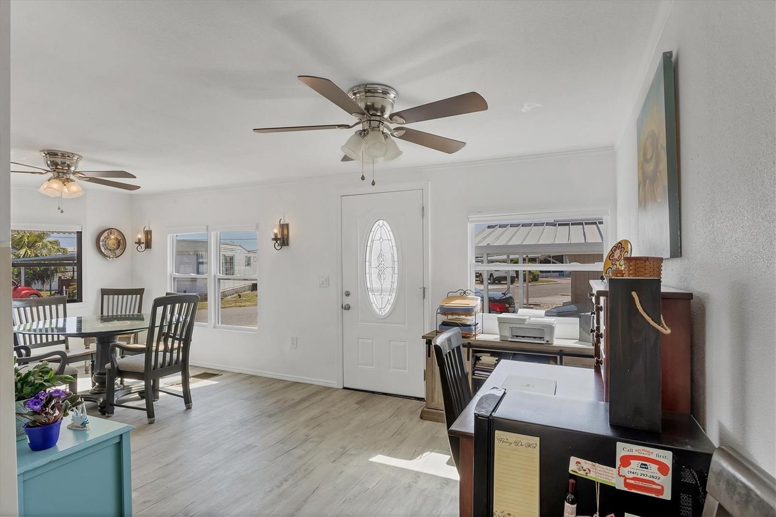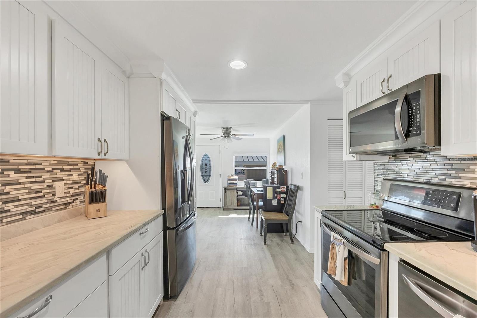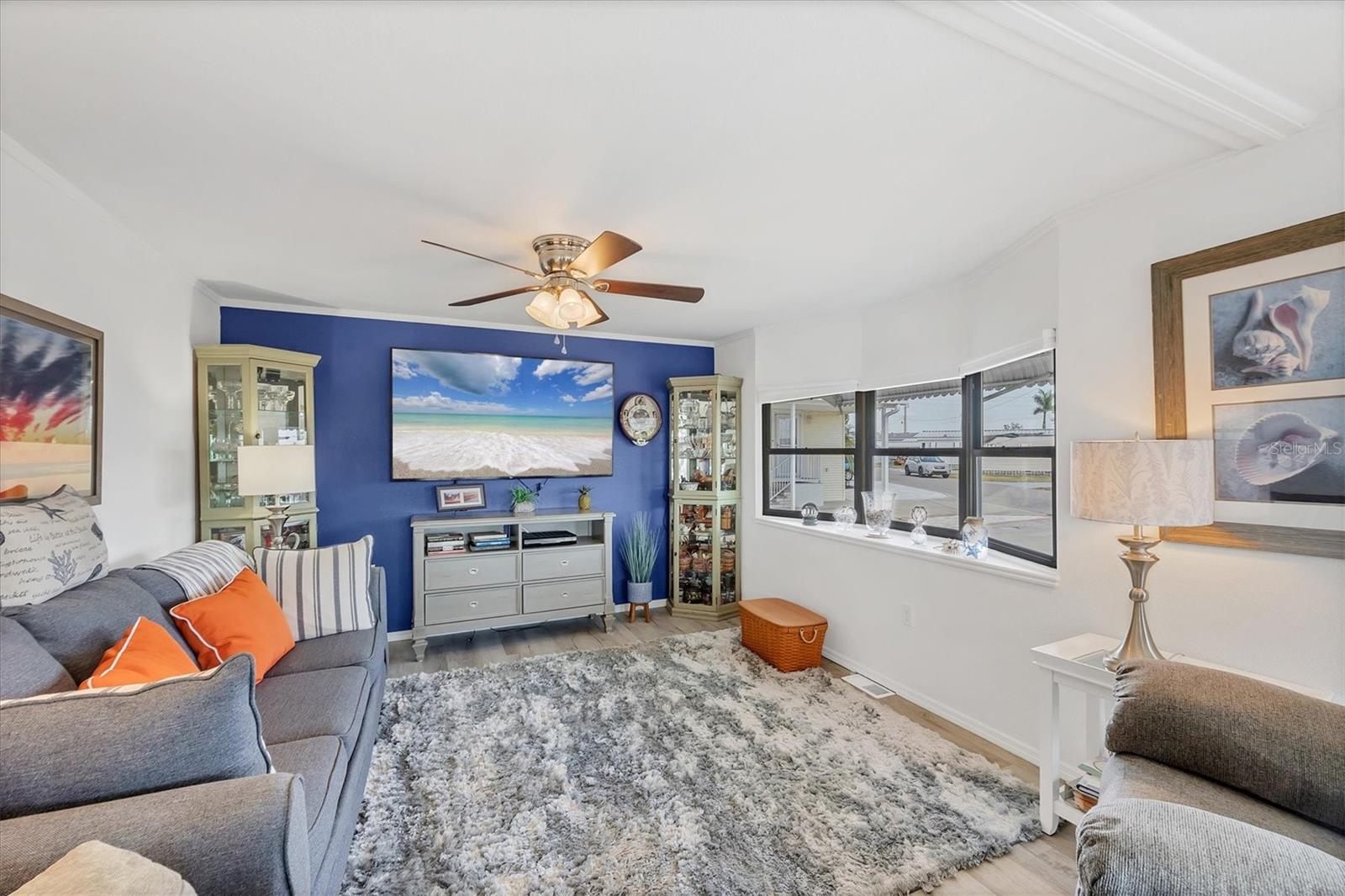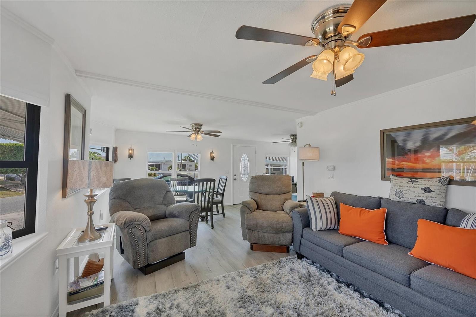 NEW PRICE! Immaculate, stunning and thoughtfully designed interior shines like new! It's the perfect blend of comfort and style in this two Bedroom, two Bath Double Wide Mobile Home in the highly desired, active 55+ Trailer Estates community. Bright, open Living and Dining areas. Kitchen is beautifully updated in a coastal feel with stainless steel appliances and quartz countertops. Generous Primary Bedroom includes an ensuite Bath. Convenient inside laundry closet. Luxury vinyl plank floors throughout. You can while away a peaceful afternoon on the 400 sq ft screened lanai listening to your rippling pond fountain just outside....or, there's plenty of room to host a friends and family BBQ. New roof 2024. 40 gallon water heater, 3 years old. Two sheds, 8x8 and 8x10. This home is well maintained inside and out. You own the land. Boaters have direct access to Sarasota Bay from the Marina. Trailer Estates community offers so many options for a great day! Enjoy the large, heated community pool, hot tub, gym and wood shop. The community buzzes with pickleball, shuffleboard, kayaking, horseshoes, bocce, dancing and more. A US Post Office on site. 10 minutes to the SRQ Airport. Convenient to shopping, restaurants, the Arts and everything in Bradenton/Sarasota. Bring offers!