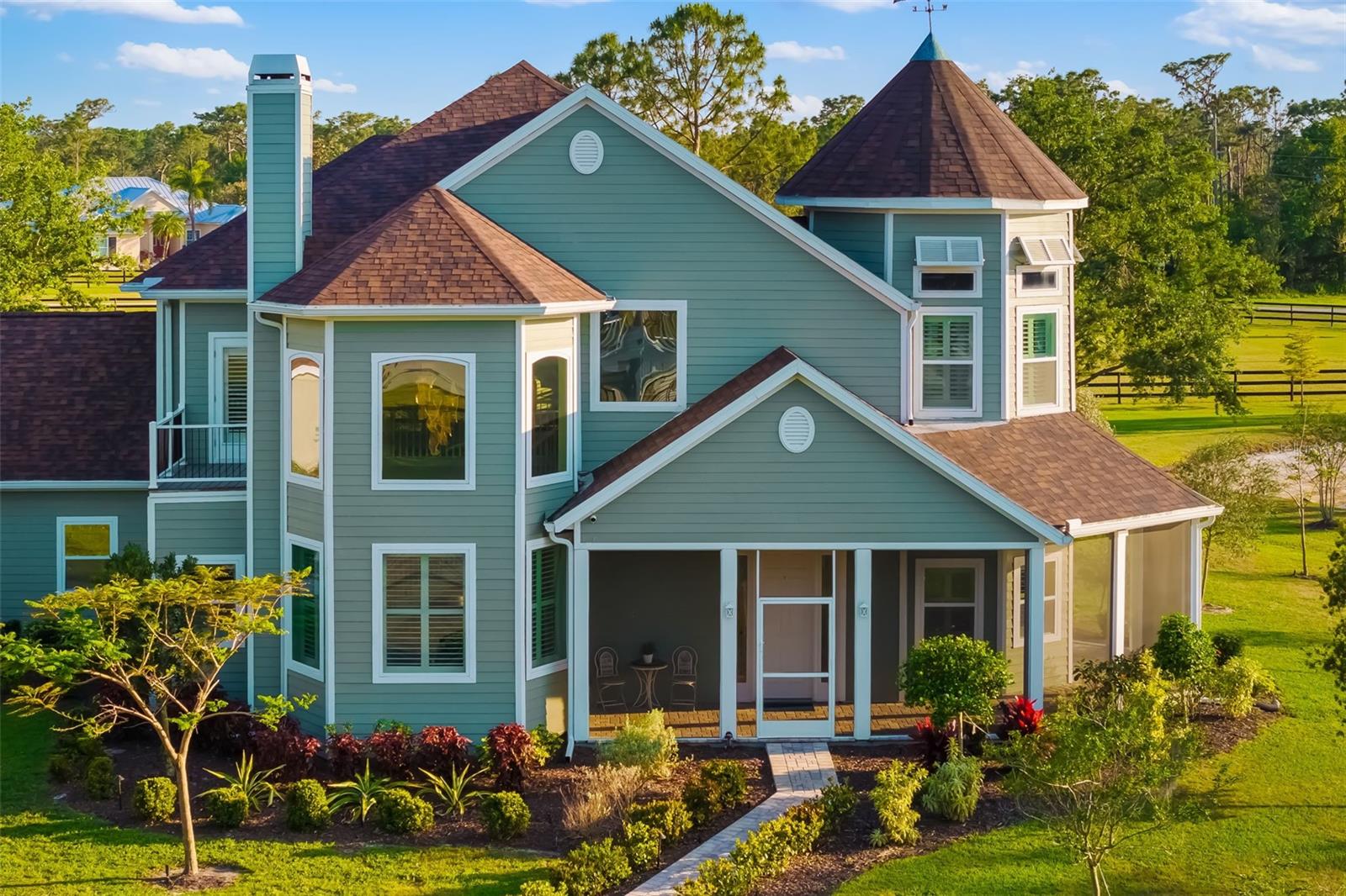 Discover a rare fusion of classic elegance and modern sophistication in this meticulously rebuilt Victorian-style estate, in the prestigious Panther Ridge community. Set on over 7.3 gated and fully fenced acres, this extraordinary property offers absolute privacy and tranquility in a lush, park-like setting. Reconstructed from the studs up, the 3,800-square-foot main residence, with 3 bedrooms and 4 baths, has been thoughtfully re-envisioned with premium materials and exceptional craftsmanship throughout. Dramatic ceiling heights, bespoke millwork and high-end designer finishes create a timeless yet contemporary atmosphere, ideal for grand entertaining and intimate living. The estate includes an expansive enclosed pool area, a luxurious 680-square-foot pool house and a versatile 40-by-80-foot outbuilding with garage parking for up to five-plus vehicles. A beautifully finished 1,100-square-foot guest house with two bedrooms, one bath and full kitchen provides ideal accommodations for extended stays or multigenerational living. Residence highlights include fully reconstructed in 2022 with new Hardie board siding and impact windows. Elegant chef’s kitchen with custom cabinetry, walk-in pantry and separate butler’s pantry. Premium, Monogram appliance suite, including double ovens and built-in ice maker. New flooring, tile, lighting and custom built-ins throughout. Designer-appointed baths and spacious closets. Fresh interior and exterior paint. Outdoor features completely updated pool and spa with new resurfacing, pavers and coping. Newly screened enclosed pool area with full outdoor kitchen. Fully irrigated vegetable gardens with new raised beds. Professionally landscaped grounds with mature trees and new plantings. Variety of fruit trees including mango, avocado, olive and cherry. Illuminated by 65 new exterior lights for dramatic nighttime ambiance. Additional structures include pool house with flexible space for lounging or guest use. Guest house with garage parking for five-plus vehicles (total seven-car). Separate enclosed storage area/workshop. Property enhancements include new impact-rated exterior doors and windows (excluding front door.) All new fencing, cross-fencing and gated entry, pasture for horses. New irrigation system and decorative pond fountain. New driveway and landscape lighting system. This estate is an exceptional opportunity for the discerning buyer seeking elegance, space and privacy, without compromising proximity to Lakewood Ranch, A-rated schools, equestrian trails, and the region’s finest shopping and dining. Shown by private appointment only.