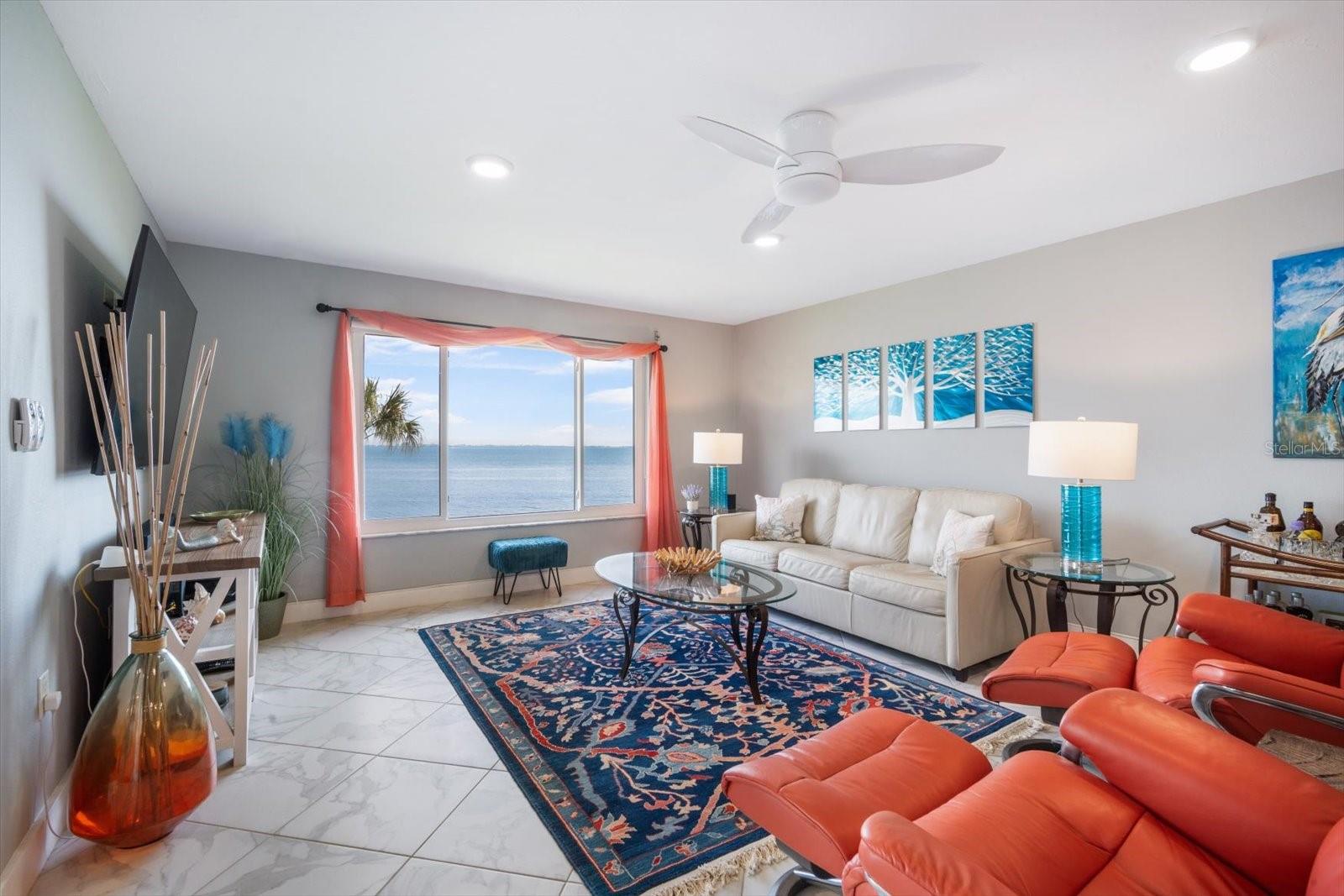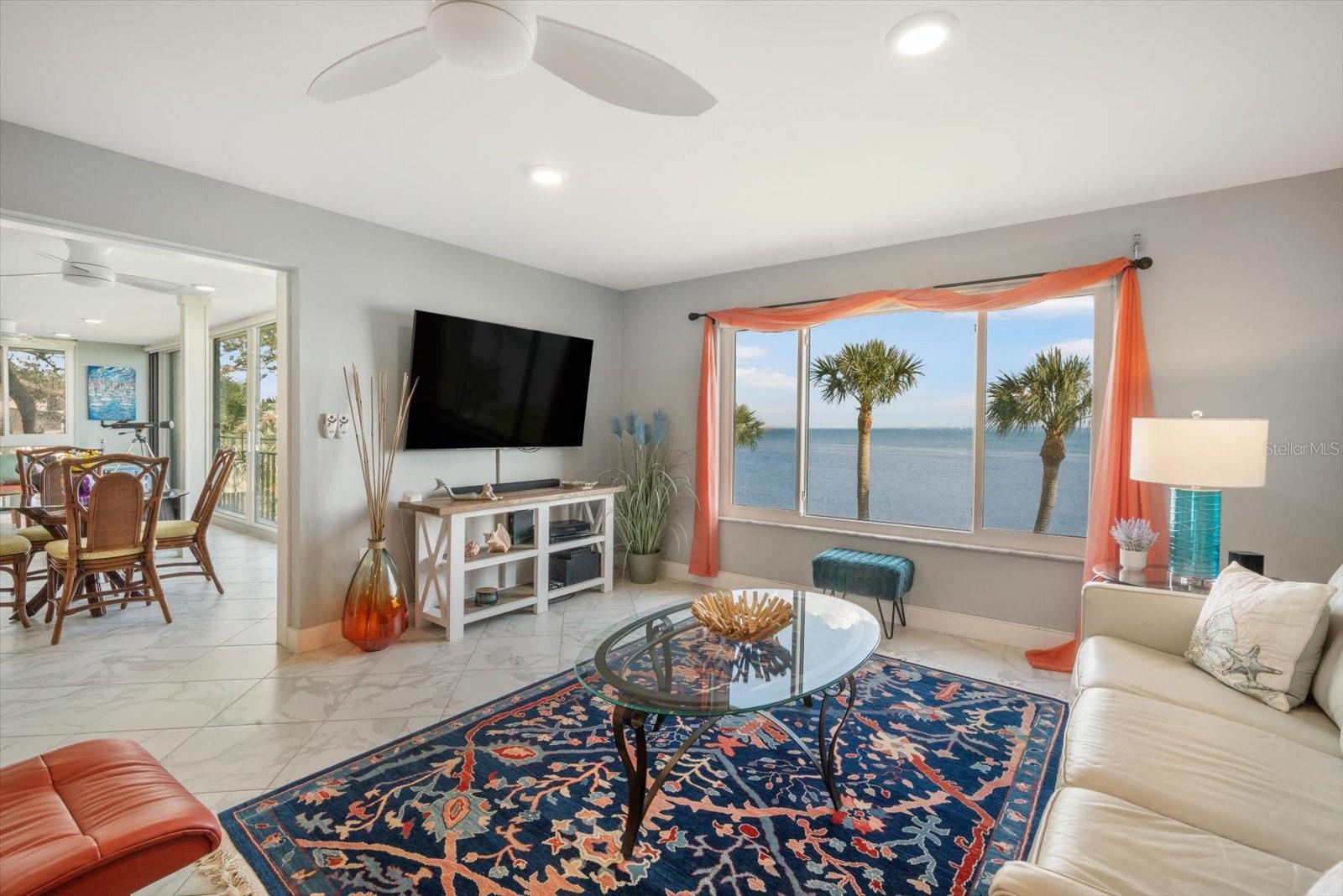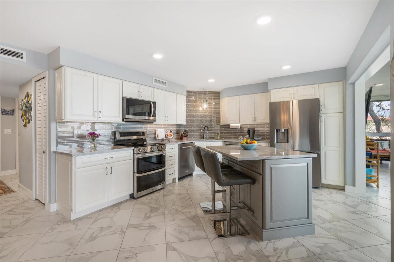 Welcome to your slice of paradise at the Vistas of Wild Oak Bay, where coastal charm meets breathtaking beauty on the shores of Sarasota Bay. This rarely available end-unit, 3-bedroom, 2-bath condo is a one-of-a-kind gem, completely reimagined with a custom floor plan that maximizes open living and stunning water views. Step inside and feel the coastal breeze flow through 1,830 square feet of light-filled space, where wide-open living areas and soft designer finishes invite you to unwind and soak in the serenity of bayfront living. Ceiling to floor hurricane-impact sliding glass doors create a postcard-perfect view of Downtown Sarasota, John Ringling Bridge, Longboat Key, and the sparkling waters of the bay, setting the stage for jaw-dropping sunsets every single evening. The heart of the home is a beautifully redesigned kitchen, thoughtfully relocated to capture the view. It showcases quartz countertops, a center island perfect for gathering, under-cabinet lighting, and all-new 2025 stainless steel appliances. The design is built for both laid-back mornings and effortless entertaining. Porcelain tile and engineered hardwood flooring add warmth and style, while LED lighting throughout creates a soft coastal glow. A brand-new A/C system installed in 2024 keeps things cool year-round. The primary bedroom features double doors that open to beautiful views of Sarasota Bay. It includes a generous walk-in closet and a private en-suite bathroom with a spa-like shower. Two additional guest bedrooms offer comfort and flexibility, perfect for family or visitors, and share a guest bathroom with a tub and shower combo. There is a dedicated laundry area with a washer and dryer, with shelving. This beautiful condo is nestled in a peaceful 55+ community that welcomes one small pet and offers resort-style amenities including a heated pool, hot tub, and elevator access. The impeccably maintained building has a new roof, fresh landscaping, and updated exterior paint. Additional amenities include a grilling area, bike & kayak storage, and a private storage closet. One dedicated covered carport space with plenty of guest parking. Just down the road, you’ll find IMG Country Club for award winning golf course, tennis, and waterfront dining. The sugar-sand shores of Anna Maria Island are just a short drive away. Close to Sarasota international airport. Whether you’re watching sailboats drift by or sipping wine at sunset, this waterfront retreat offers the perfect blend of comfort, style, and laid-back Florida living.