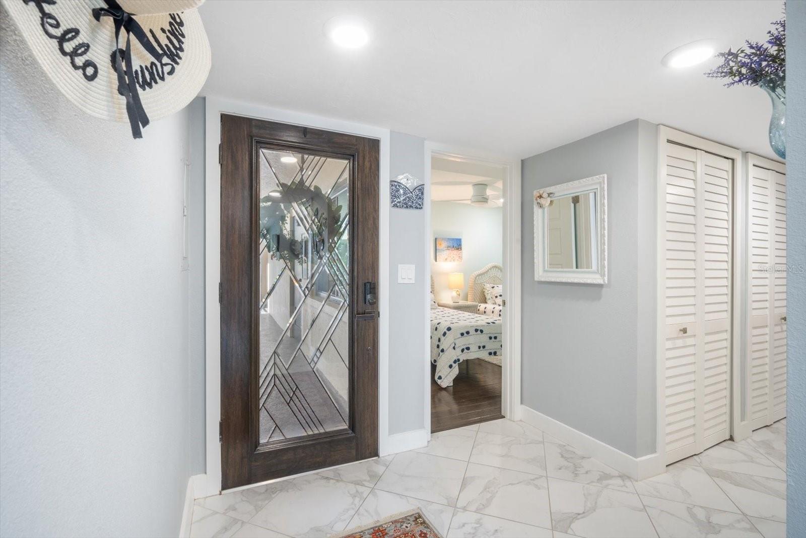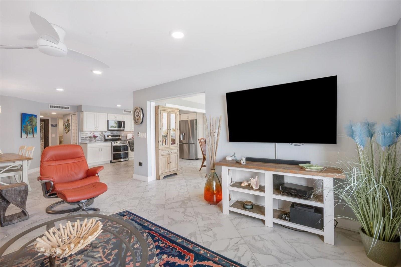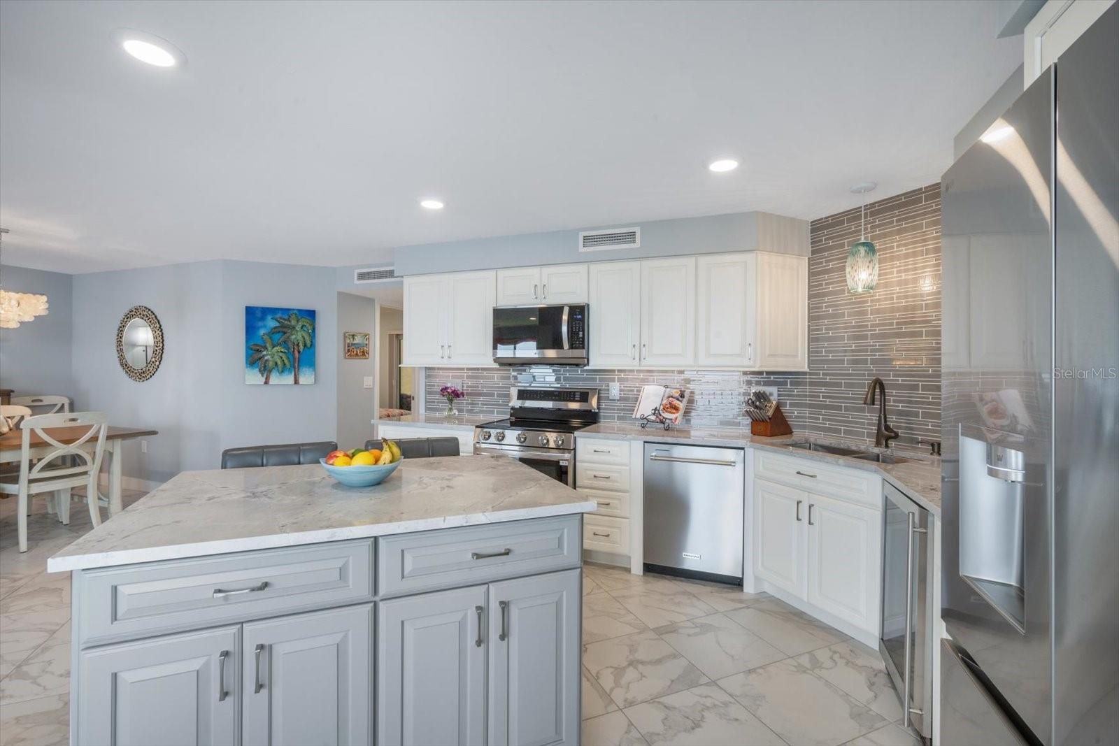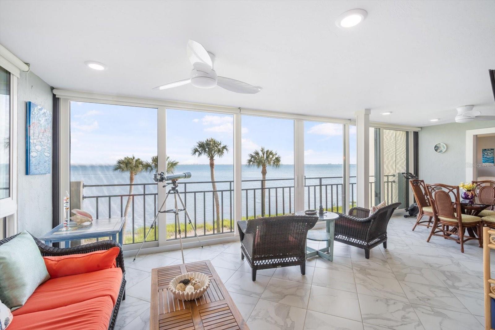 Welcome to your slice of paradise at the Vistas of Wild Oak Bay, where coastal charm meets breathtaking beauty on the shores of Sarasota Bay. This rarely available end-unit, 3-bedroom, 2-bath condo is a one-of-a-kind gem, completely reimagined with a custom floor plan that maximizes open living and stunning water views. Step inside and feel the coastal breeze flow through 1,830 square feet of light-filled space, where wide-open living areas and soft designer finishes invite you to unwind and soak in the serenity of bayfront living. Ceiling to floor hurricane-impact sliding glass doors create a postcard-perfect view of Downtown Sarasota, John Ringling Bridge, Longboat Key, and the sparkling waters of the bay, setting the stage for jaw-dropping sunsets every single evening. The heart of the home is a beautifully redesigned kitchen, thoughtfully relocated to capture the view. It showcases quartz countertops, a center island perfect for gathering, under-cabinet lighting, and all-new 2025 stainless steel appliances. The design is built for both laid-back mornings and effortless entertaining. Porcelain tile and engineered hardwood flooring add warmth and style, while LED lighting throughout creates a soft coastal glow. A brand-new A/C system installed in 2024 keeps things cool year-round. The primary bedroom features double doors that open to beautiful views of Sarasota Bay. It includes a generous walk-in closet and a private en-suite bathroom with a spa-like shower. Two additional guest bedrooms offer comfort and flexibility, perfect for family or visitors, and share a guest bathroom with a tub and shower combo. There is a dedicated laundry area with a washer and dryer, with shelving. This beautiful condo is nestled in a peaceful 55+ community that welcomes one small pet and offers resort-style amenities including a heated pool, hot tub, and elevator access. The impeccably maintained building has a new roof, fresh landscaping, and updated exterior paint. Additional amenities include a grilling area, bike & kayak storage, and a private storage closet. One dedicated covered carport space with plenty of guest parking. Just down the road, you’ll find IMG Country Club for award winning golf course, tennis, and waterfront dining. The sugar-sand shores of Anna Maria Island are just a short drive away. Close to Sarasota international airport. Whether you’re watching sailboats drift by or sipping wine at sunset, this waterfront retreat offers the perfect blend of comfort, style, and laid-back Florida living.