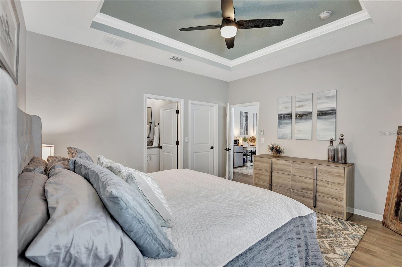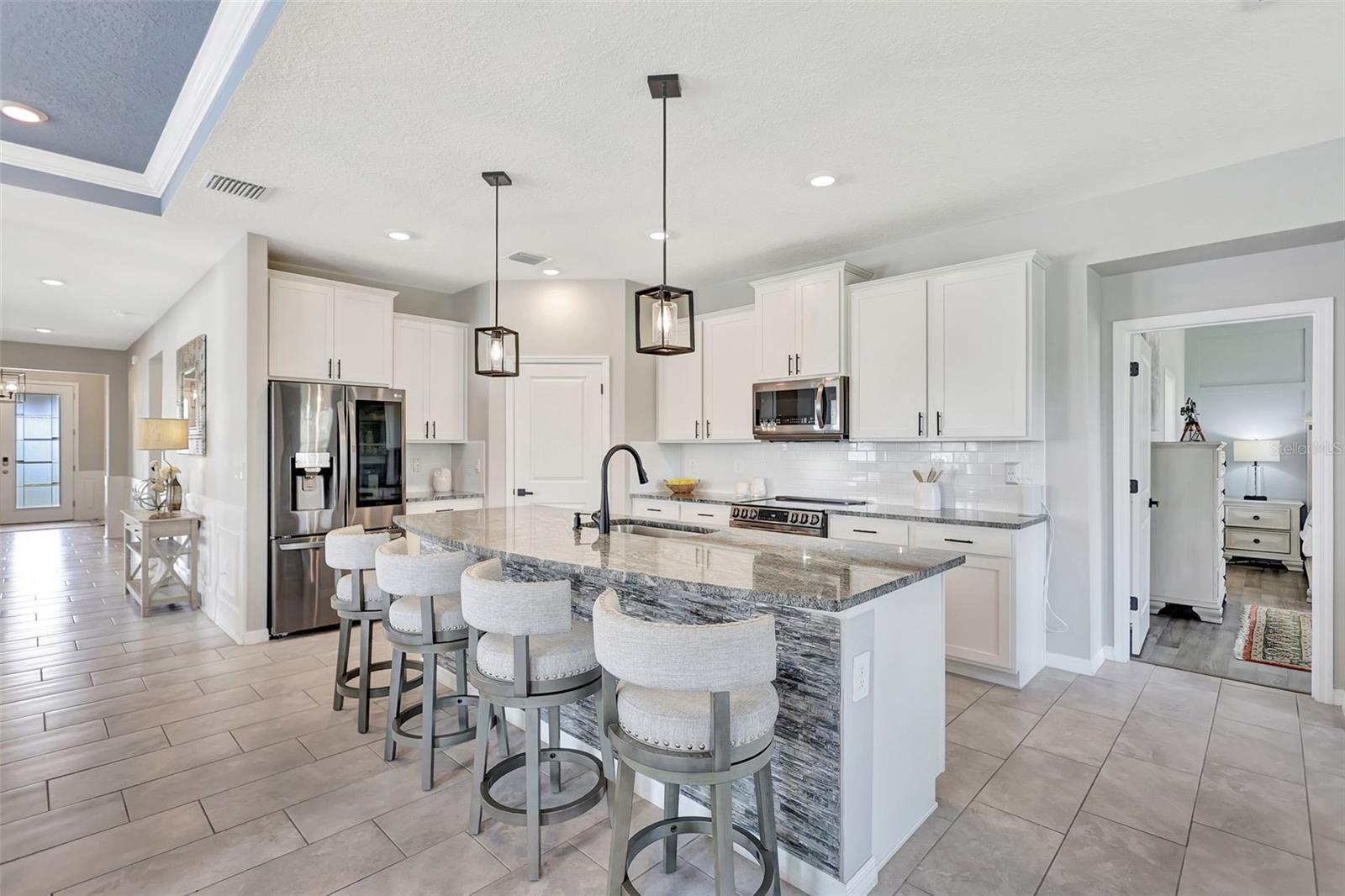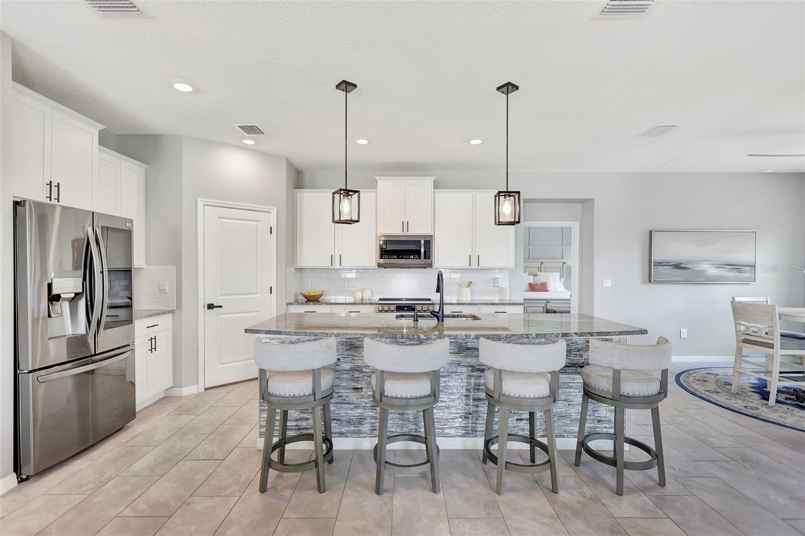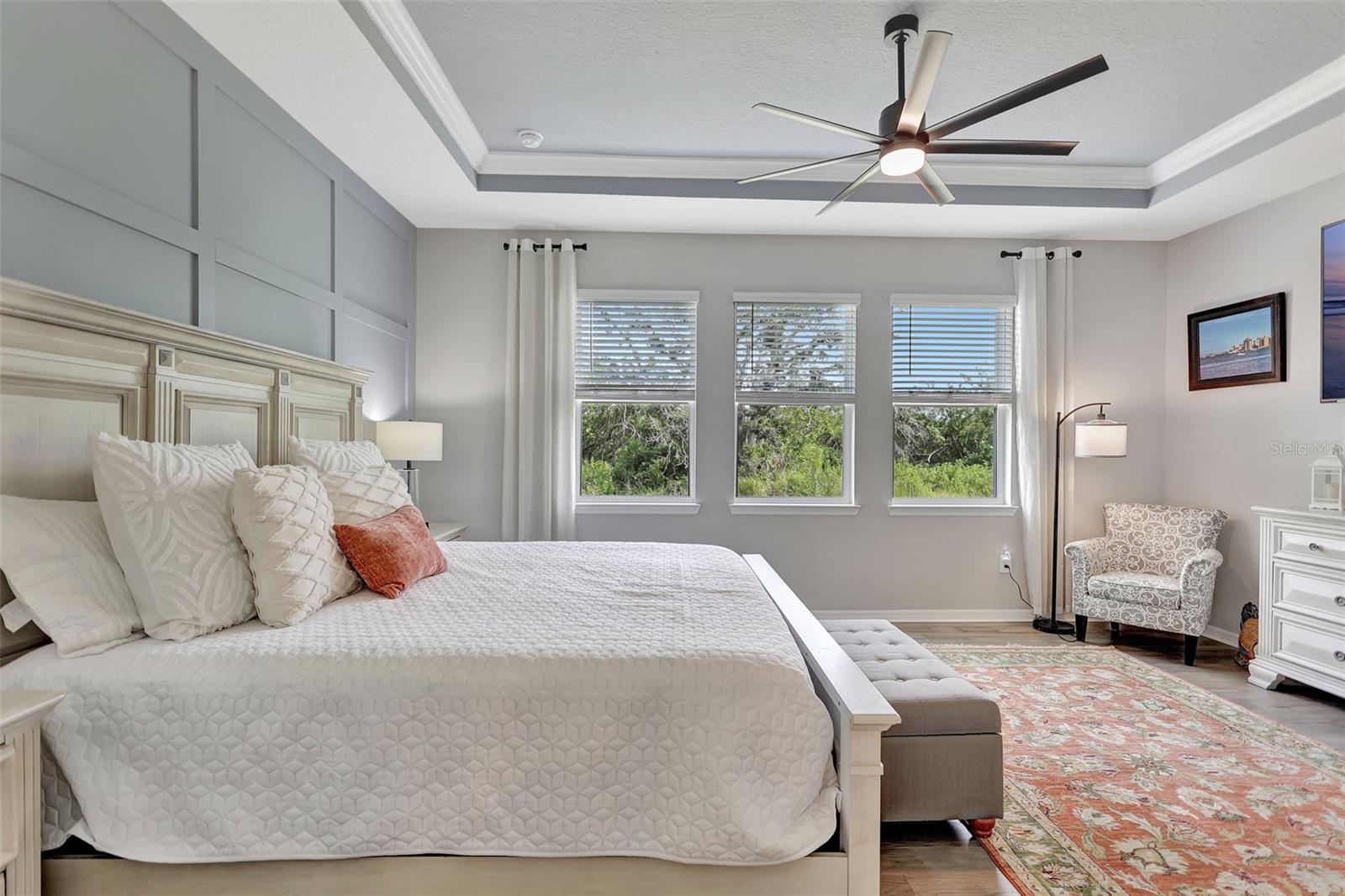 Absolutely breathtaking, from the moment you walk up to the beautiful 8ft ornamental glass luxury door entering the entry hall with fantastic wainscoting walls. The extremely popular Camden model is extremely versatile. You have an area of the home that can be converted into an in-law suite or you can leave as a wonderful media room. There is no carpeting in this home. Bedroom floors are replaced with gorgeous, engineered hardwood. $55,000 in upgrades (Appliances, doors/hardware, flooring (no carpet), wainscoting, ceiling enhancements, lanai upgrade) To the right of the entry hall, you will find two great sized adjoining rooms separated by a bathroom. Continuing into the home you enter an open-floor plan with a designated area for formal dining having millwork treatments, great room with ship lapped wall accent and milled tray, gourmet kitchen with top-of-the-line Stainless Steel appliances, granite counter tops, backsplash, breakfast bar, walk-in pantry with upgraded wood shelving and kitchen nook, all overlooking a beautiful preserve. Master suite is enhanced with an accent wall, ensuite master bathroom with dual vanities, garden tub and separate shower stall with organized walk in California closet. Laundry room is completely updated with extra cabinetry, and top of the line washer and dryer. Flex space room that can be a massive media room, larger additional living room or office with a bedroom suite, walk-in closet and full bathroom. Three car garage. With so many upgrades and beautiful enhancements to mention, all you have to do is come and see the small and big details that make this home one of a kind. Solera is perfectly situated in Lakewood Ranch with Sarasota to the south, St. Pete to the north and Tampa an hour. Resort style community pool. Near major international airports, great shopping, dining, entertainment and our world-famous Gulf Beaches along the coastline. This one you need to come and see. This home can also be purchased turn key.