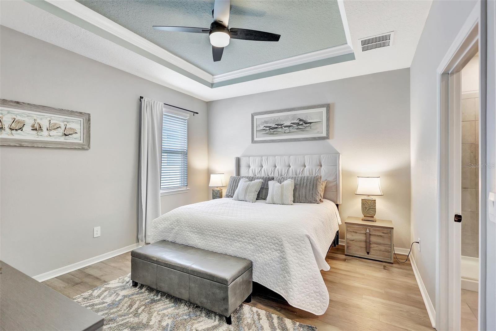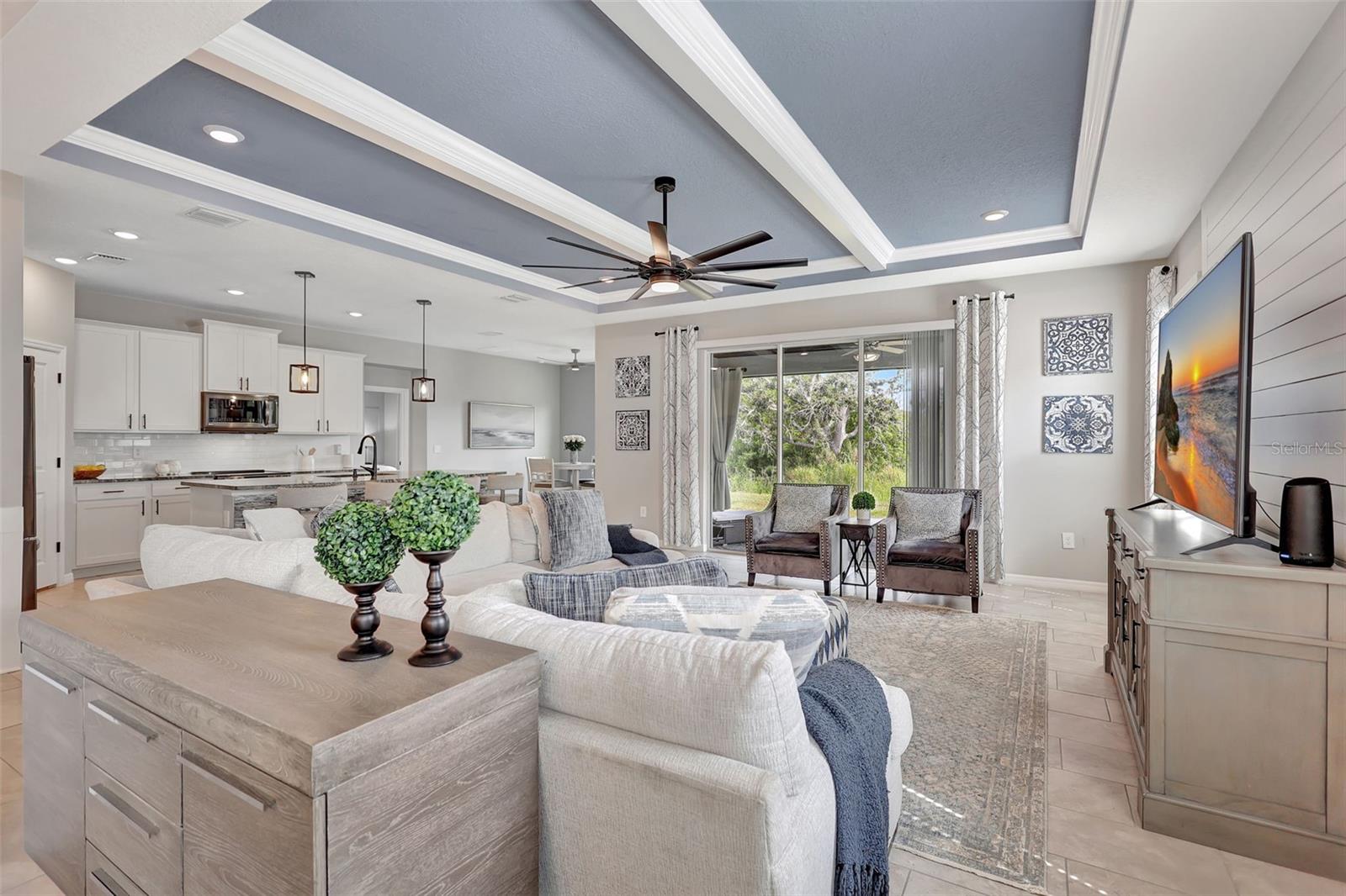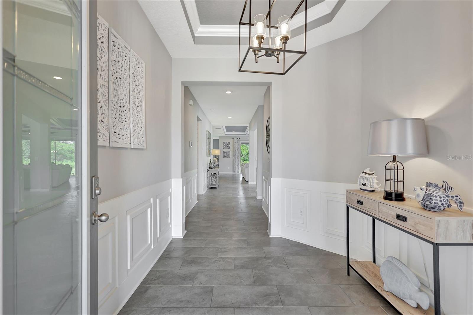Absolutely breathtaking, from the moment you walk up to the beautiful 8ft ornamental glass luxury door entering the entry hall with fantastic wainscoting walls. The extremely popular Camden model is extremely versatile. You have an area of the home that can be converted into an in-law suite or you can leave as a wonderful media room. There is no carpeting in this home. Bedroom floors are replaced with gorgeous, engineered hardwood. $55,000 in upgrades (Appliances, doors/hardware, flooring (no carpet), wainscoting, ceiling enhancements, lanai upgrade) To the right of the entry hall, you will find two great sized adjoining rooms separated by a bathroom. Continuing into the home you enter an open-floor plan with a designated area for formal dining having millwork treatments, great room with ship lapped wall accent and milled tray, gourmet kitchen with top-of-the-line Stainless Steel appliances, granite counter tops, backsplash, breakfast bar, walk-in pantry with upgraded wood shelving and kitchen nook, all overlooking a beautiful preserve. Master suite is enhanced with an accent wall, ensuite master bathroom with dual vanities, garden tub and separate shower stall with organized walk in California closet. Laundry room is completely updated with extra cabinetry, and top of the line washer and dryer. Flex space room that can be a massive media room, larger additional living room or office with a bedroom suite, walk-in closet and full bathroom. Three car garage. With so many upgrades and beautiful enhancements to mention, all you have to do is come and see the small and big details that make this home one of a kind. Solera is perfectly situated in Lakewood Ranch with Sarasota to the south, St. Pete to the north and Tampa an hour. Resort style community pool. Near major international airports, great shopping, dining, entertainment and our world-famous Gulf Beaches along the coastline. This one you need to come and see. This home can also be purchased turn key.