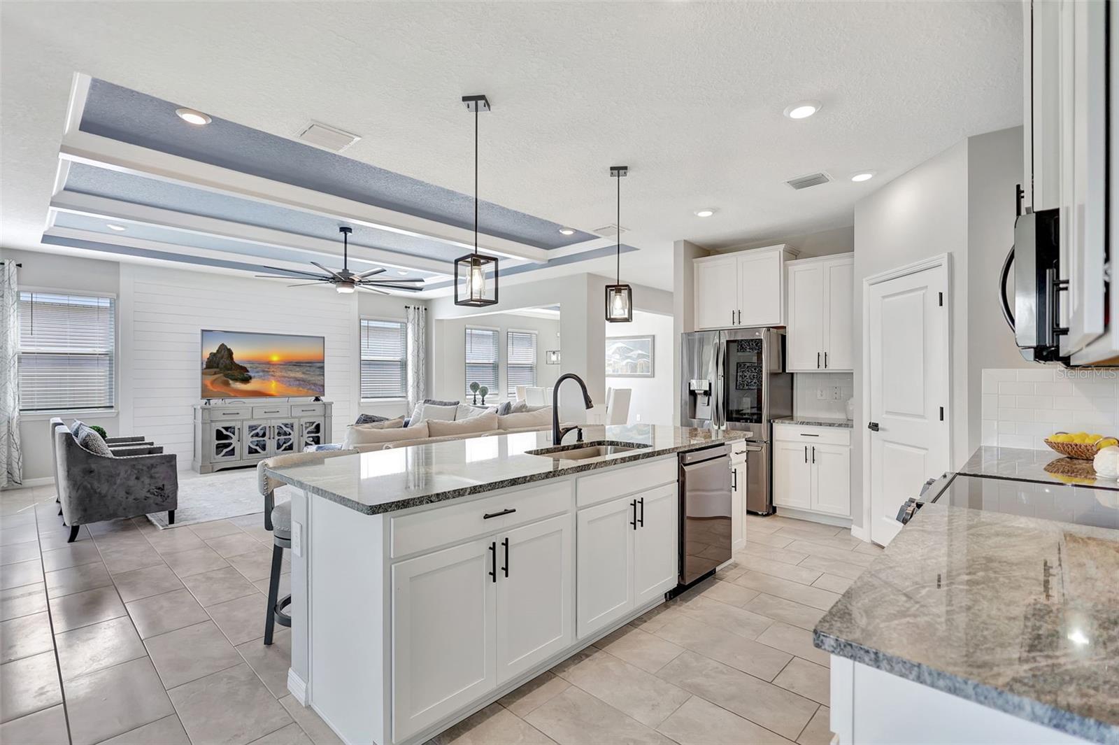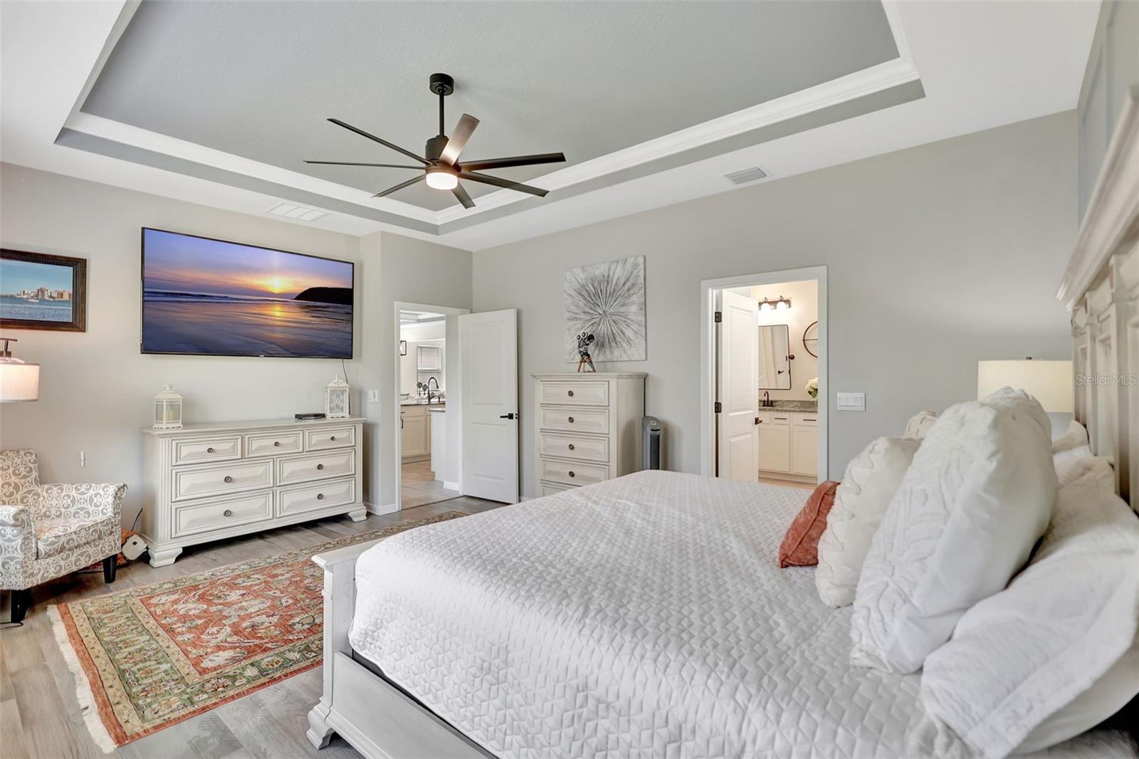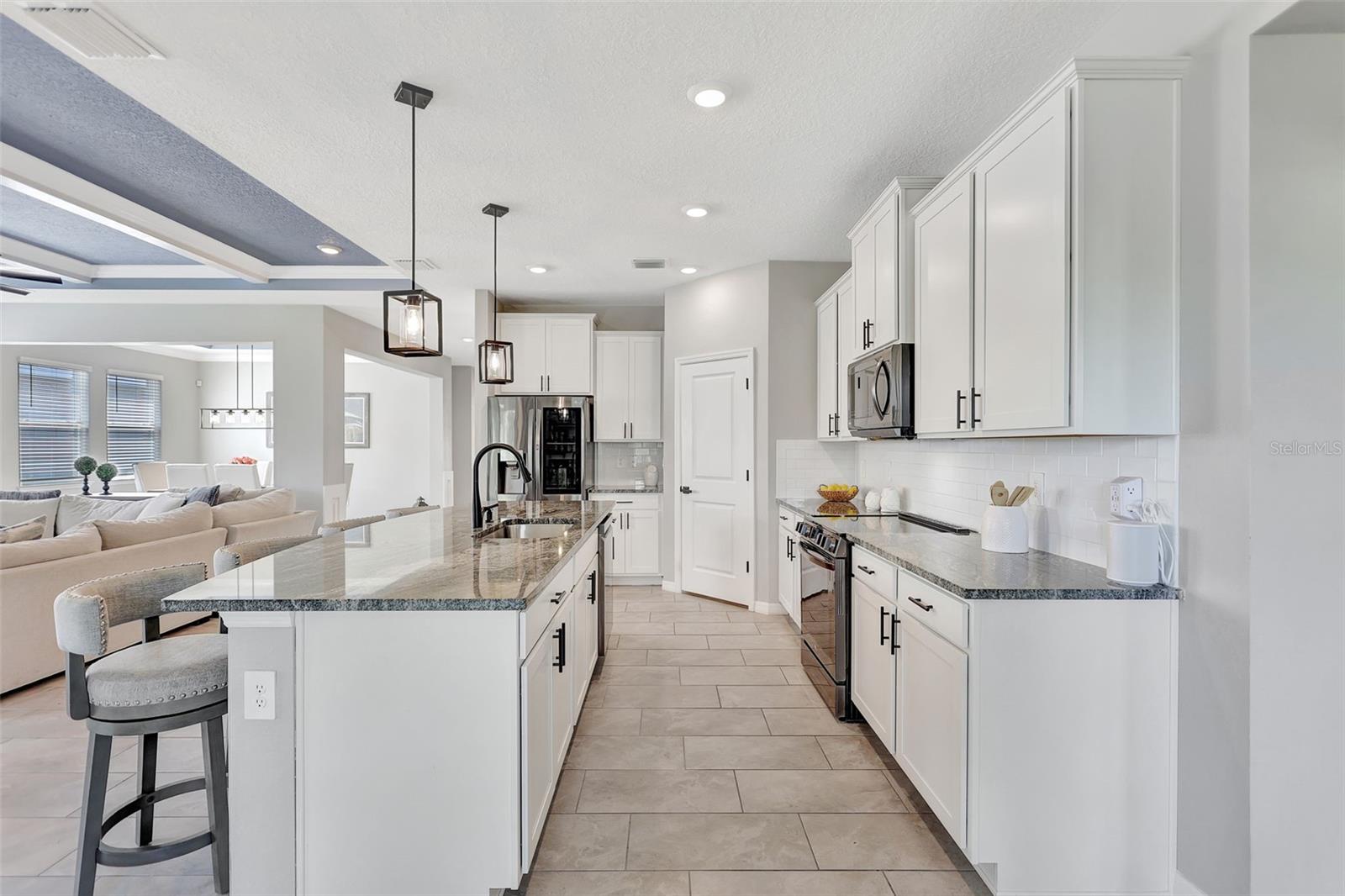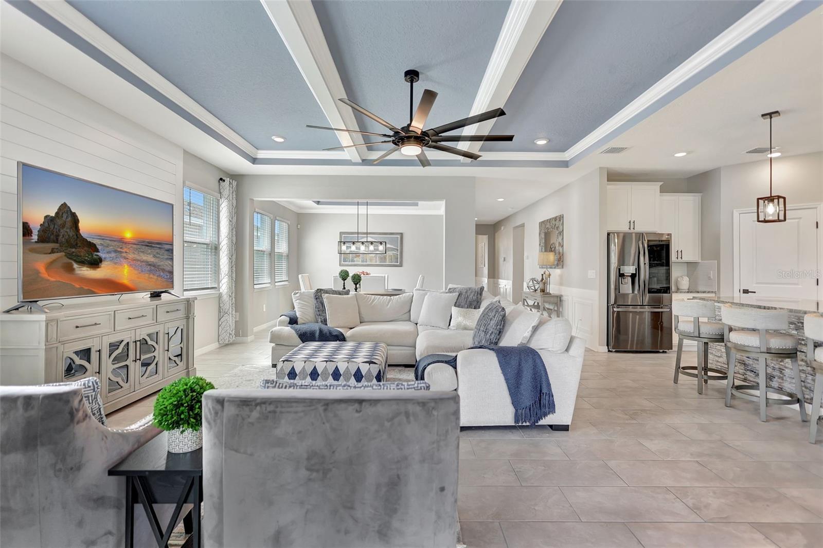 Absolutely breathtaking, from the moment you walk up to the beautiful 8ft ornamental glass luxury door entering the entry hall with fantastic wainscoting walls. The extremely popular Camden model is extremely versatile. You have an area of the home that can be converted into an in-law suite or you can leave as a wonderful media room. There is no carpeting in this home. Bedroom floors are replaced with gorgeous, engineered hardwood. $55,000 in upgrades (Appliances, doors/hardware, flooring (no carpet), wainscoting, ceiling enhancements, lanai upgrade) To the right of the entry hall, you will find two great sized adjoining rooms separated by a bathroom. Continuing into the home you enter an open-floor plan with a designated area for formal dining having millwork treatments, great room with ship lapped wall accent and milled tray, gourmet kitchen with top-of-the-line Stainless Steel appliances, granite counter tops, backsplash, breakfast bar, walk-in pantry with upgraded wood shelving and kitchen nook, all overlooking a beautiful preserve. Master suite is enhanced with an accent wall, ensuite master bathroom with dual vanities, garden tub and separate shower stall with organized walk in California closet. Laundry room is completely updated with extra cabinetry, and top of the line washer and dryer. Flex space room that can be a massive media room, larger additional living room or office with a bedroom suite, walk-in closet and full bathroom. Three car garage. With so many upgrades and beautiful enhancements to mention, all you have to do is come and see the small and big details that make this home one of a kind. Solera is perfectly situated in Lakewood Ranch with Sarasota to the south, St. Pete to the north and Tampa an hour. Resort style community pool. Near major international airports, great shopping, dining, entertainment and our world-famous Gulf Beaches along the coastline. This one you need to come and see. This home can also be purchased turn key.