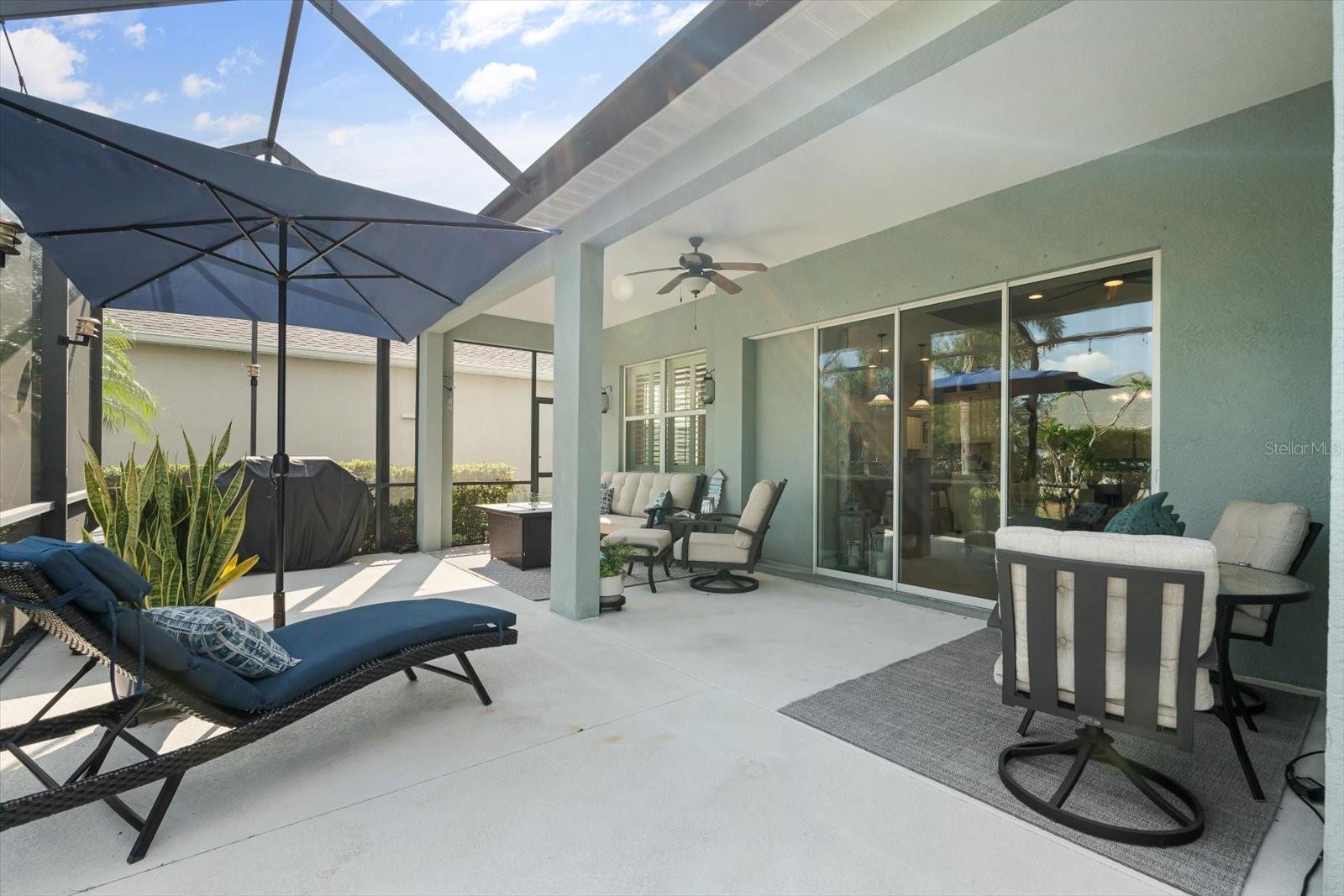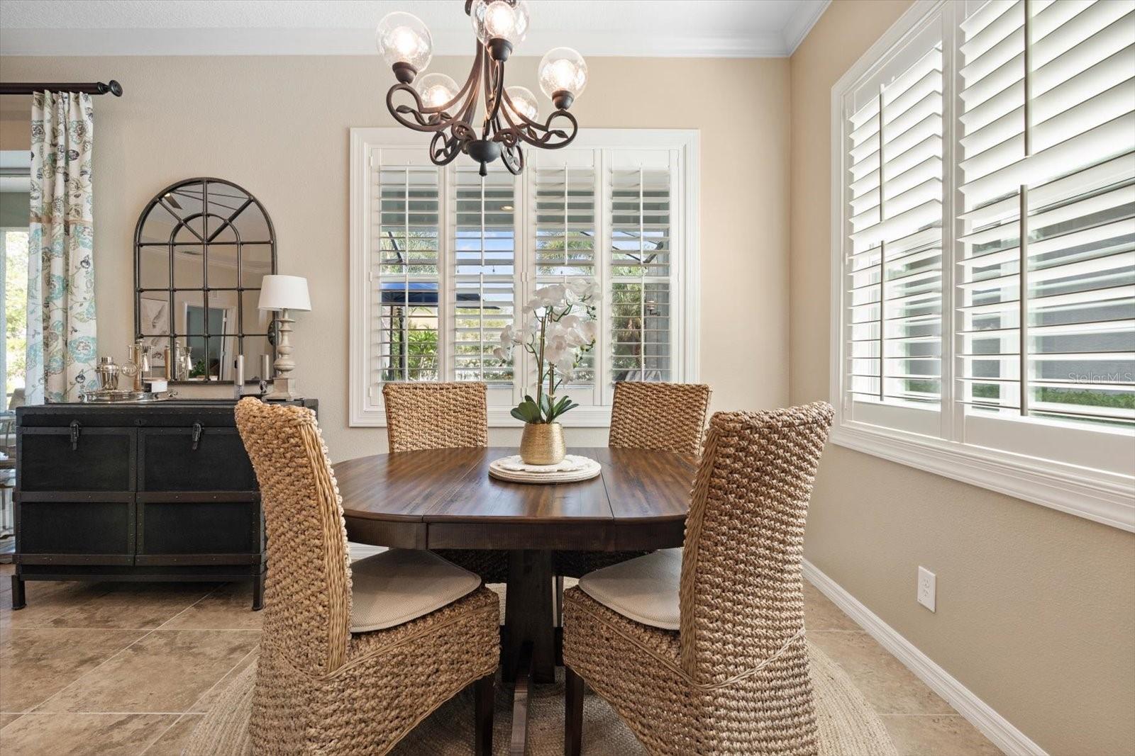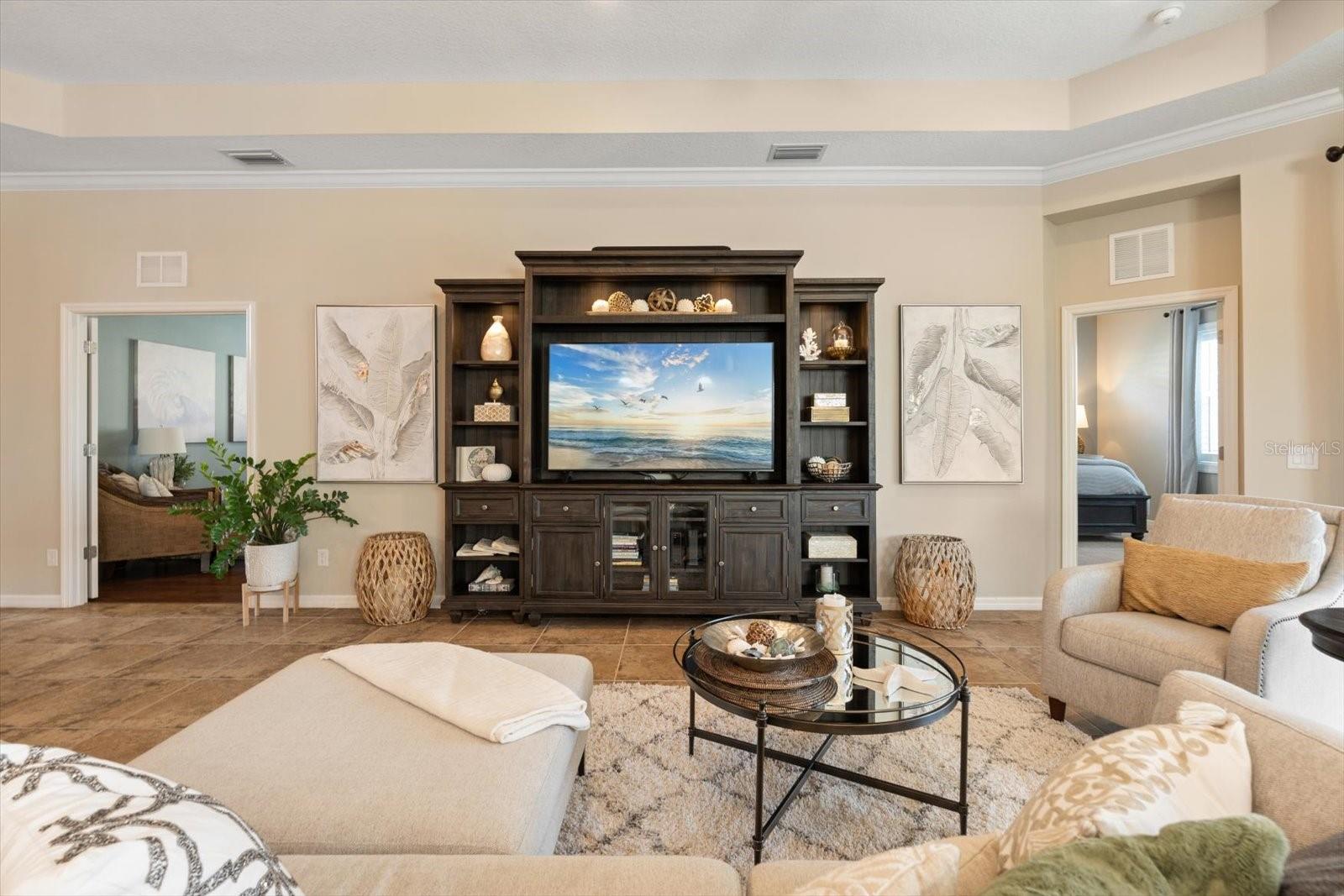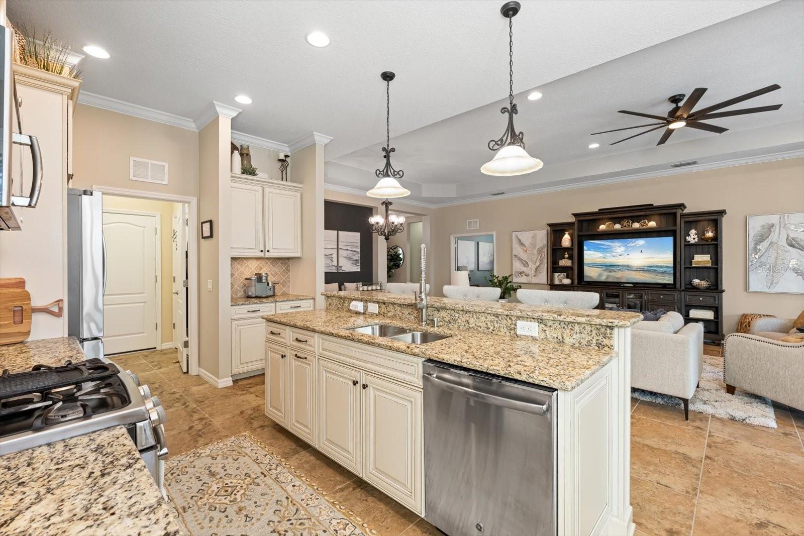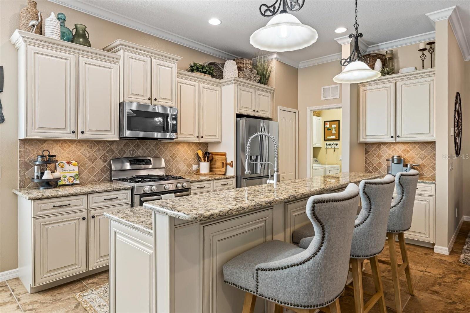 Step into refined comfort with this beautifully designed 2-bedroom, 2-bath residence, where every detail exudes sophistication. The open-concept living, dining, and kitchen area creates an inviting space ideal for both relaxing and entertaining, enhanced by crown molding and a striking coffered ceiling that adds architectural elegance. The kitchen is a chef’s dream, featuring upgraded cabinetry, granite countertops, a convenient coffee bar, and a charming breakfast nook perfect for morning gatherings. A dedicated laundry room just off the kitchen adds everyday convenience. The primary suite offers a serene retreat, complete with a luxurious custom walk-in closet, a spa-inspired en-suite bath with dual vanities, and a spacious walk-in shower with ample space for a dedicated make-up vanity. A versatile den provides the flexibility to serve as a third bedroom, home office, or creative studio, accommodating a variety of lifestyles with ease. Step outside to an extended screened-in lanai—perfect for enjoying quiet mornings, alfresco dining, or entertaining guests in a peaceful, shaded outdoor setting. Nestled in a well-appointed community, residents also enjoy access to exceptional amenities including a sparkling pool and spa, well equipped fitness center, tennis court, pickleball courts, two dog parks, play ground and soccer field. Conveniently located near Lakewood Ranch Medical Center, LECOM, Costco, and an array of shopping and dining options, this home offers not only timeless elegance and modern comfort but also everyday accessibility to the best of the area.