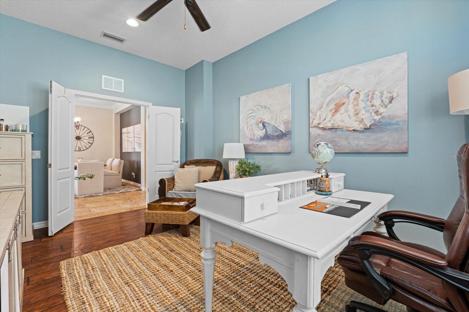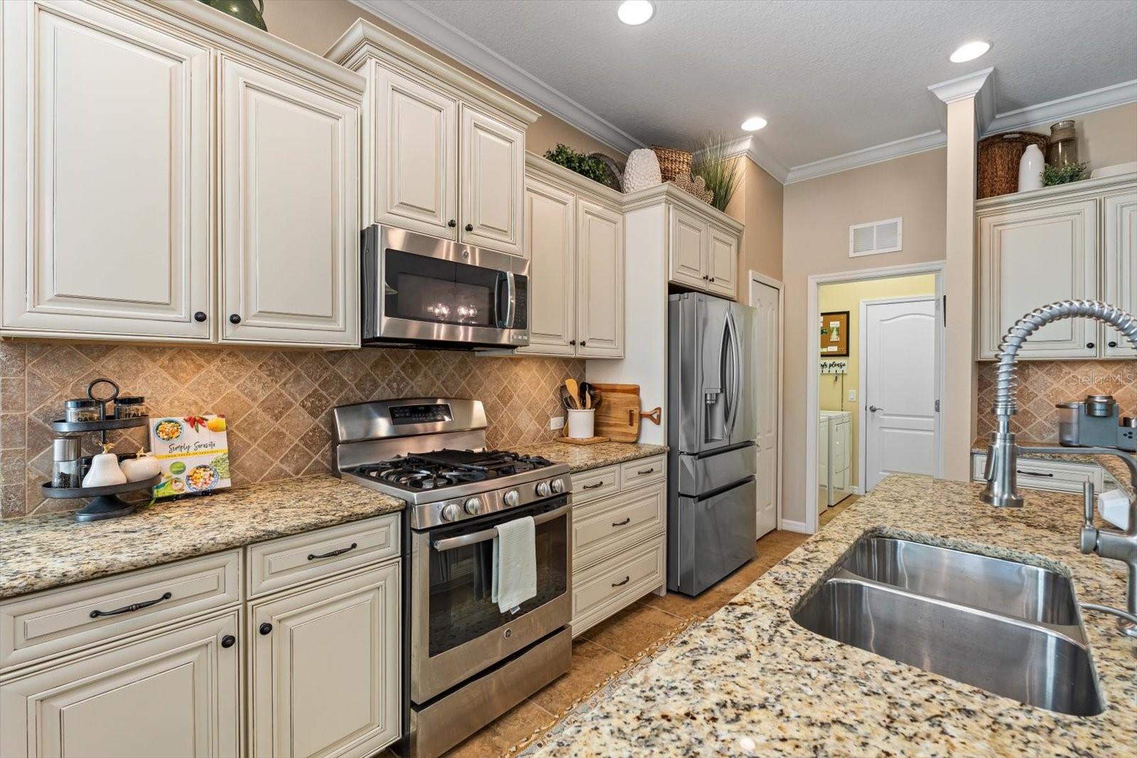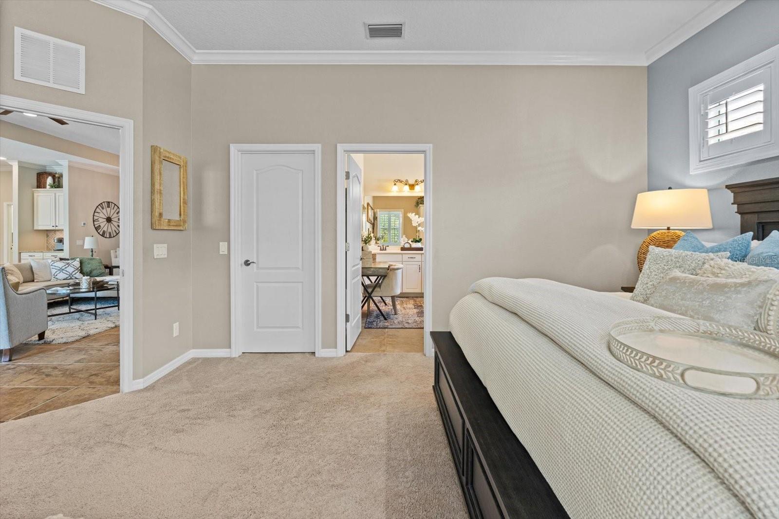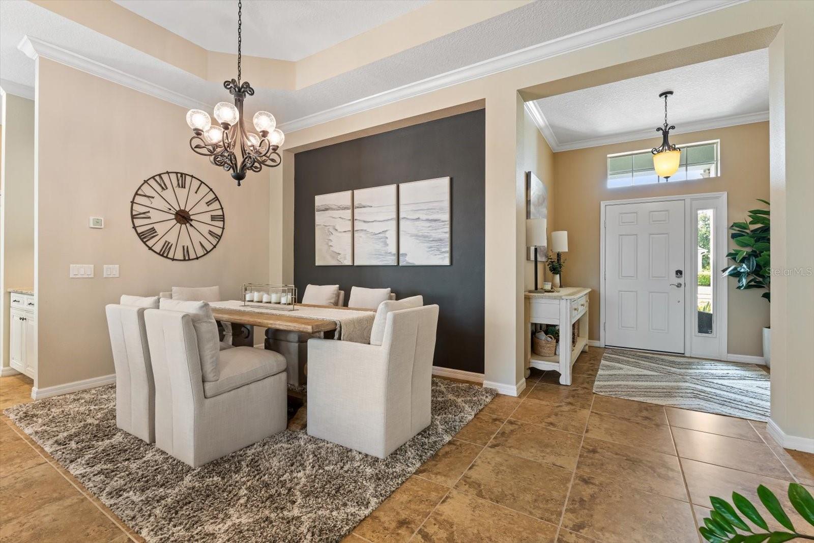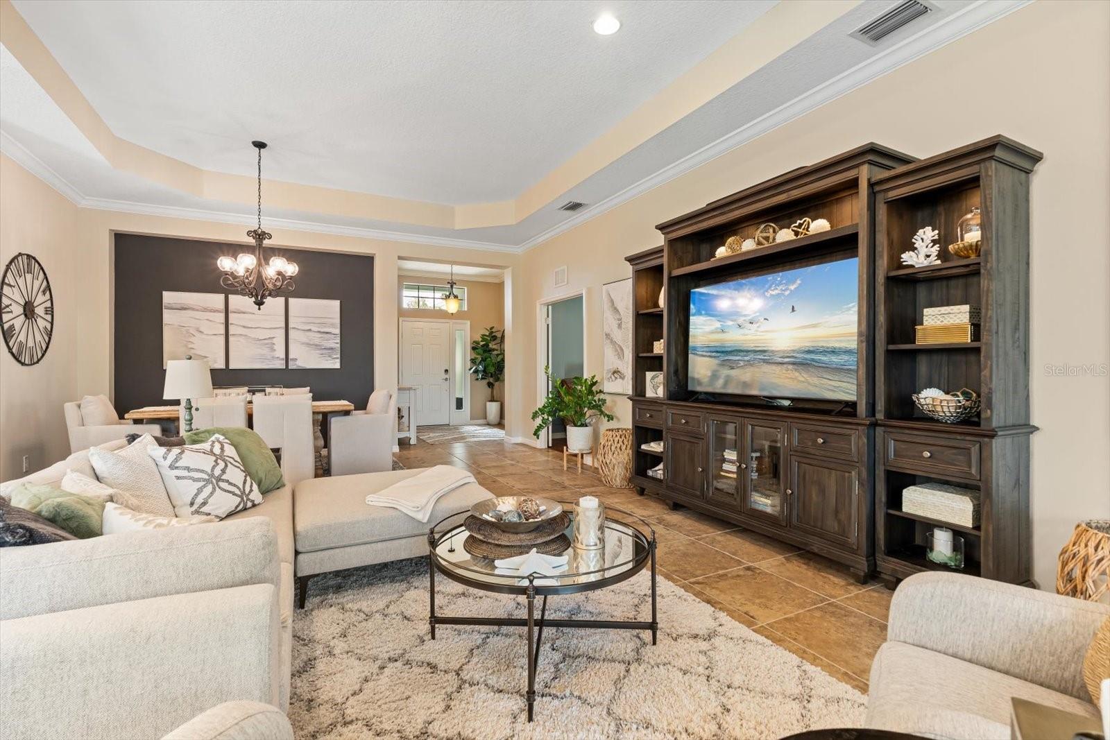 Step into refined comfort with this beautifully designed 2-bedroom, 2-bath residence, where every detail exudes sophistication. The open-concept living, dining, and kitchen area creates an inviting space ideal for both relaxing and entertaining, enhanced by crown molding and a striking coffered ceiling that adds architectural elegance. The kitchen is a chef’s dream, featuring upgraded cabinetry, granite countertops, a convenient coffee bar, and a charming breakfast nook perfect for morning gatherings. A dedicated laundry room just off the kitchen adds everyday convenience. The primary suite offers a serene retreat, complete with a luxurious custom walk-in closet, a spa-inspired en-suite bath with dual vanities, and a spacious walk-in shower with ample space for a dedicated make-up vanity. A versatile den provides the flexibility to serve as a third bedroom, home office, or creative studio, accommodating a variety of lifestyles with ease. Step outside to an extended screened-in lanai—perfect for enjoying quiet mornings, alfresco dining, or entertaining guests in a peaceful, shaded outdoor setting. Nestled in a well-appointed community, residents also enjoy access to exceptional amenities including a sparkling pool and spa, well equipped fitness center, tennis court, pickleball courts, two dog parks, play ground and soccer field. Conveniently located near Lakewood Ranch Medical Center, LECOM, Costco, and an array of shopping and dining options, this home offers not only timeless elegance and modern comfort but also everyday accessibility to the best of the area.