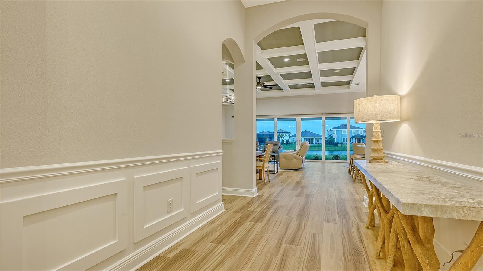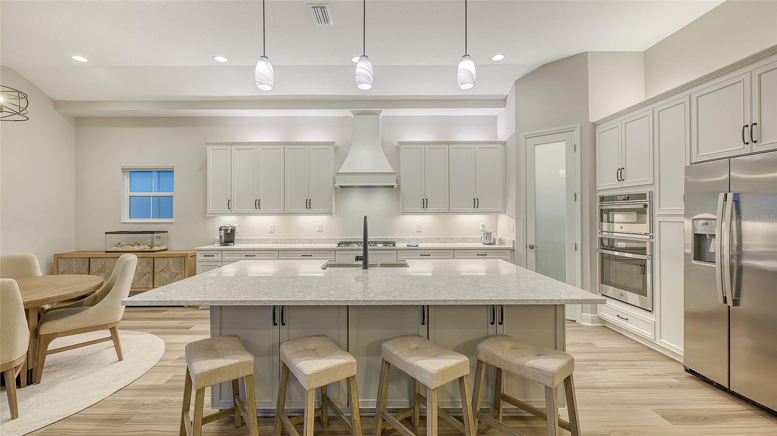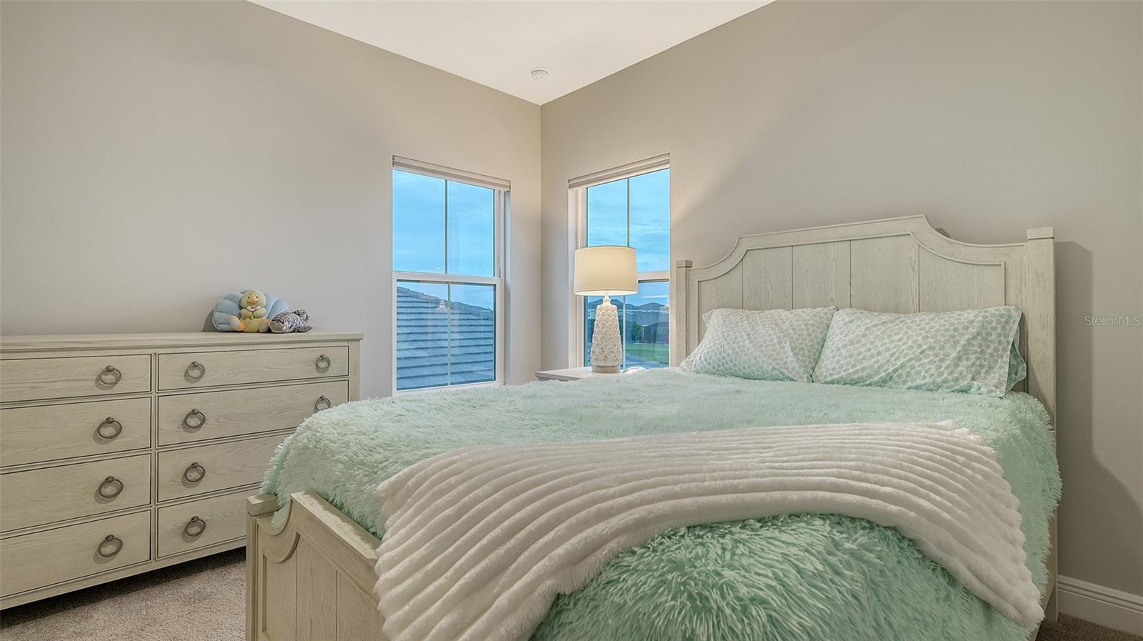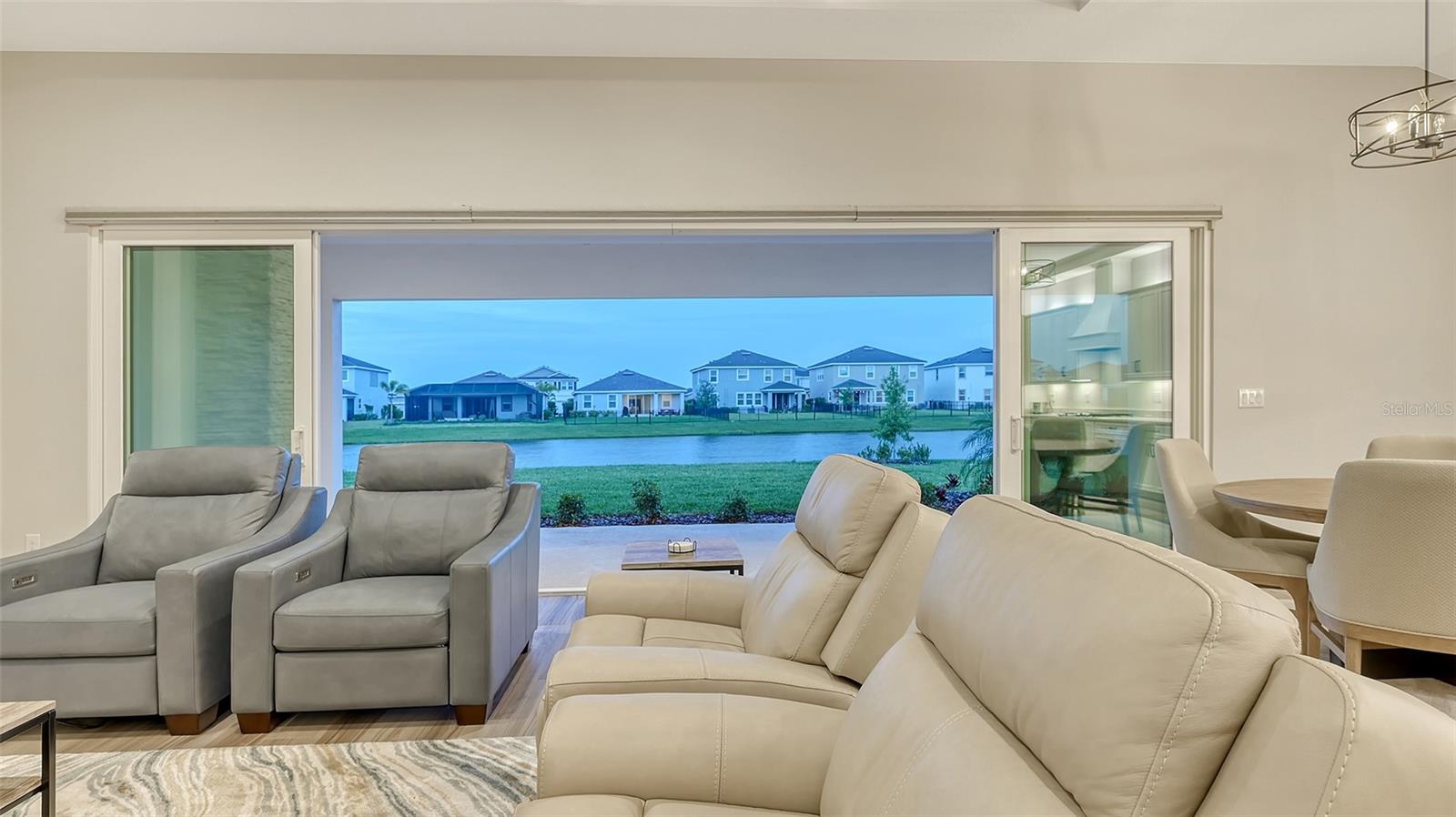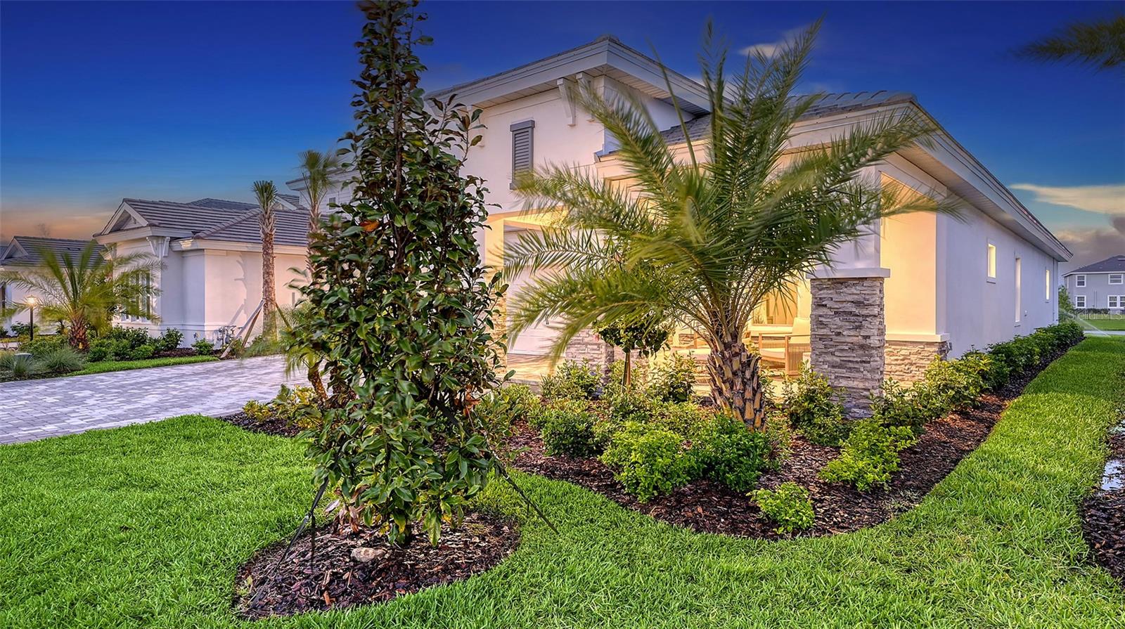 Welcome to 17811 Roost Place in Star Farms at Lakewood Ranch. This 5-bedroom, 4-bathroom, 3,134 sq ft WestBay Biscayne II model is located in a gated section of a resort-style community and offers premium upgrades, smart home features, and a peaceful water-view setting. The home includes quartz countertops in the kitchen and all bathrooms, soft-close cabinetry, upgraded lighting fixtures, a custom range hood, under and over cabinet lighting, tray ceilings, wainscoting, ceiling fans throughout, and a rainfall shower in the primary bathroom. The massive 3-car garage features epoxy flooring, and the living area includes an electric fireplace with a stone surround. Two wall-mounted TVs are included with the home. Built by Homes by WestBay, the property is equipped with impact glass windows, powered window treatments, and smart home automation. Situated on a quiet street with tropical landscaping and water views, the home is also ready for a pool—permits have already been secured and a $6,000 transferable deposit is included for future installation. Star Farms is a 700-acre master-planned community offering a wide range of resort-style amenities. These include a staffed clubhouse, resort-style pool and spa, fitness center, golf simulator, basketball and beach volleyball courts, dog parks, and miles of recreational trails. The newly opened Palm Bar provides on-site food and beverage service for residents and guests. Located within the Lakewood Ranch master-planned development, the home offers access to schools, medical facilities, shopping centers, dining options, and area beaches. Schedule your private tour of 17811 Roost Place today to experience luxury living with the convenience and amenities of a resort-style community.