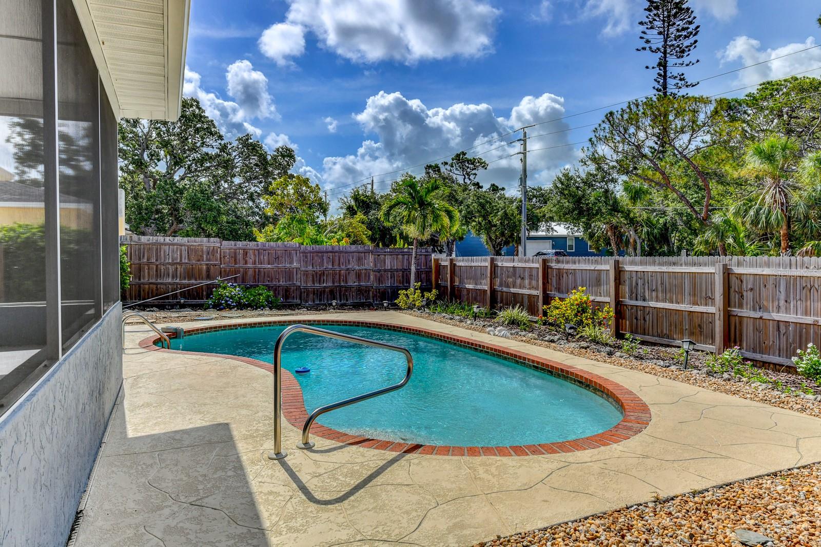 Welcome to your private oasis! This beautifully maintained 3-bedroom, 2-bathroom home boasts a split bedroom layout with modern finishes throughout. Enjoy family game night in the large family/dining room combo or the great entertaining space in the living room off the kitchen which offers plenty of natural light. The split bedroom layout is perfect for those who appreciate their privacy. The large primary bedroom with en suite bath lets you keep your retreat from others who may be occupying the good sized secondary bedrooms. From the oversized screened lanai, step outside into a resort-style backyard featuring a sparkling in-ground pool, spacious patio, and lush landscaping—perfect for entertaining or relaxing in your own slice of paradise. Inside, enjoy a cozy and efficient kitchen which maximizes every inch of space featuring ample cabinetry and sleek countertops giving the perfect balance of functionality and design. Located in a quiet, luscious neighborhood in northwest Bradenton close to schools, shopping, Robinson Preserve, DeSoto National Park, and many other amenities. And don't forget; the Gulf and beaches are approximately 4 miles west.