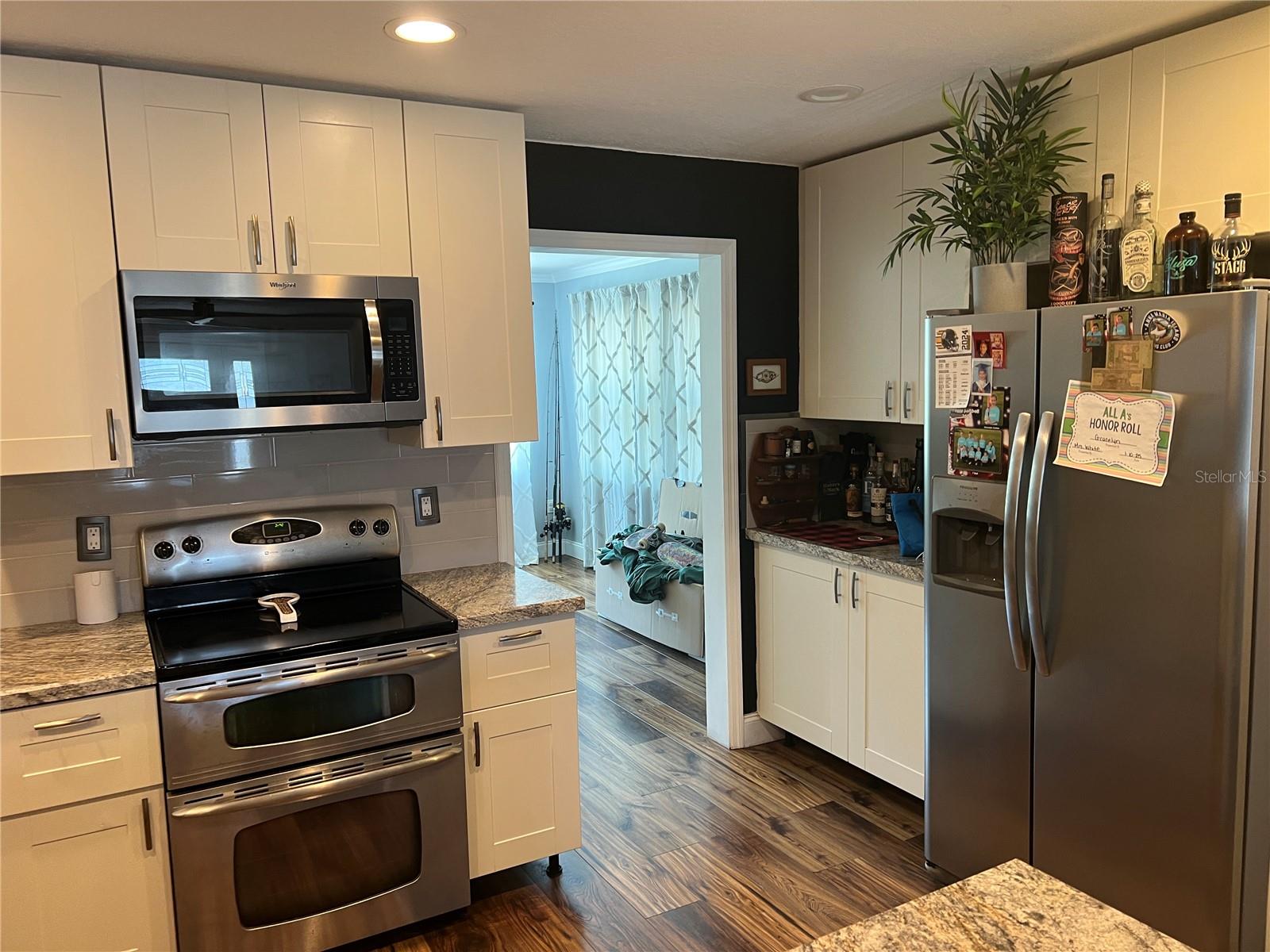 Short Sale. Welcome to this warm and inviting Craftsman-style home featuring a comfortable split floor plan and a blend of classic charm with modern touches. Inside, you’ll find USB charging ports in every bedroom, LED dimmable lighting, and ceiling fans throughout—designed with everyday living in mind. The kitchen offers a breakfast bar, stylish soft-close cabinetry, and a generous pantry, making it a perfect space for both cooking and gathering. The primary suite is a peaceful retreat, complete with a cathedral ceiling and three closets with built-ins for smart storage. The ensuite bathroom features a granite double vanity, a large walk-in shower, and a dual-flush toilet for added efficiency. Durable, water-resistant laminate flooring flows throughout the home, offering both beauty and functionality. The dining room is filled with natural light and features charming barn doors that add character and flexibility to the space. Out back, a 240 sq. ft. detached cottage includes its own 11' x 8' deck, kitchenette, and bathroom—making it a fantastic option for a private guest suite, rental income opportunity, or separate home office. This home is full of thoughtful details and ready for its next chapter!