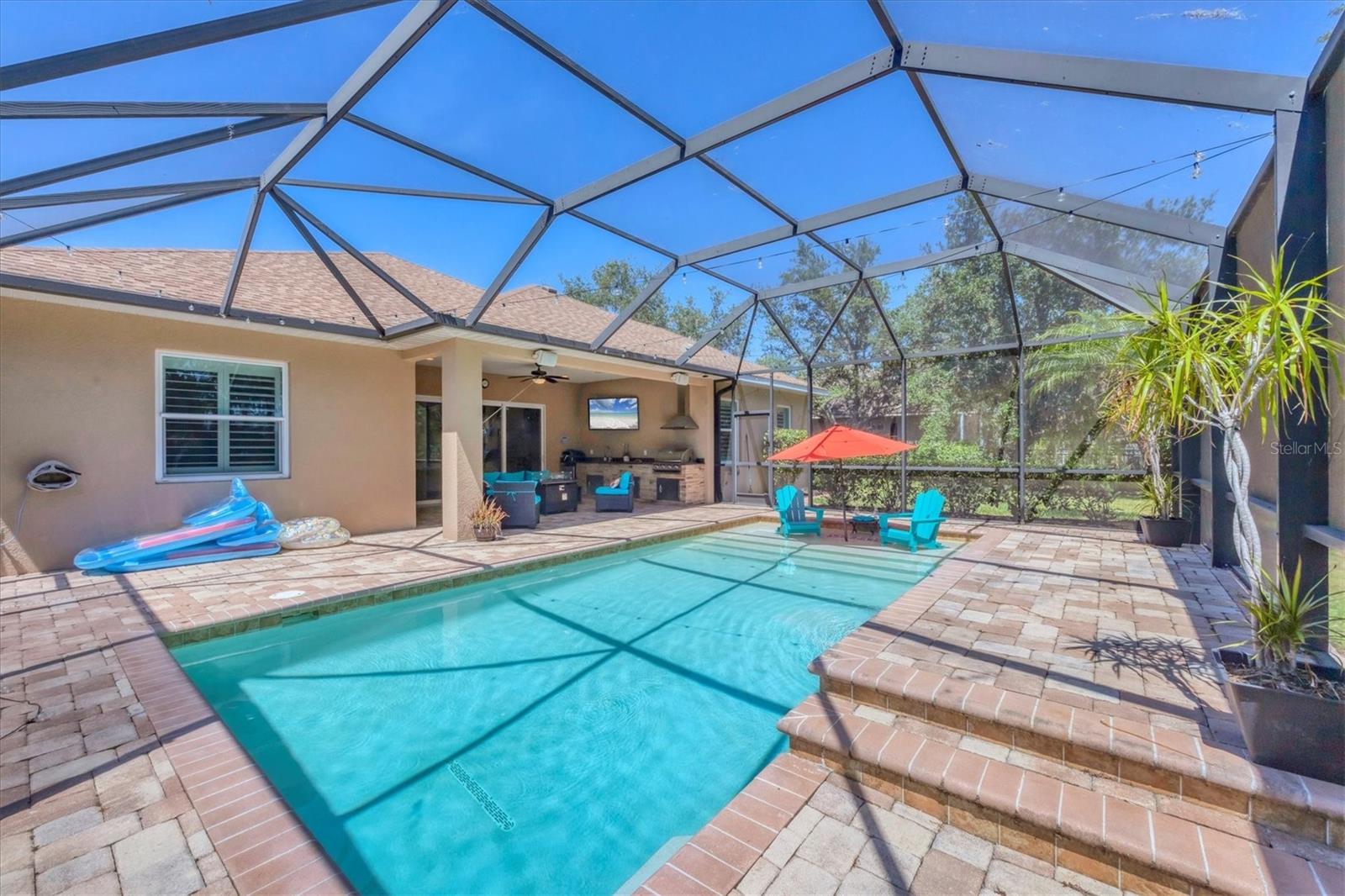 Welcome to Mill Creek. This custom-designed residence, originally built as the builder’s personal home by Johnson Homes, offers the ultimate in luxury living and thoughtful craftsmanship. In the newer section of Mill Creek on over a half-acre preserve lot, this four-bedroom, three-and-a-half-bath home delivers refined comfort and enduring quality. Enter through double glass doors into a spacious interior featuring an oversized gourmet kitchen with European wood cabinetry, granite countertops, stainless steel appliances, dual sinks, dual disposals, crown molding and pendant lighting over a breakfast bar. A separate dining room includes built-in cabinetry, a wine rack and a wine cooler, ideal for entertaining. The expansive living area showcases built-in shelving and a Control4 video distribution system with full surround sound, including subwoofers in the ceiling and speakers extended to the pool area. The primary suite features a custom-designed walk-in closet and a luxurious bath with a double walk-in shower and separate soaking tub. Designed for entertaining and everyday enjoyment, the outdoor living area includes a covered summer kitchen, a heated sparkling pool and a paver deck. Additional features include impact-insulated windows and doors, spray foam/Icynene insulation, two air-conditioning units, a sand-finish stucco ceiling, and a flaked hologram epoxy-coated oversized three-car garage with exterior holiday light outlets and interior switches. This home also offers an upgraded peel-and-stick roof underlayment for enhanced protection. Mill Creek is known for its low HOA fees, no CDD fees, A-rated schools and convenient access to Lakewood Ranch, Interstate 75, premier dining and shopping at University Town Center.